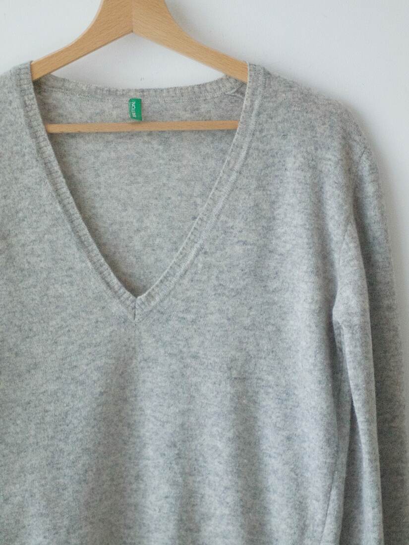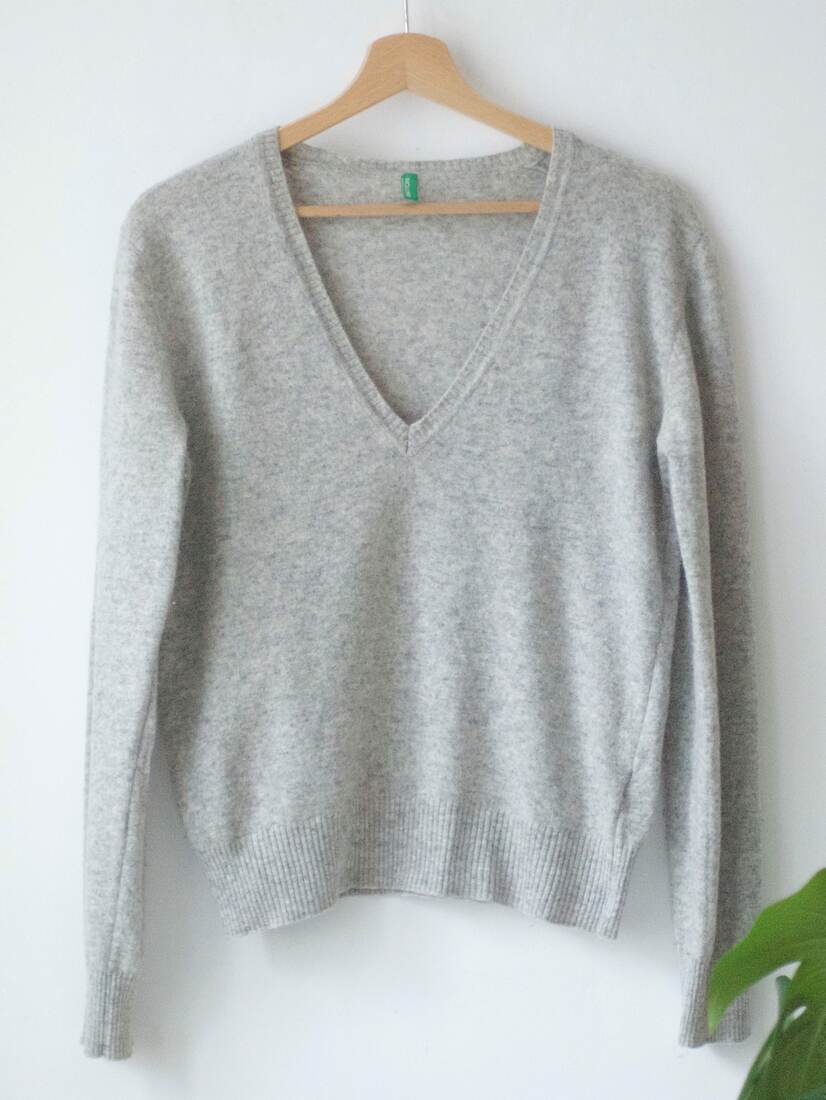 Szary nakrapiany sweter marki Benetton. Rozmiar z metki M, bardzo dobry stan.