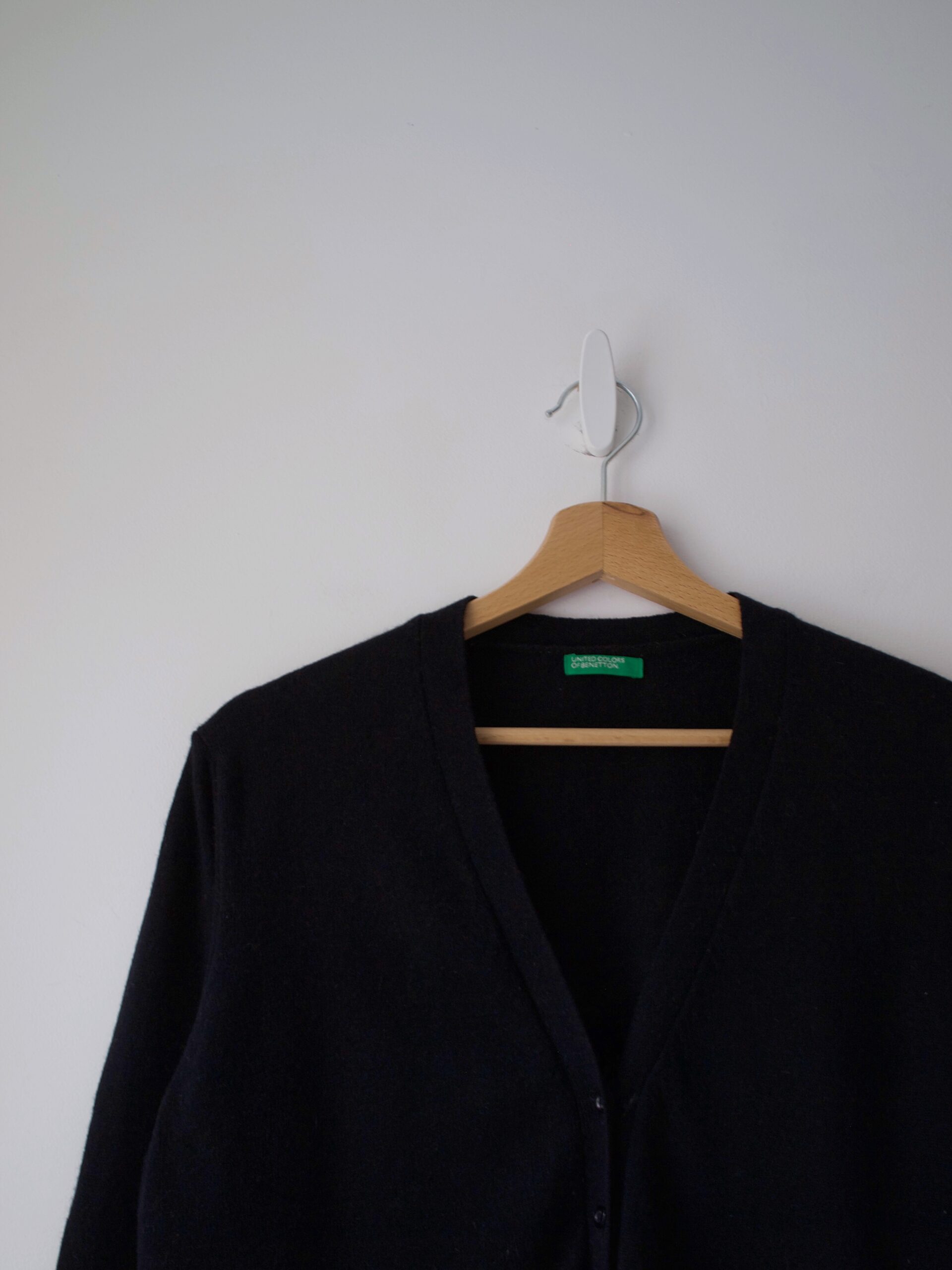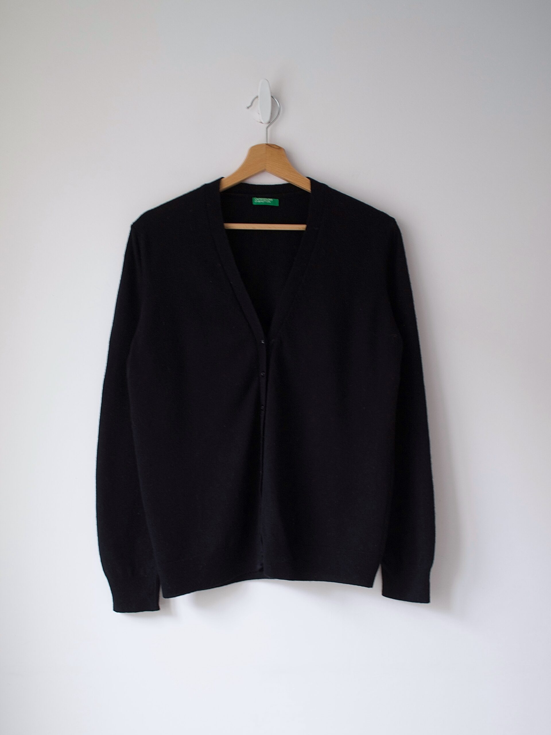Kardigan w stylu basic, włoska marka Benetton. Rozmiar z metki: L Skład: 78% wełna, 22% angora Stan: bez wad Szerokość w klatce 53 cm Długośćcałkowita 60 cm