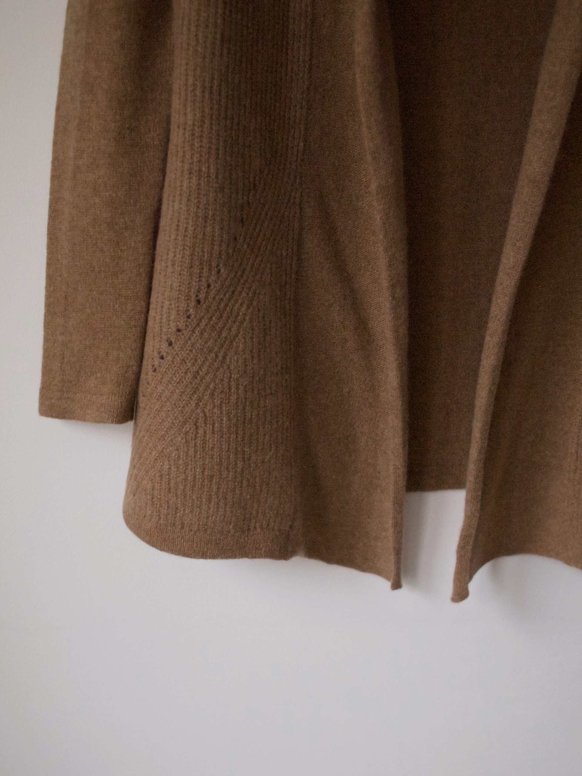 Minimalistyczny kardigan o luźnym kroju. Kardigan nie ma żadnych metek, przypuszczam, że był szyty ręcznie, lub na zamówienie. Materiał przyjemny w dotyku, nie gryzie. Wymiary poniżej.