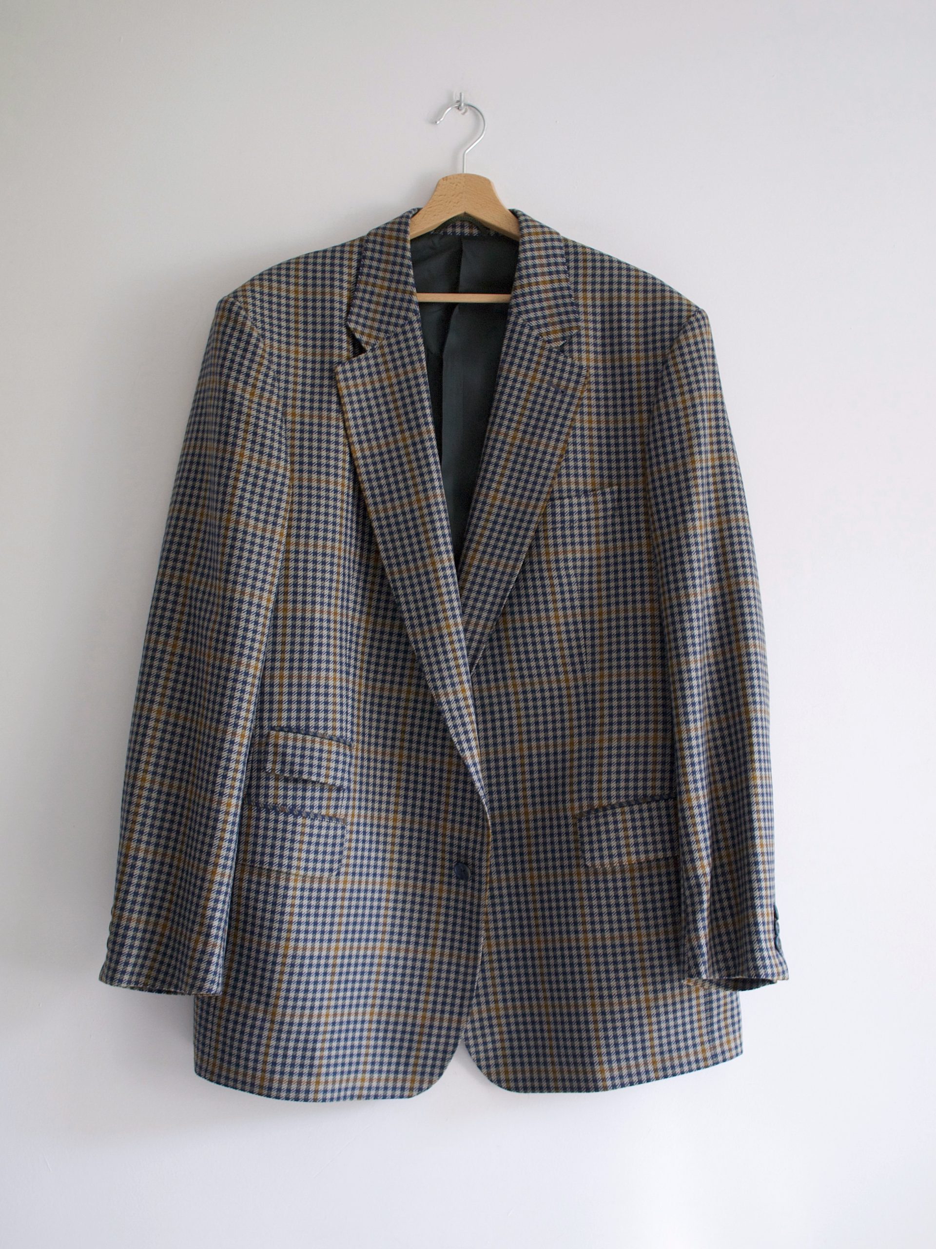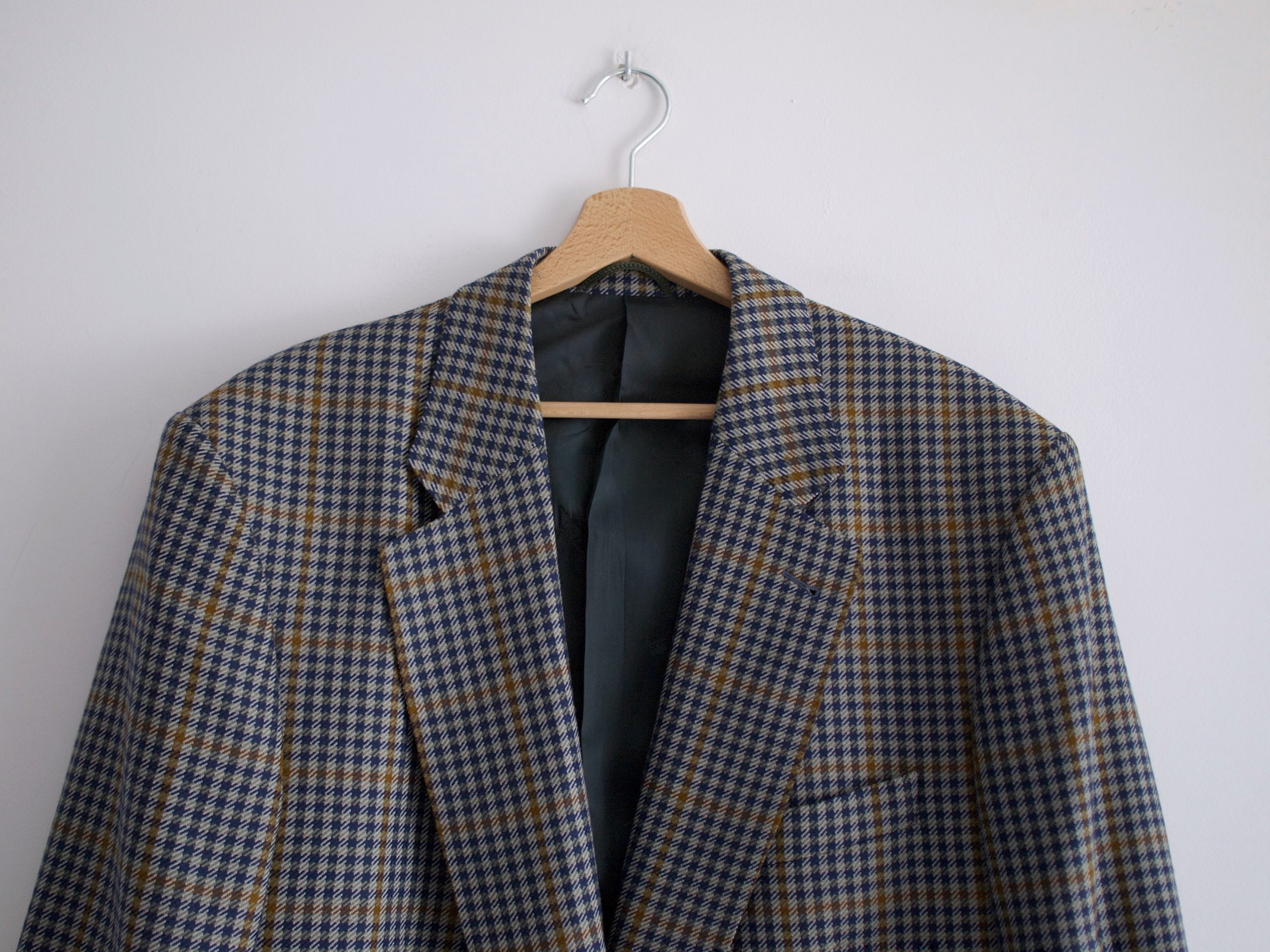 Wełniana marynarka domu mody Barberry, vintage z lat 90. Prosty fason, podszewka z logo marki. Model męski, polecam na XL, lub jako mocny oversize.
