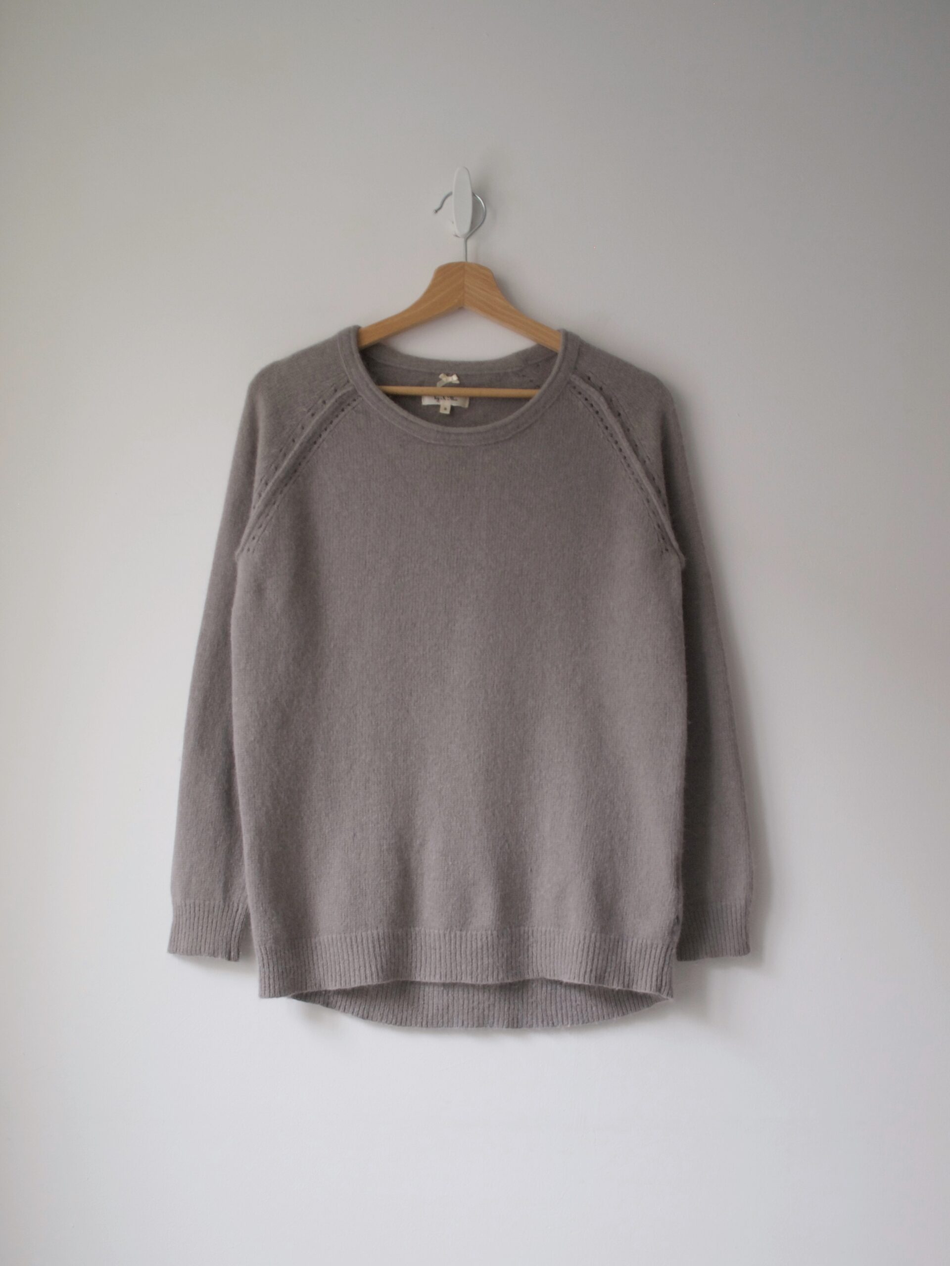 Sweter vintage ze zdobieniem. Brak metki z dokładnym składem, ale jest to angora, może nawet w 100 %. Sweter bardzo miękki i nie gryzie. Ma obszerniejsze ramiona, zdjęcie na xs-ce.