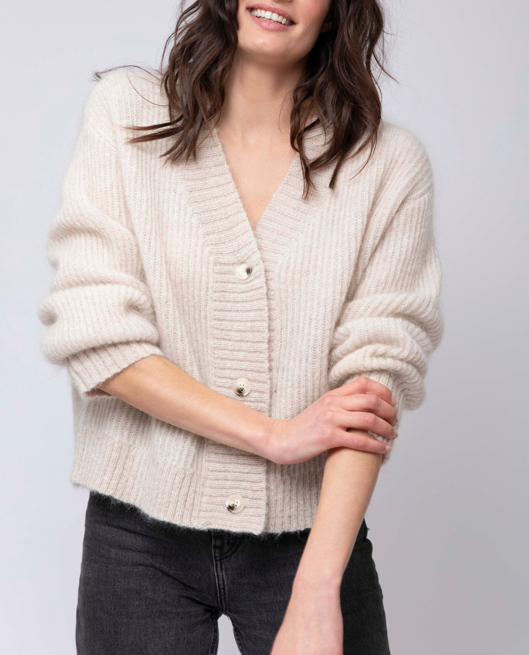 Kardigan ekskluzywnej norweskiej marki Camilla Pihl. Model Rikki, cena katalogowa 2199 kr, czyli ponad 800 zł. Wykonany z puszystej włóczki z dużym dodatkiem wełny z alpaki.