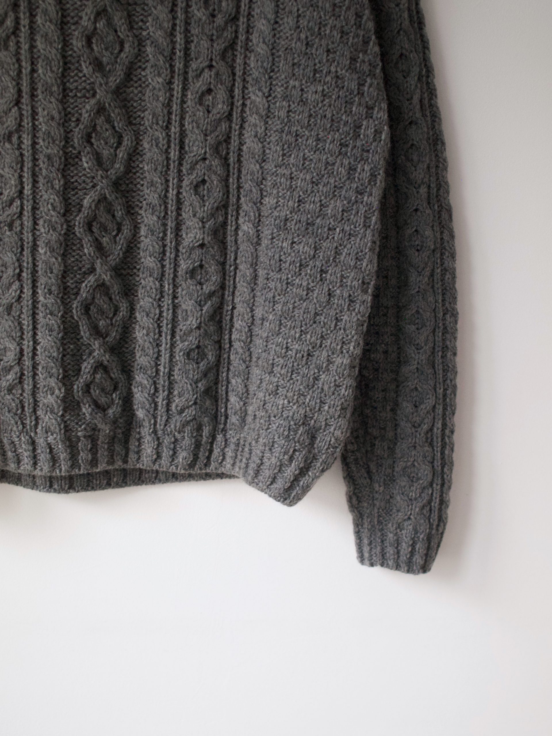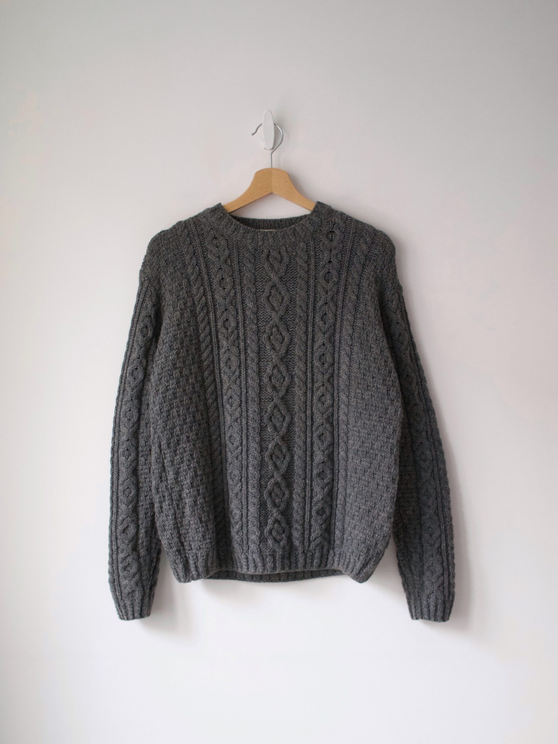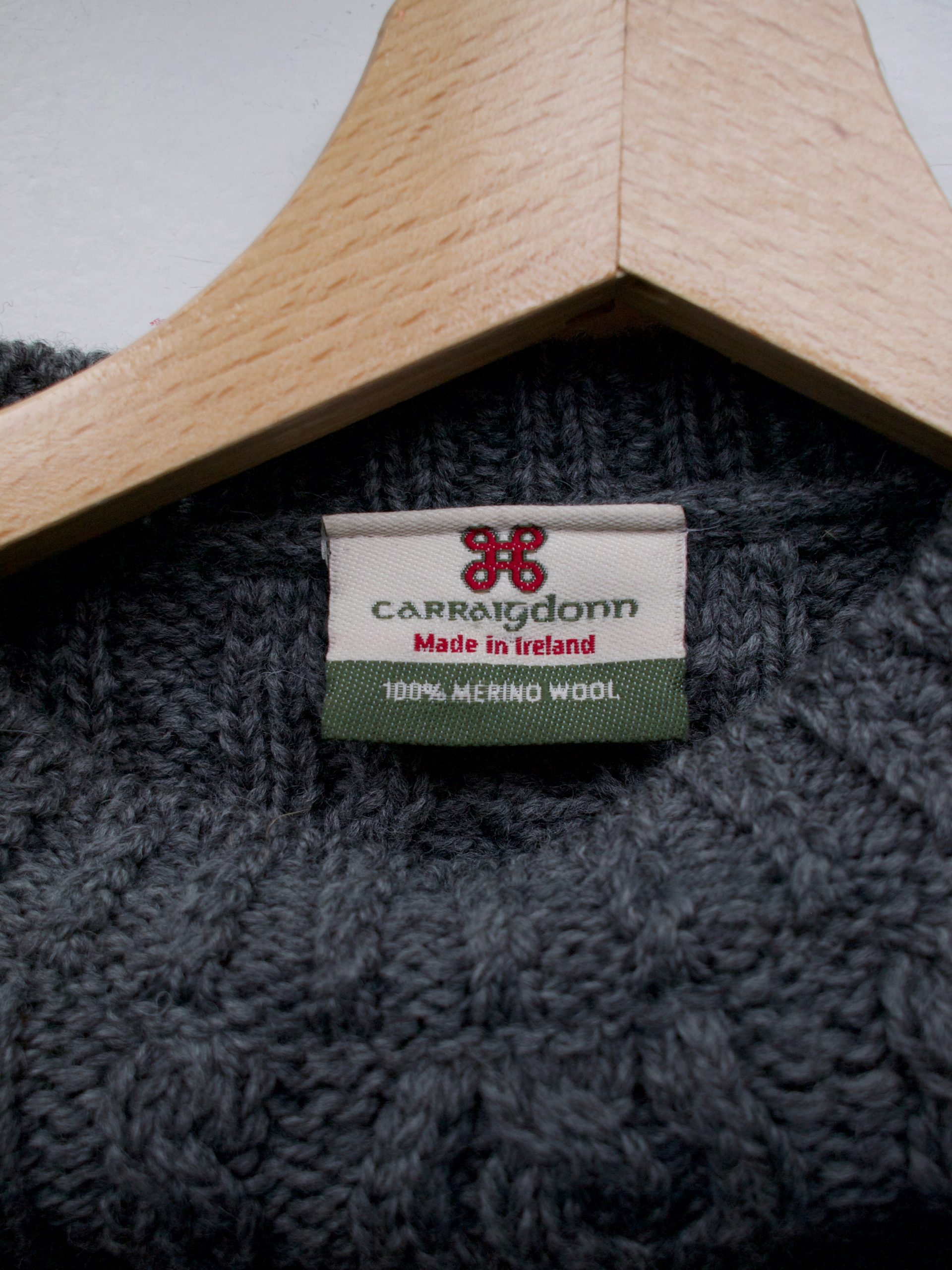 Gruby sweter w stylu arańskim, wykonany w 100% z miękkiej wełny merynosów. Wyprodukowany w Irlandii przez markę Carraig Donn, specjalizującej się w tradycyjnych, wysokiej jakości dzianinach, zwłaszcza swetrach w stylu arańskim. Firma ma długą historię produkcji odzieży z naturalnej wełny, w tym z wełny merynosów, znanej ze swojej miękkości i trwałości. Carraig Donn czerpie inspirację z irlandzkiego dziedzictwa rzemieślniczego, a jej produkty są cenione za autentyczność, precyzję wykonania i ponadczasowy styl.