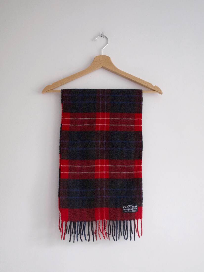 Kaszmirowy szalik vintage. Ma 2 małe cerowania, absolutnie nie widocznych w noszeniu. Poza tym bardzo dobry stan, miękki i milutki w dotyku.