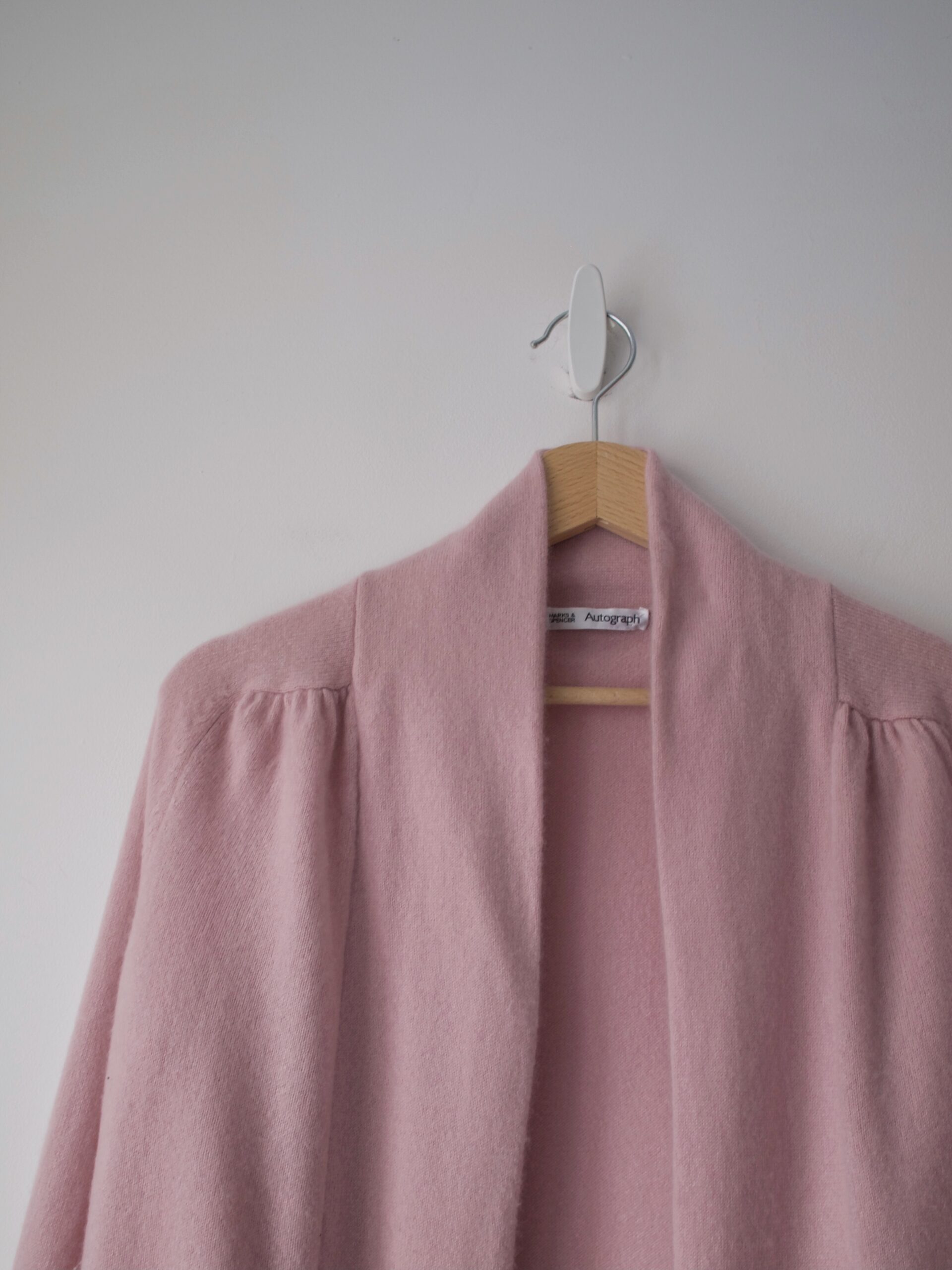 Przepiękny wełniany sweter brytyjskiej marki WoolOvers. Rewelacyjny skład 70% merino wool, 30% kaszmir, jest miękki i milutki w dotyku. Rękawy i dół wykończone dłuższym ściągaczem. Rozmiar z metki S, idealny stan.