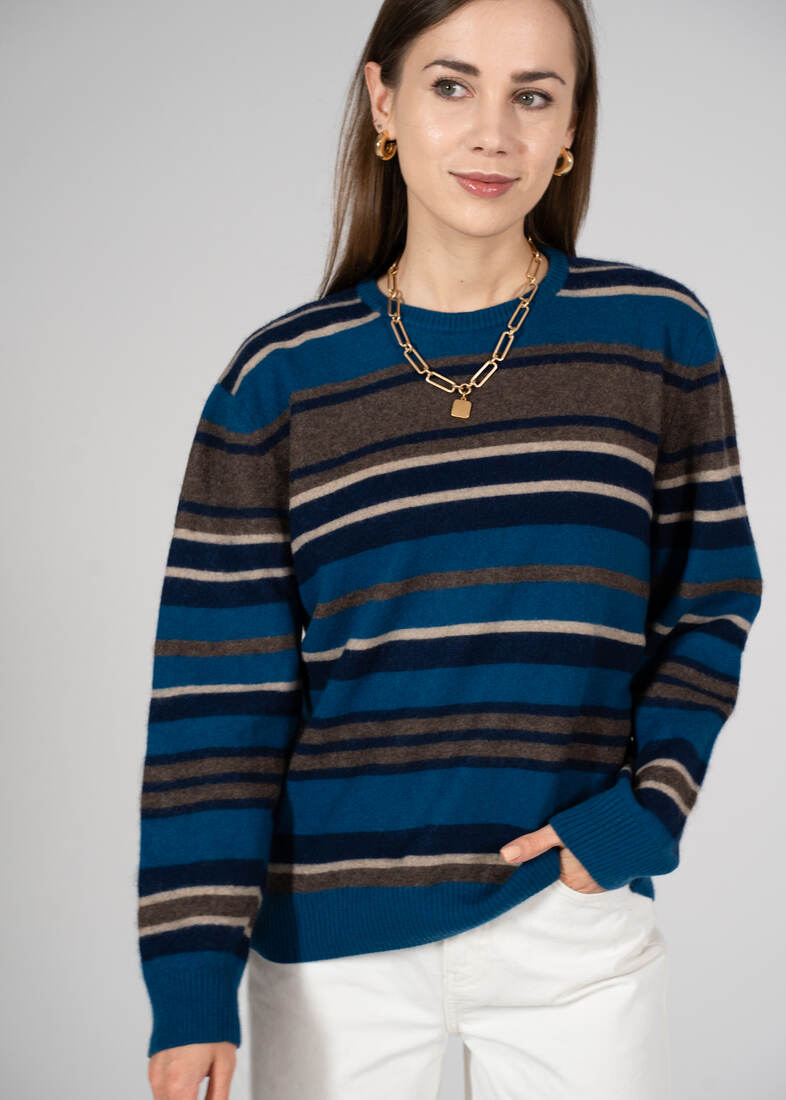 Minimalistyczny kaszmirowy sweter o pudełkowym kroju. Sweter bardzo miękki i przyjemny, ma dwie małe zacerowane dziurki, nie widoczne w noszeniu, poza tym brak mankamentów. Wymiary poniżej.