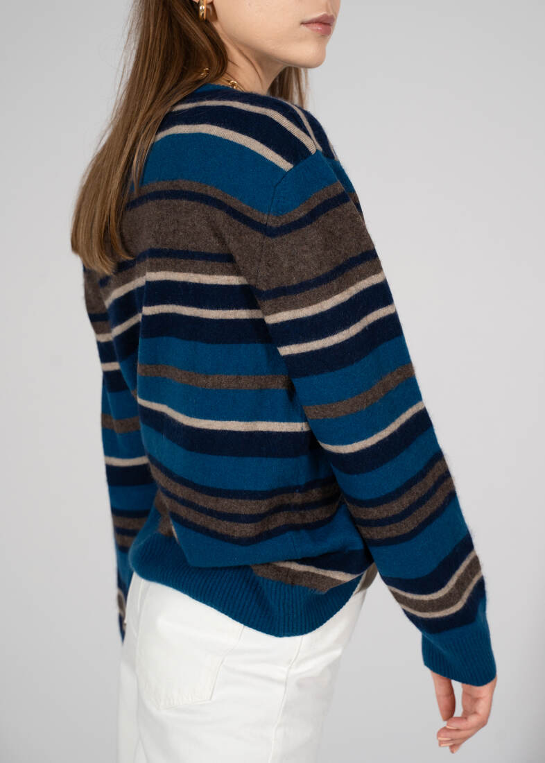 Przepiękny wełniany sweter brytyjskiej marki WoolOvers. Rewelacyjny skład 70% merino wool, 30% kaszmir, jest miękki i milutki w dotyku. Rękawy i dół wykończone dłuższym ściągaczem. Rozmiar z metki S, idealny stan.