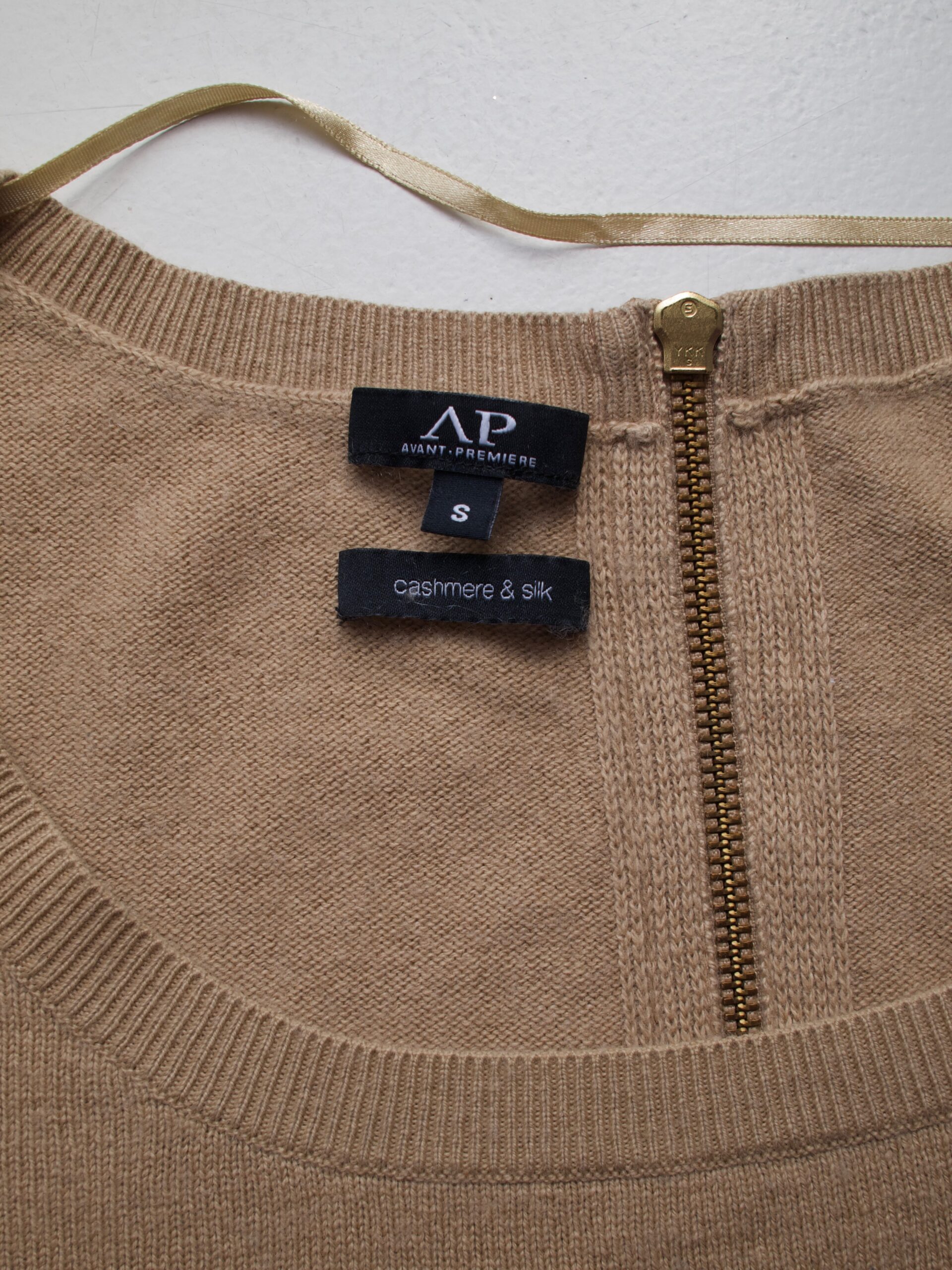 Klasyczny sweter M&S z dekoltem w serek. Skład to 100% kaszmir, bardzo dobry stan, jest minimalnie sfilcowany, nie jest to zauważalne, po prostu jest trochę sztywniejszy.