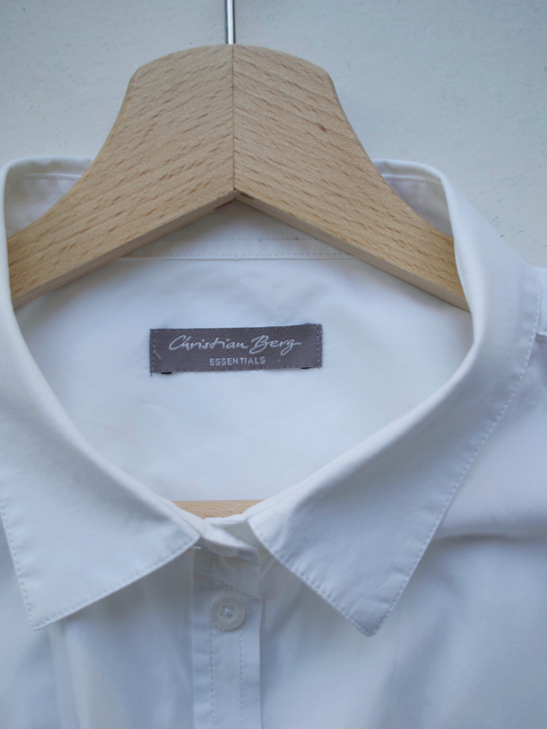 Koszula w stylu basic, norweska marka Christian Berg. Rozmiar z metki: 46 Skład: 100% bawełna Stan: bez wad Szerokość w klatce 57 cm Długośćcałkowita 66 cm