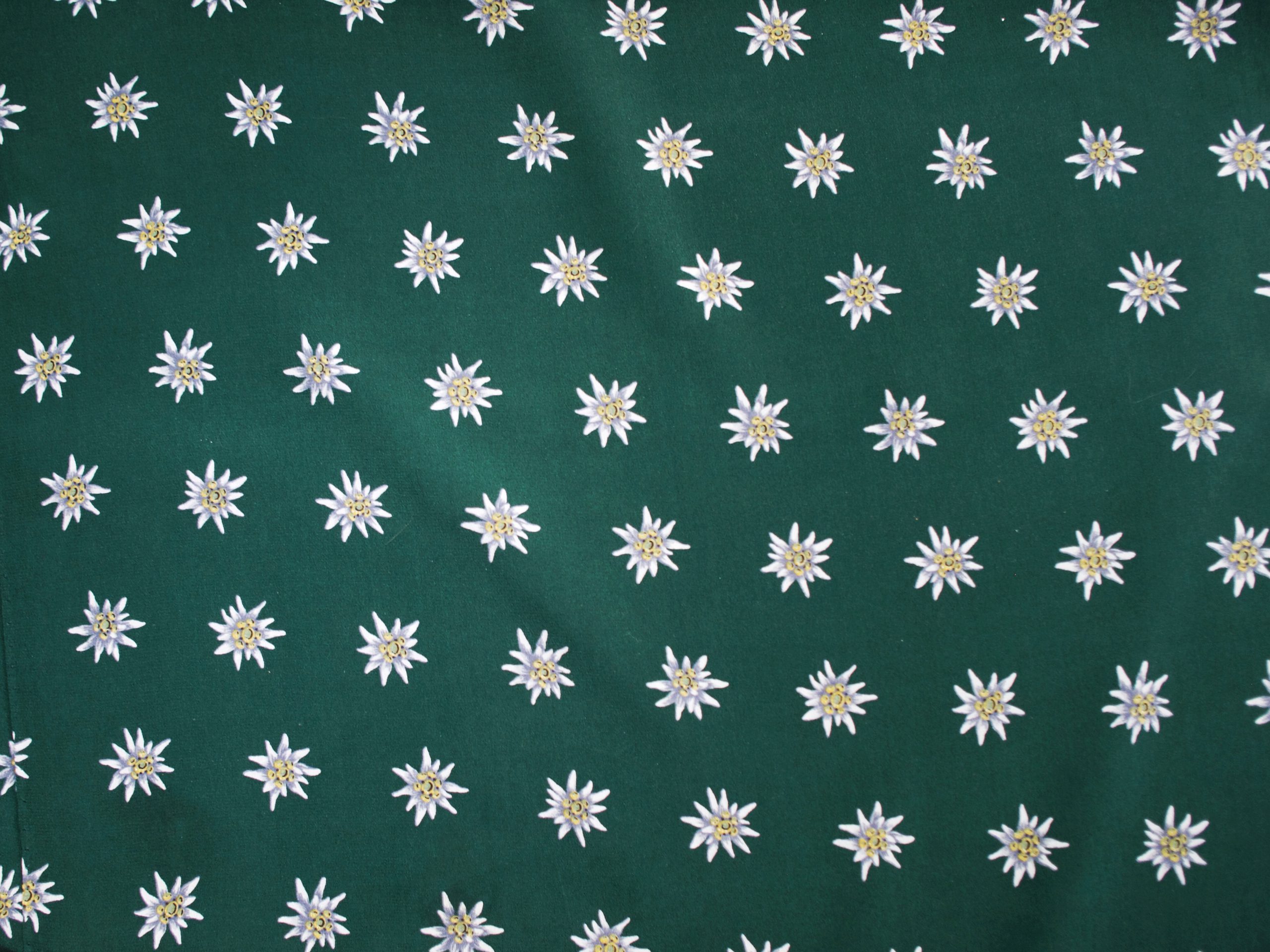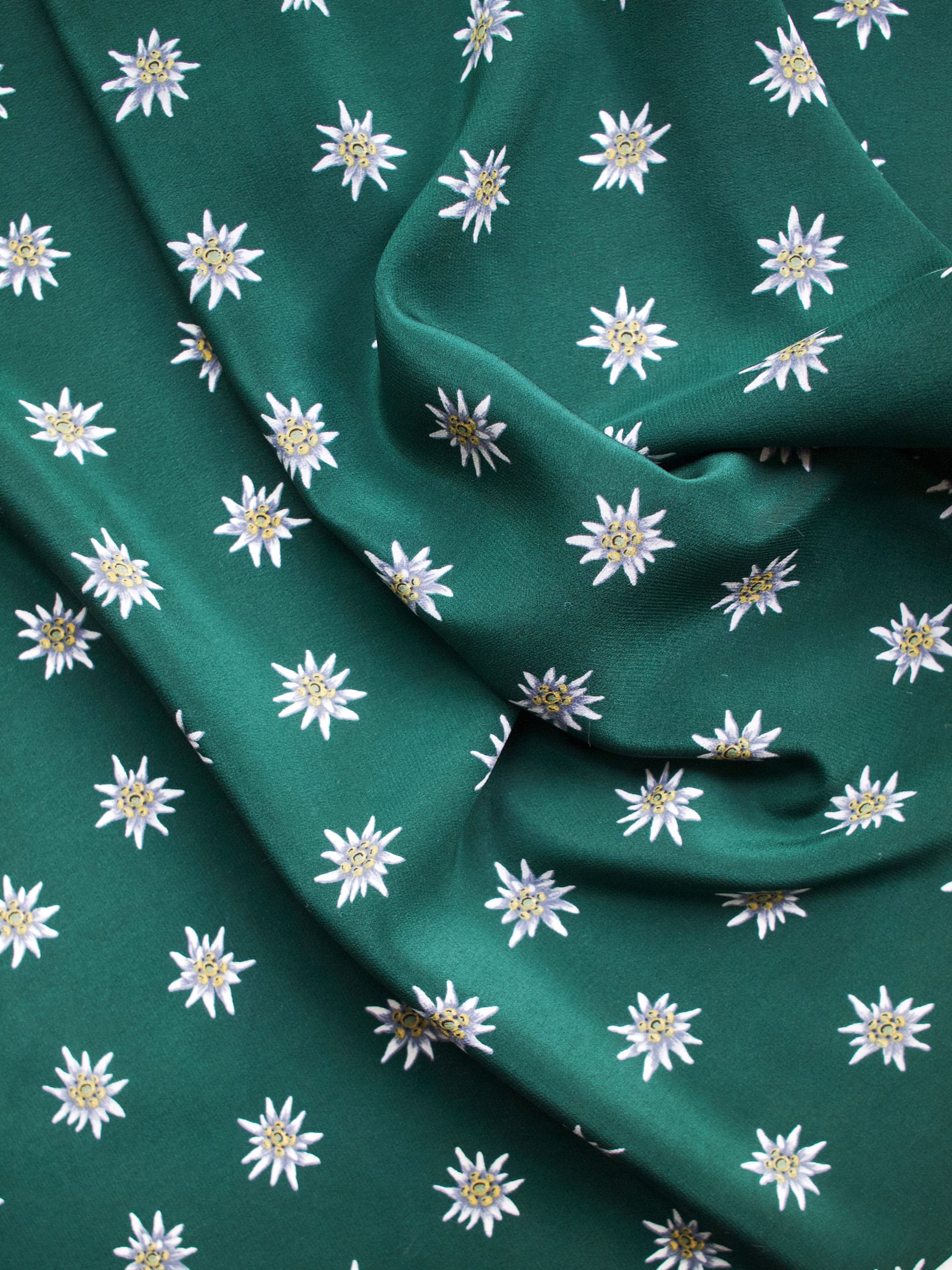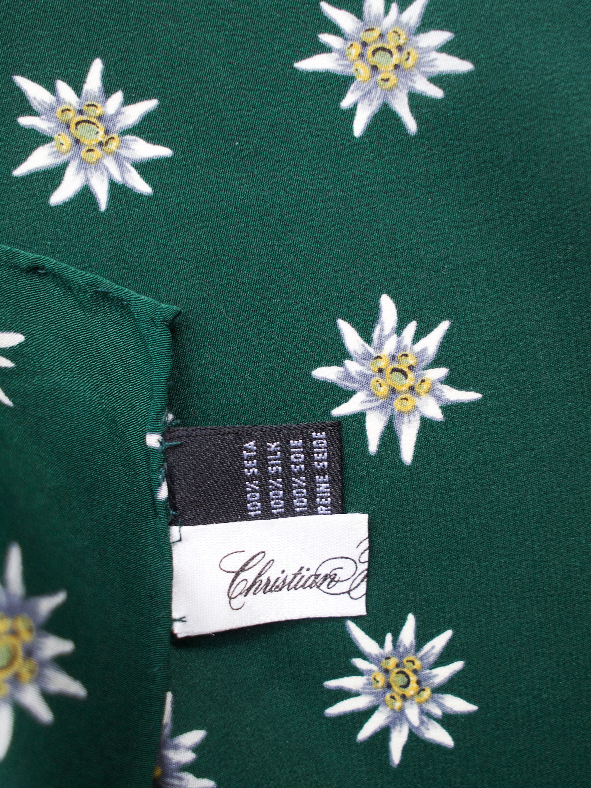 Duży jedwabny szalik we wzór alpejskich szarotek. Szwajcarska marka Christian Fischbacher. Bez wad. Wymiary: 45*155 cm