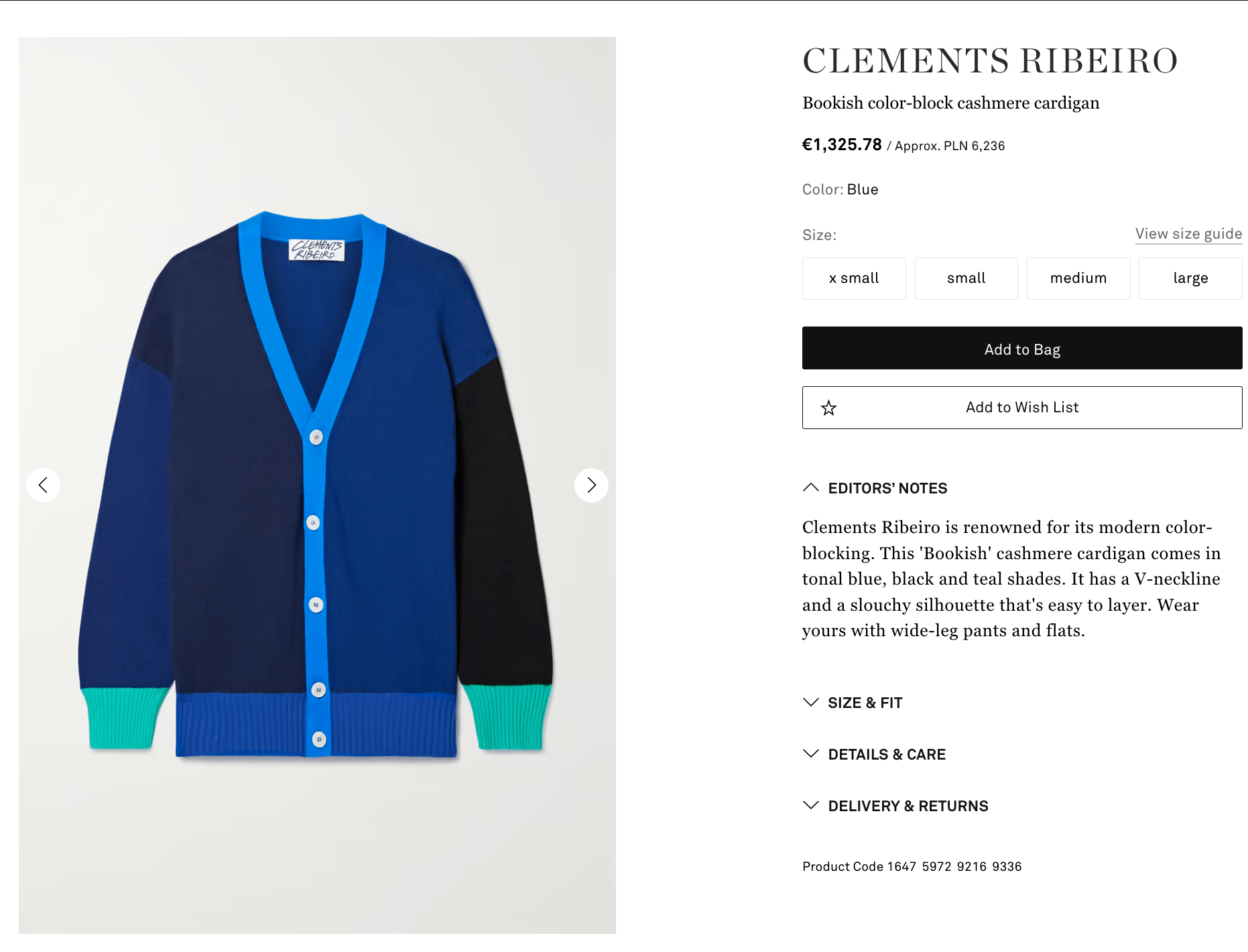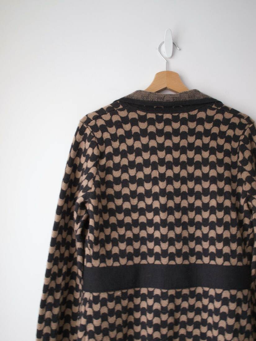 Kardigan luksusowej szkockiej marki Clements Ribeiro, ceny swetrów tej marki można zobaczyć na ostatnim zdjęciu. Model vintage.