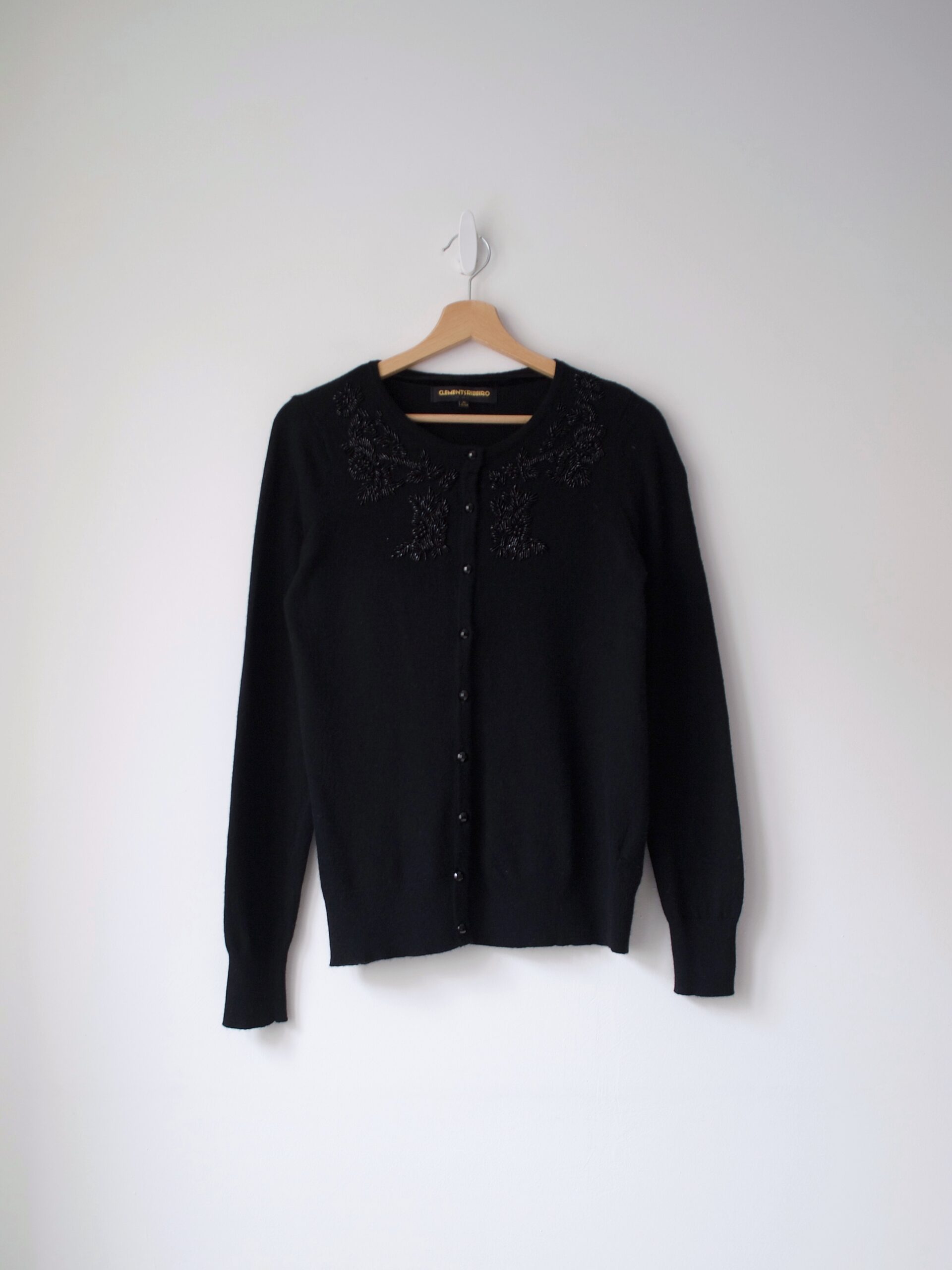 Kardigan luksusowej szkockiej marki Clements Ribeiro. Rozmiar z metki: M, polecam również na S Skład: na zdjęciu Stan: bez wad Szerokość w klatce 43,5 cm Długośćcałkowita 63 cm