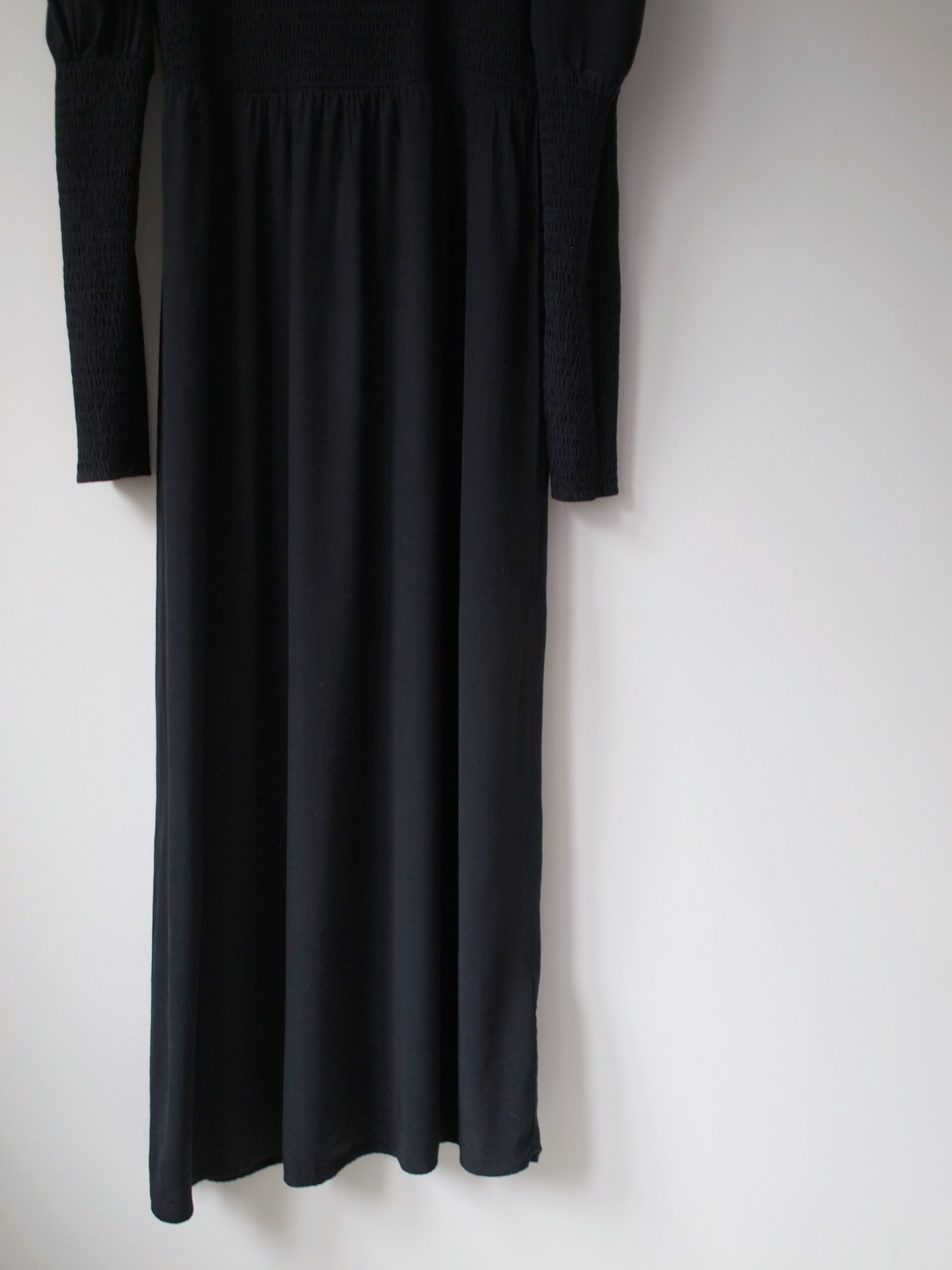 Rozmiar z metki: S, długa Skład: 74% wiskoza, 26% poliester Stan: bez wad Szerokość w ramionach 35 cm Szerokość w klatce 42-47 cm Długośćcałkowita 130 cm