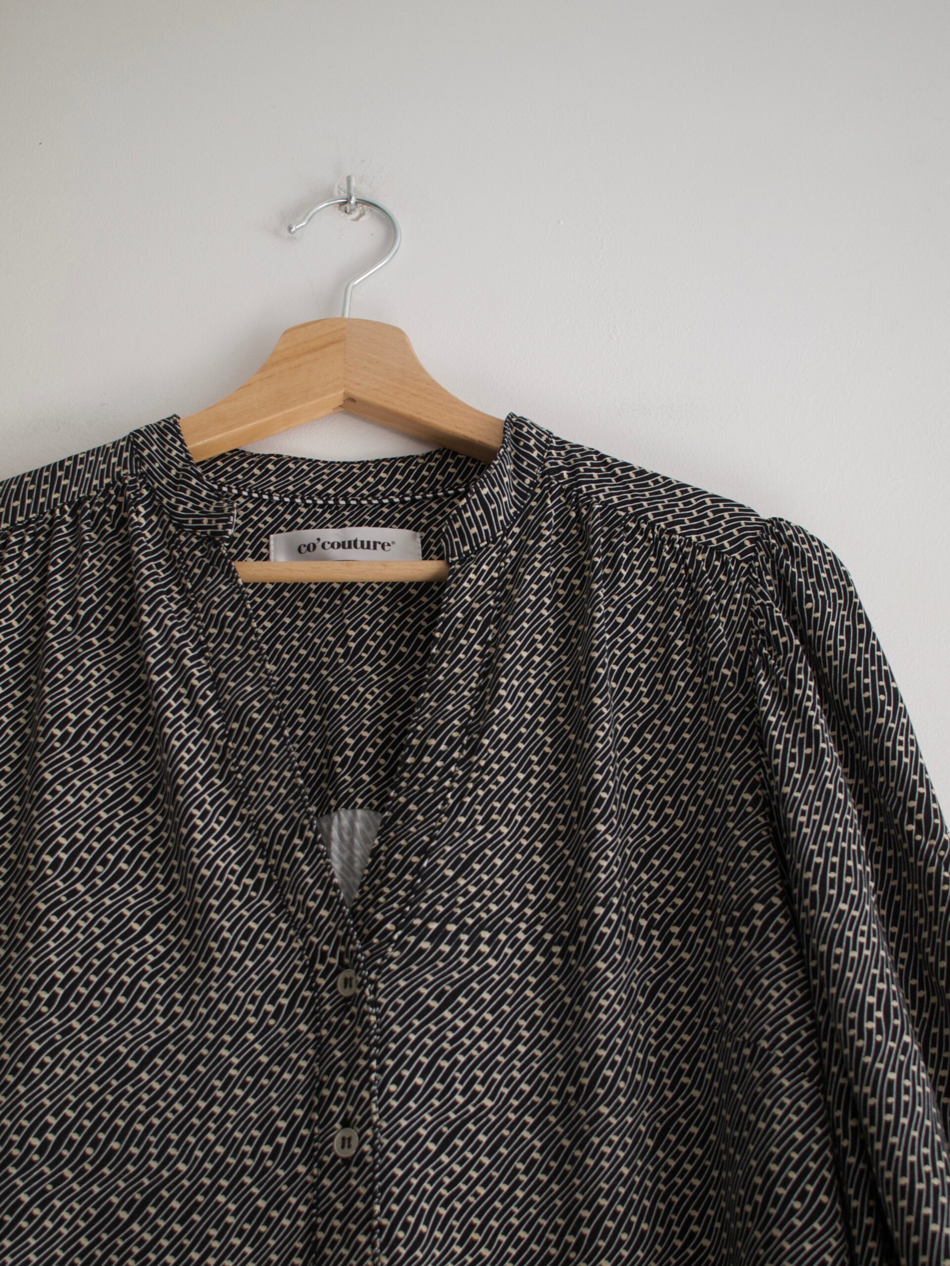 Bluzka francuskiej marki Maje Paris, cena katalogowa to ok. 800 zł. Koszula ma nietypowy kołnierzyk, wstążkę można odczepić. Rozmiar z metki 2, będzie pasować na XS-S-mniejsze M. Bardzo dobry stan. Modelka nosi rozmiar XS-S. Skład: 64% wiskoza, 36% poliester.