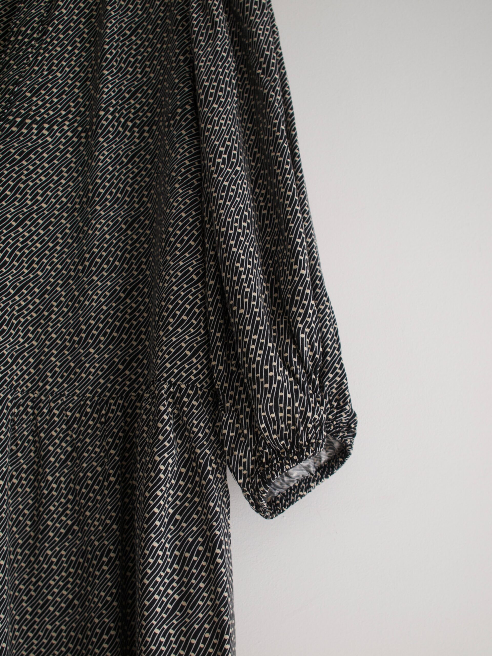 Jedwabna sukienka w orientalnym stylu. Prosty krój, z tyłu zapinana na zamek. Będzie pasować na S-M, polecam dla osoby wysokiej. Wymiary poniżej, bez wad.