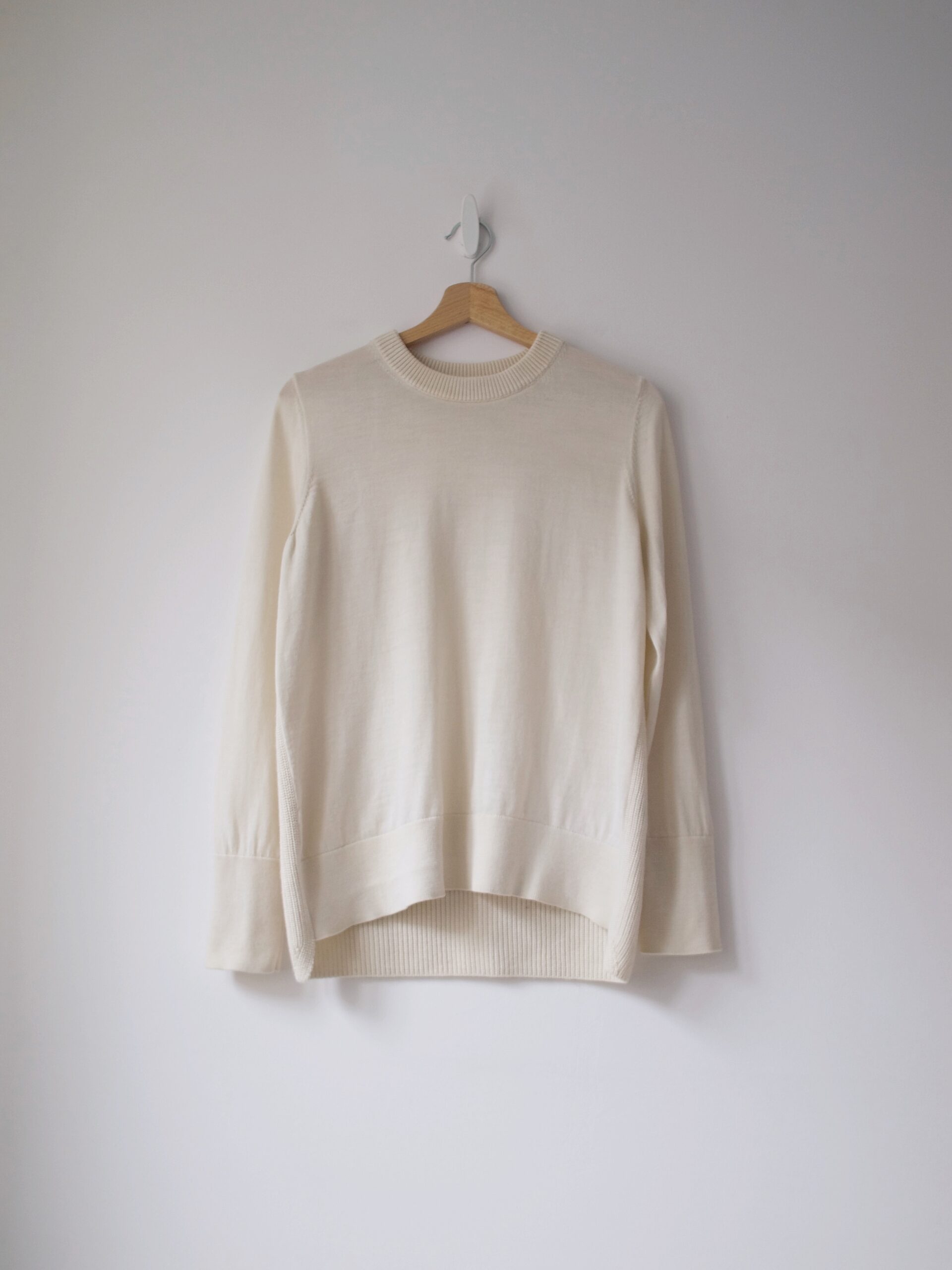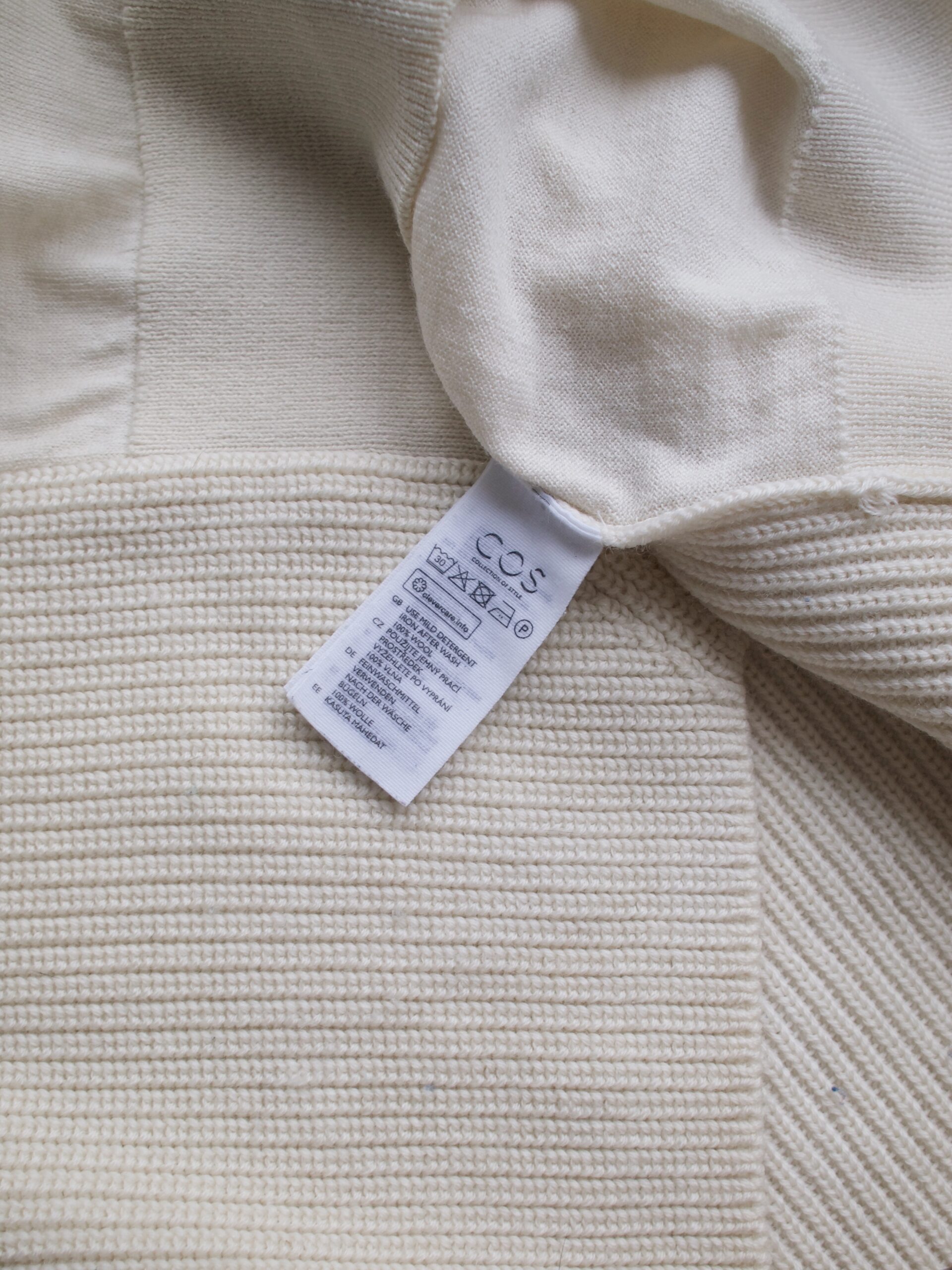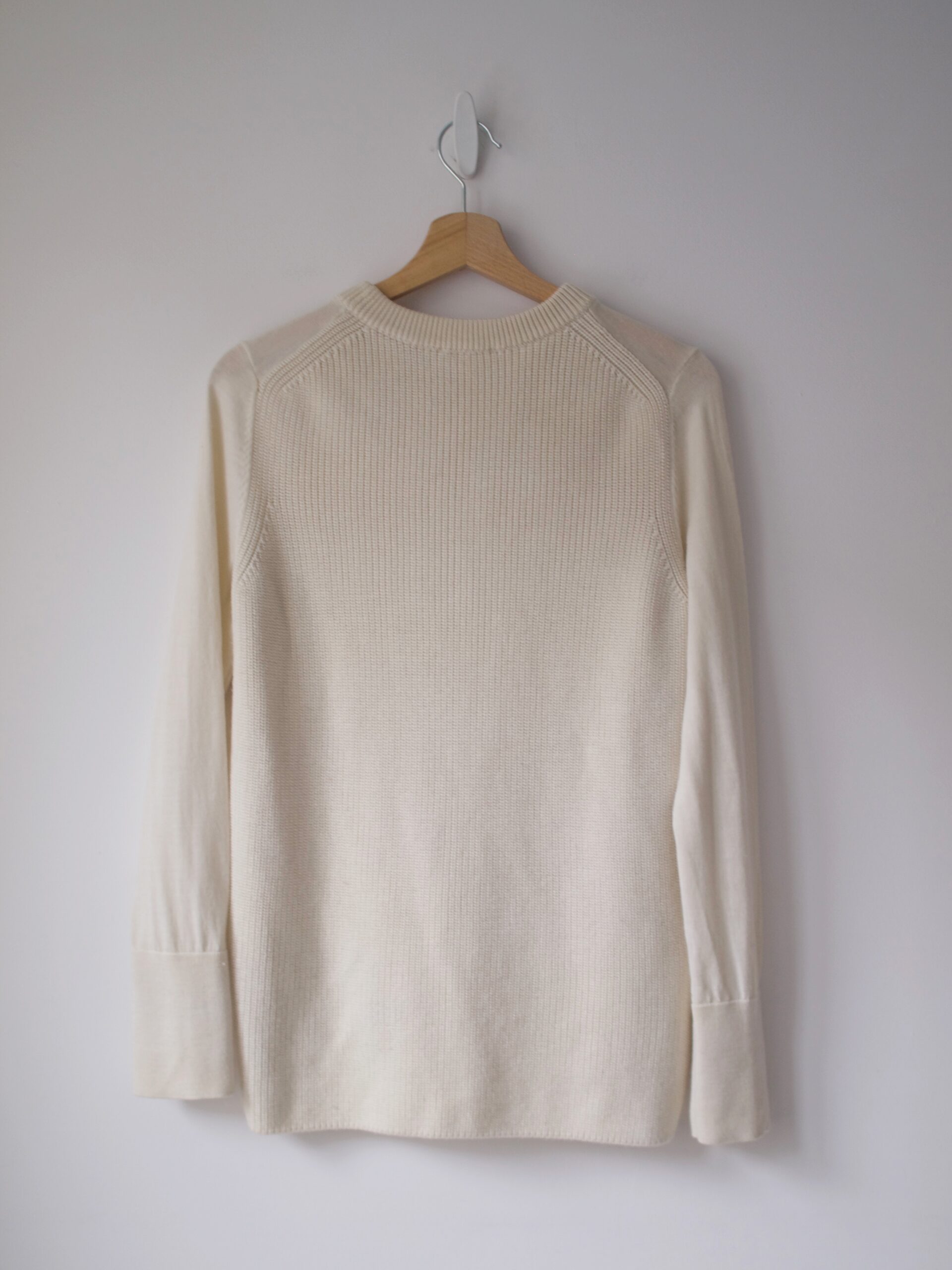 Klasyczny sweter M&S z dekoltem w serek. Skład to 100% kaszmir, bardzo dobry stan, jest minimalnie sfilcowany, nie jest to zauważalne, po prostu jest trochę sztywniejszy.