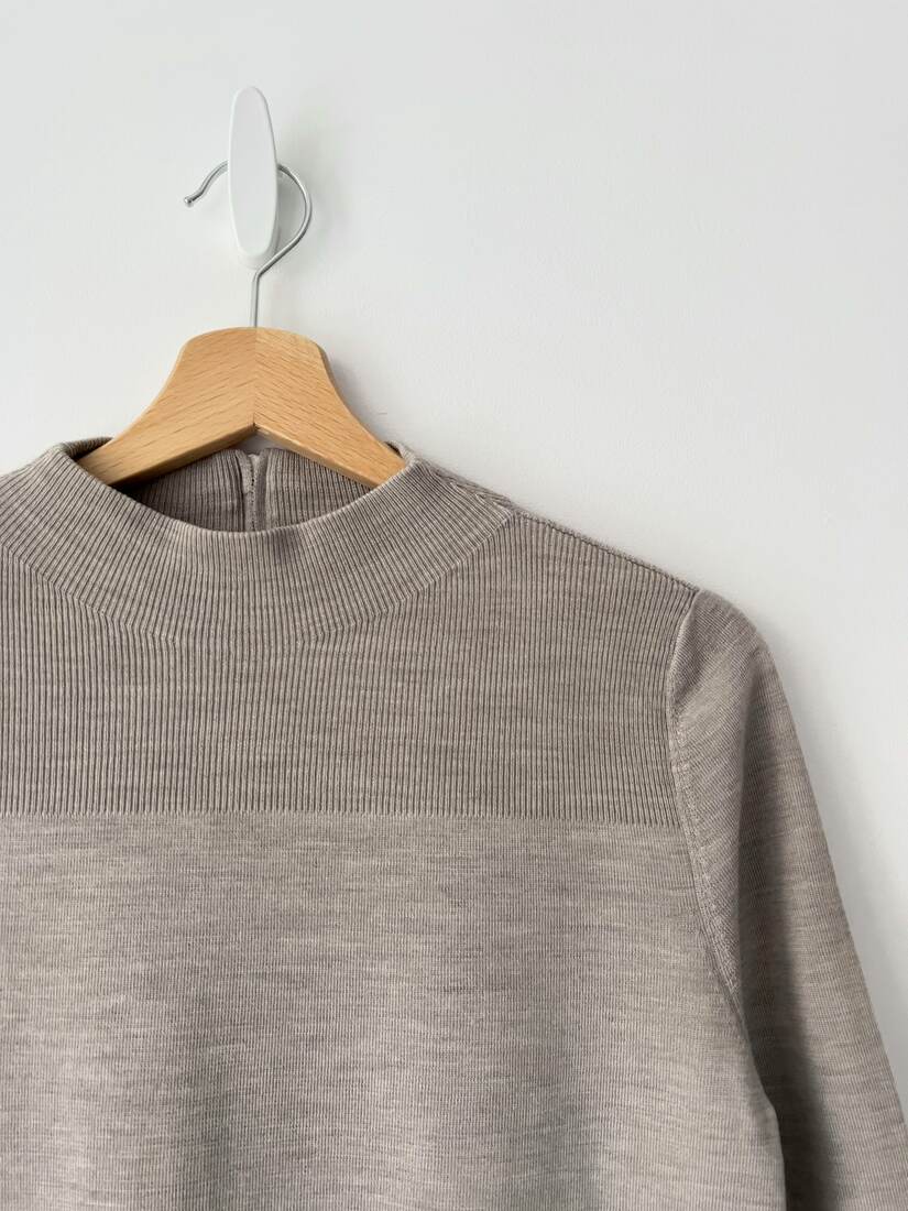 Klasyczny sweter M&S z dekoltem w serek. Skład to 100% kaszmir, bardzo dobry stan, jest minimalnie sfilcowany, nie jest to zauważalne, po prostu jest trochę sztywniejszy.