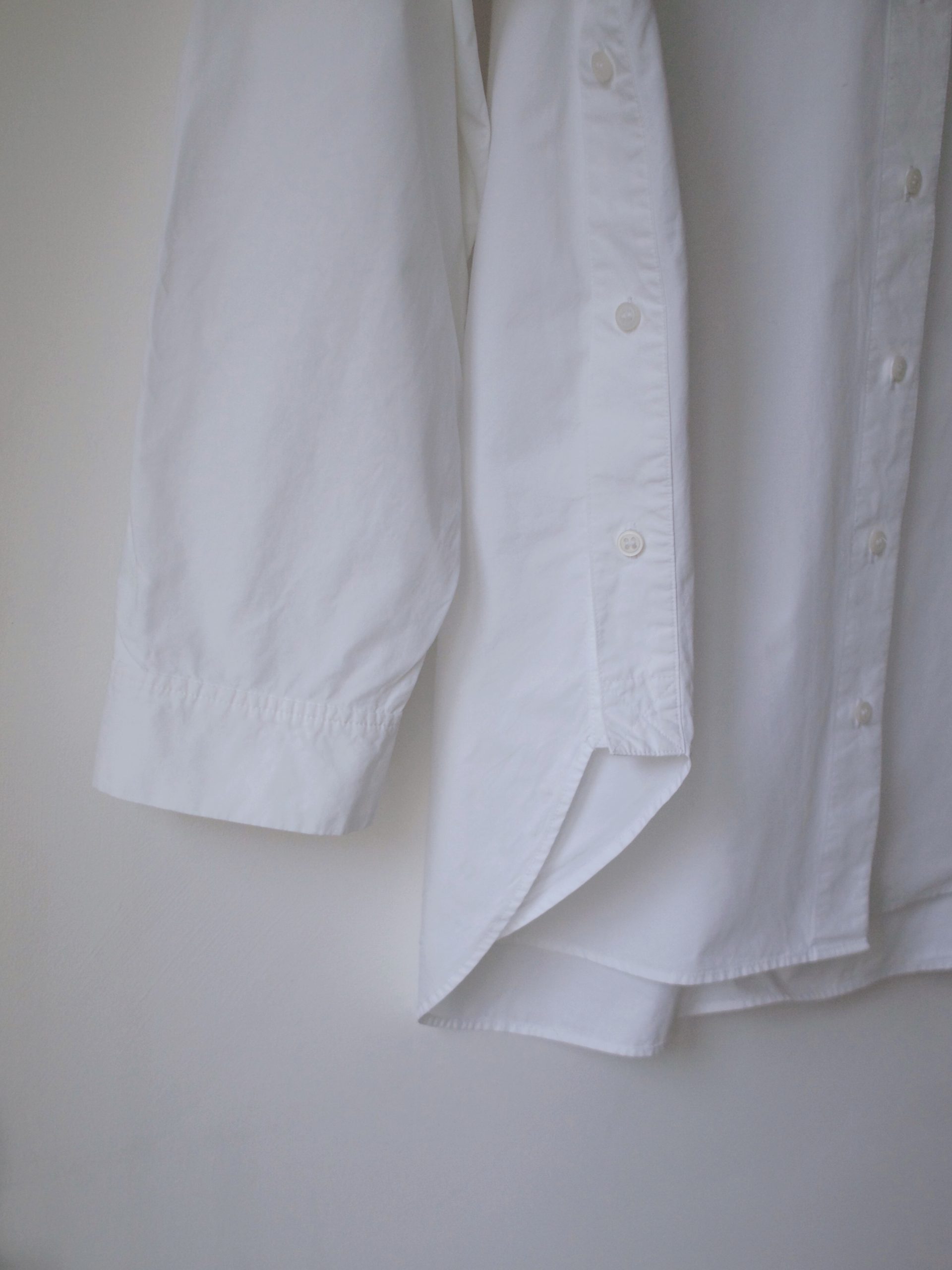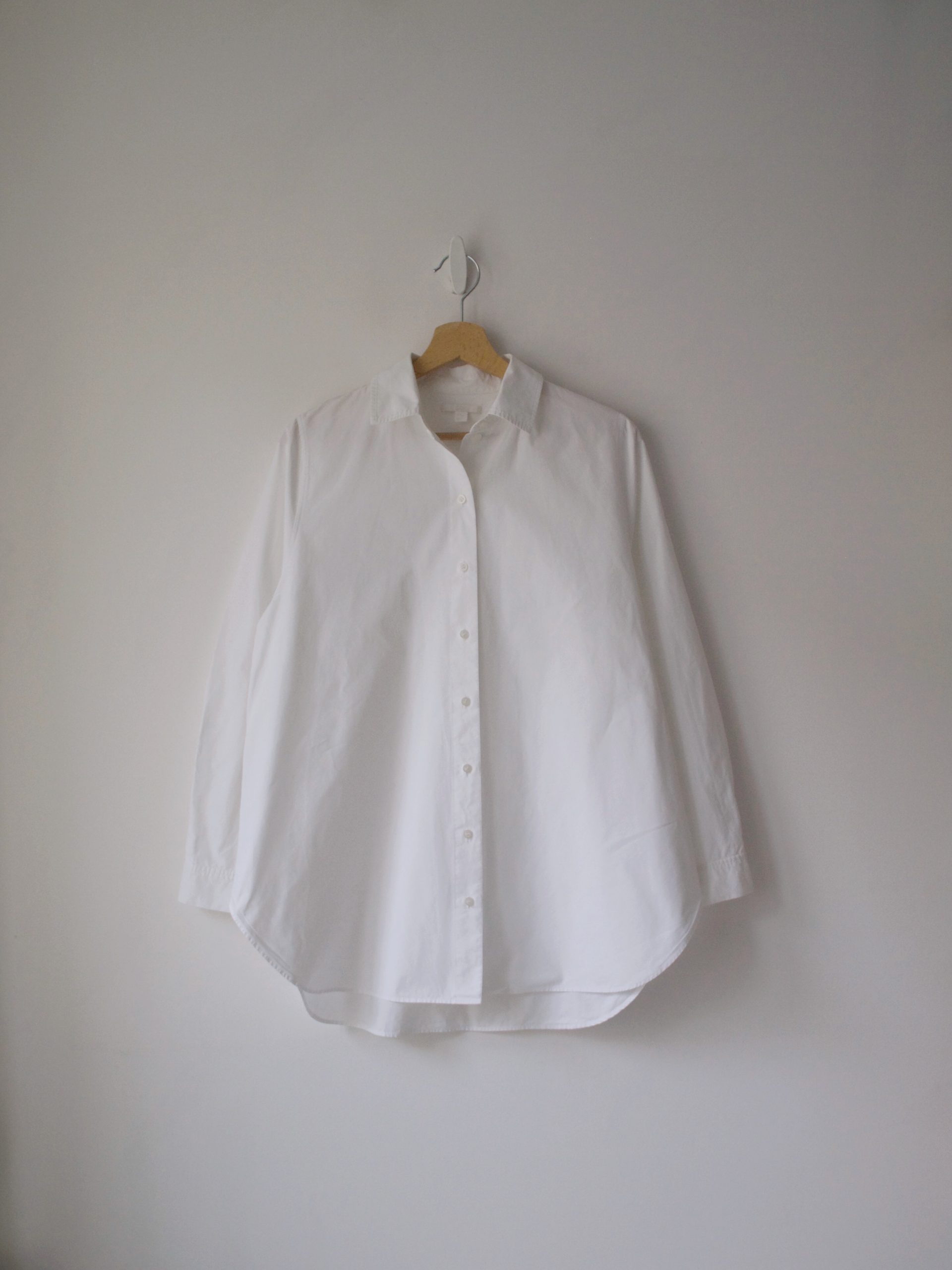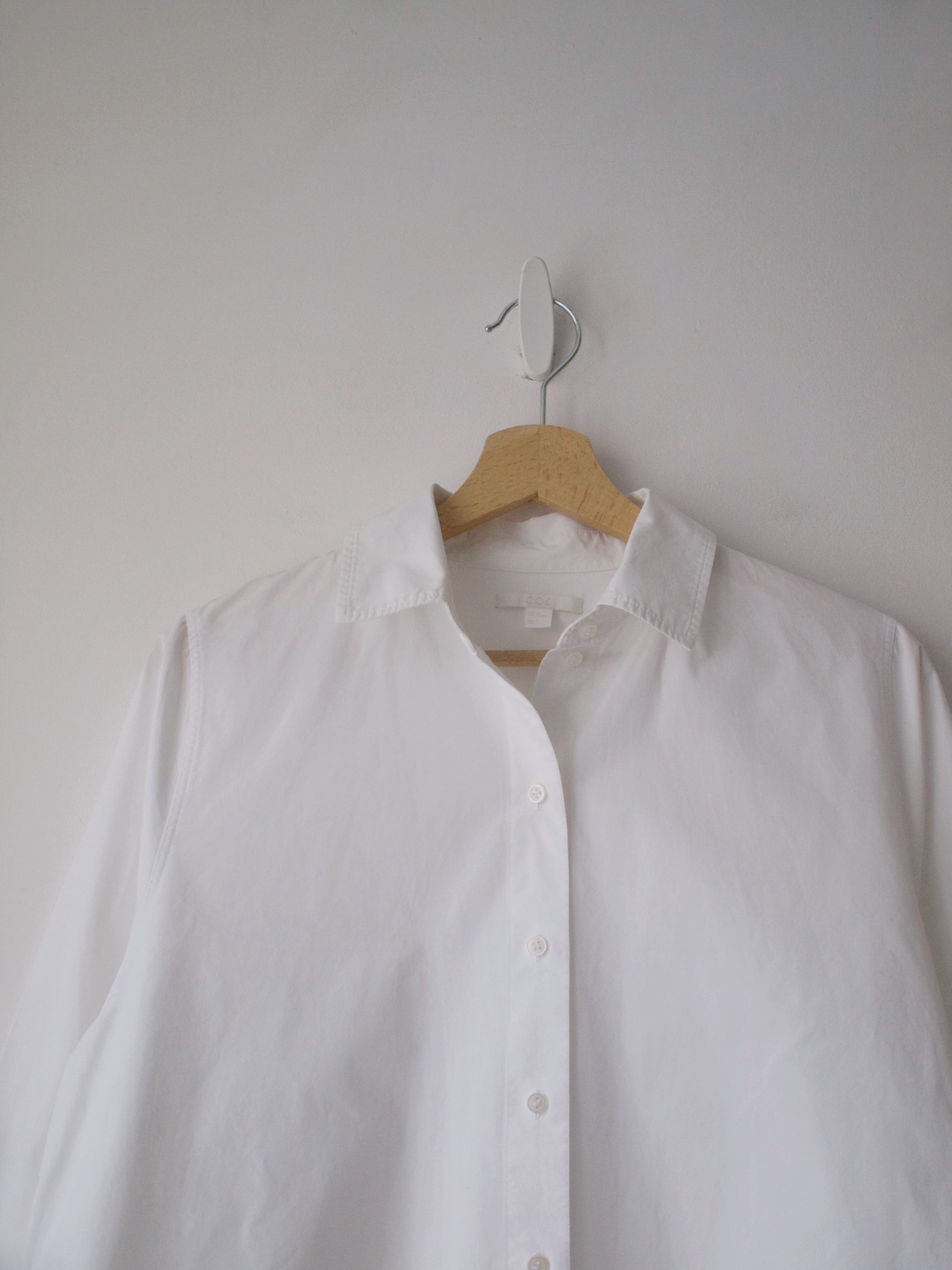 Koszula marki COS, w 100% wykonana z bawełnianej popeliny. Bardzo oversize’owy fason, boki zapinane na guziki.