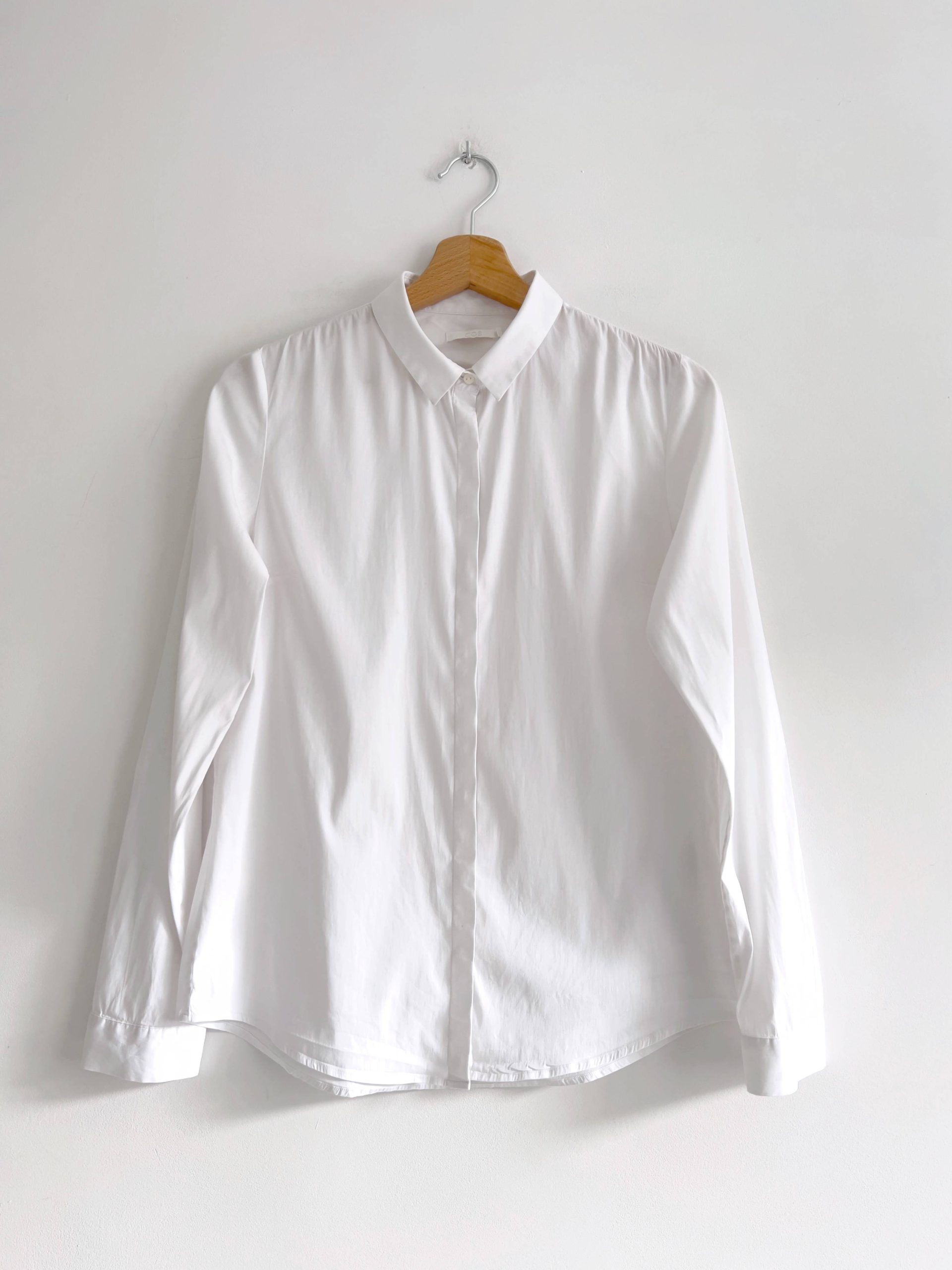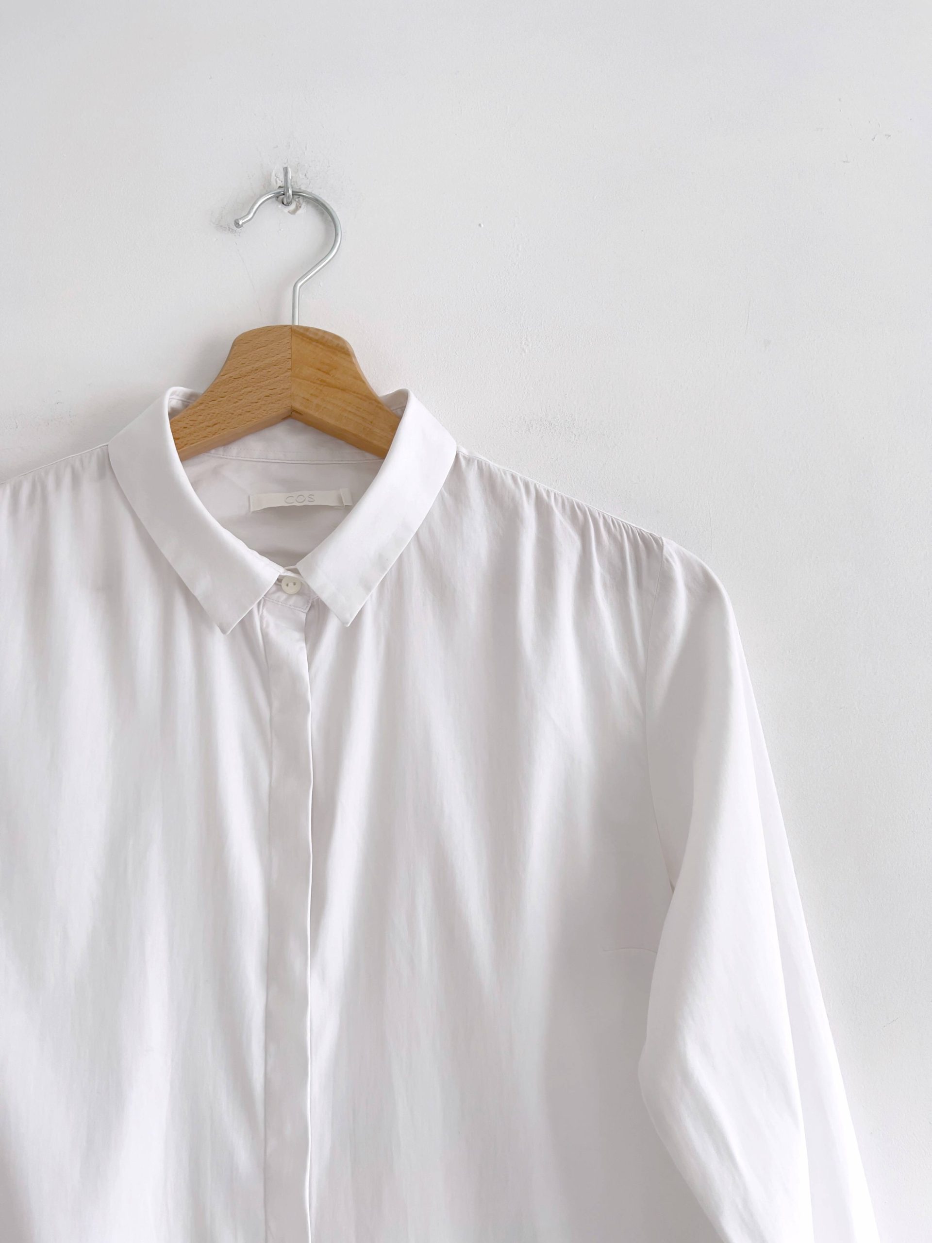 Kremowa koszula vintage z ozdobnymi guzikami i plisami na rękawach. Brak metki ze składem (prawdopodobnie poliester), materiał prawie nie gniecie się. Brak metki z rozmiarem, proszę sprawdzać wymiary. Bez wad.
