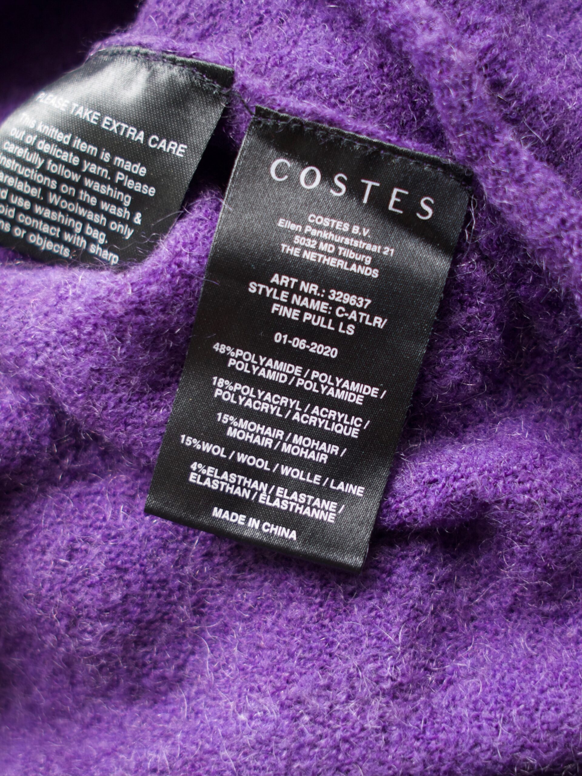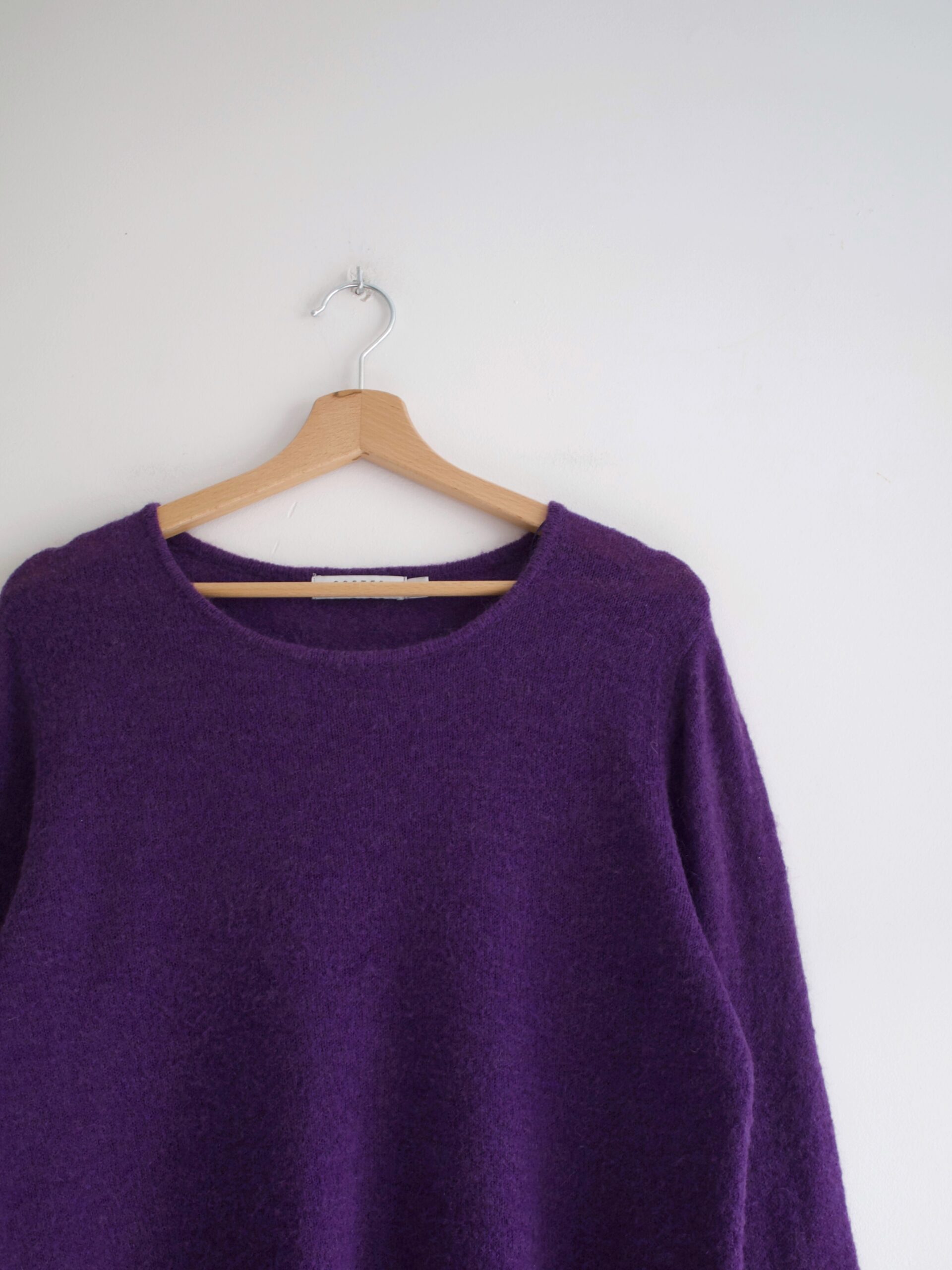 Sweter niderlandzkiej marki Costes, wykonany z puszystej tkaniny z dodatkiem wełny oraz moheru.