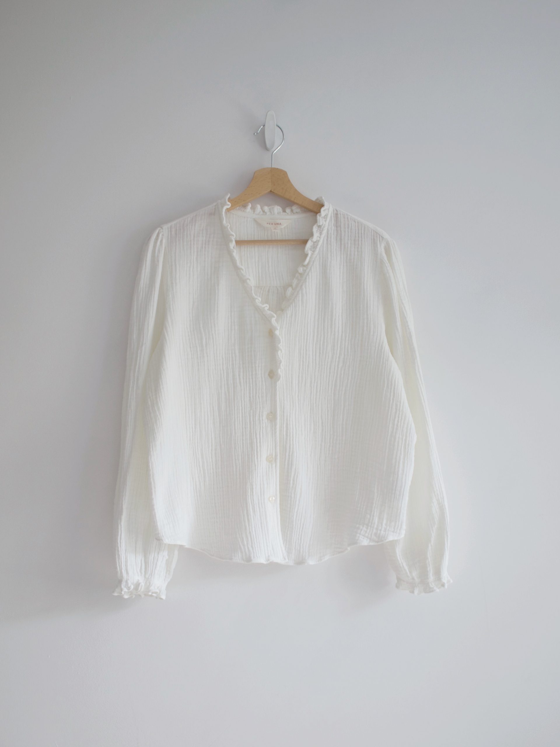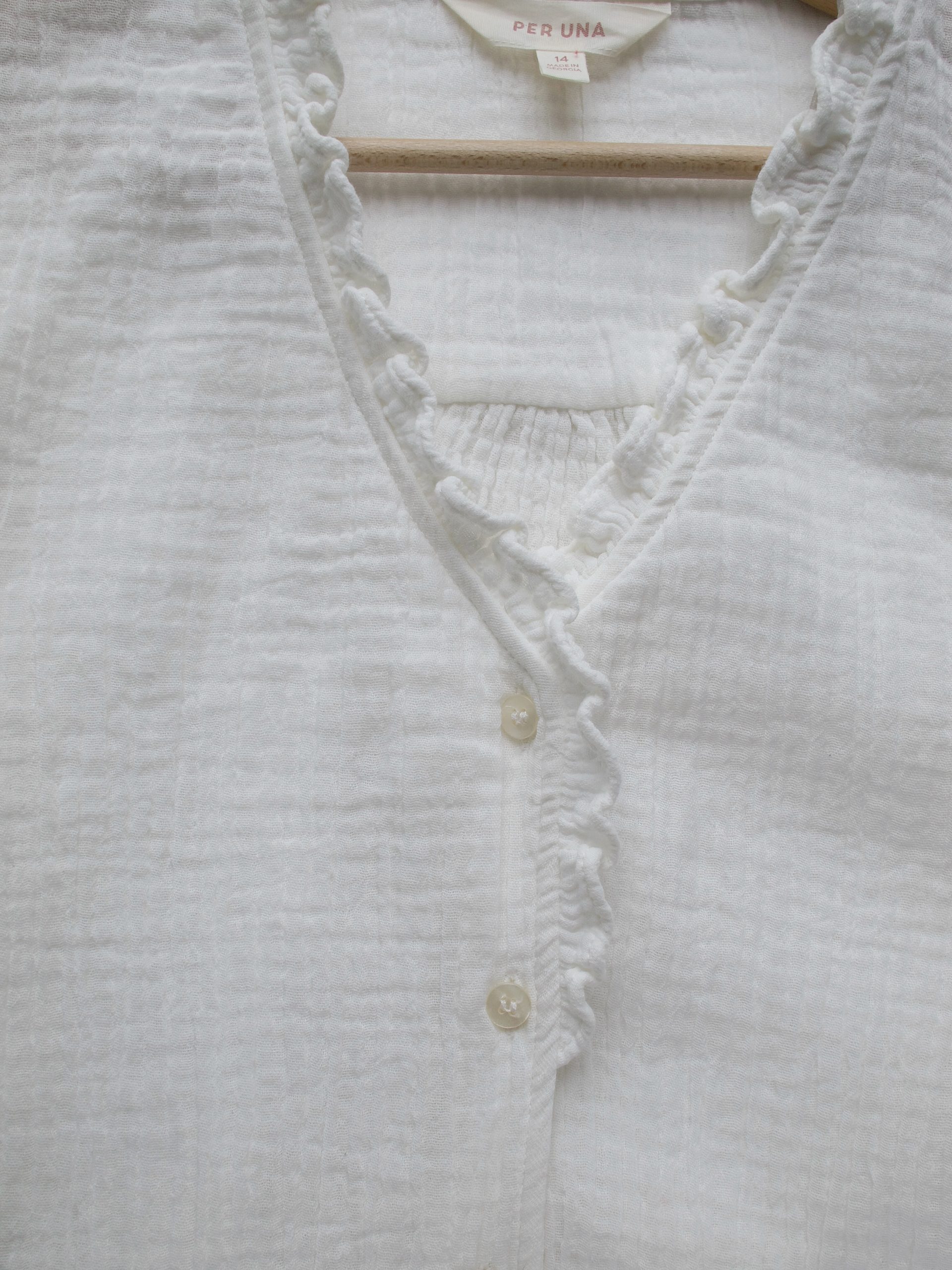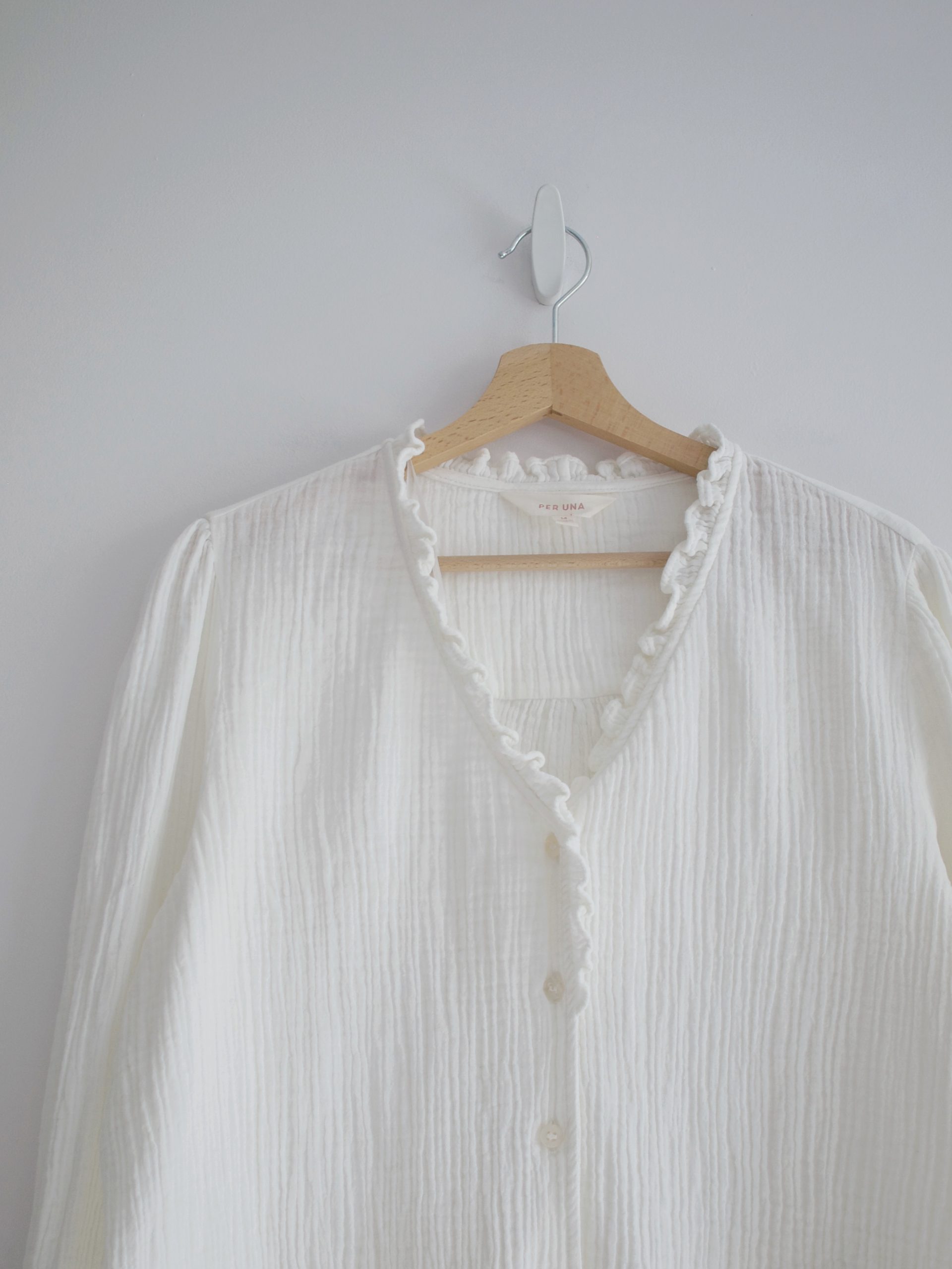 Minimalistyczny kremowy golf wykonany w 100% z wełny merynosa. Materiał przyjemny w dotyku, nie gryzie, sweter bez wad. Rozmiar z metki S, wymiary poniżej.