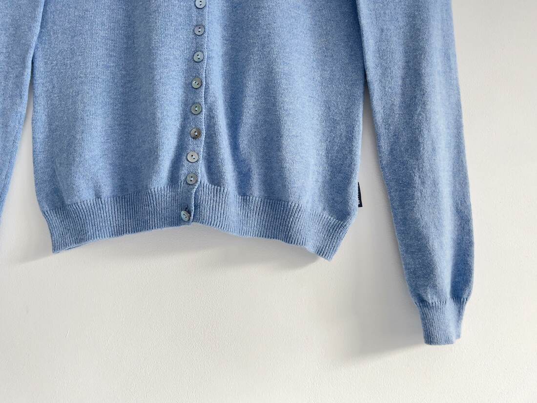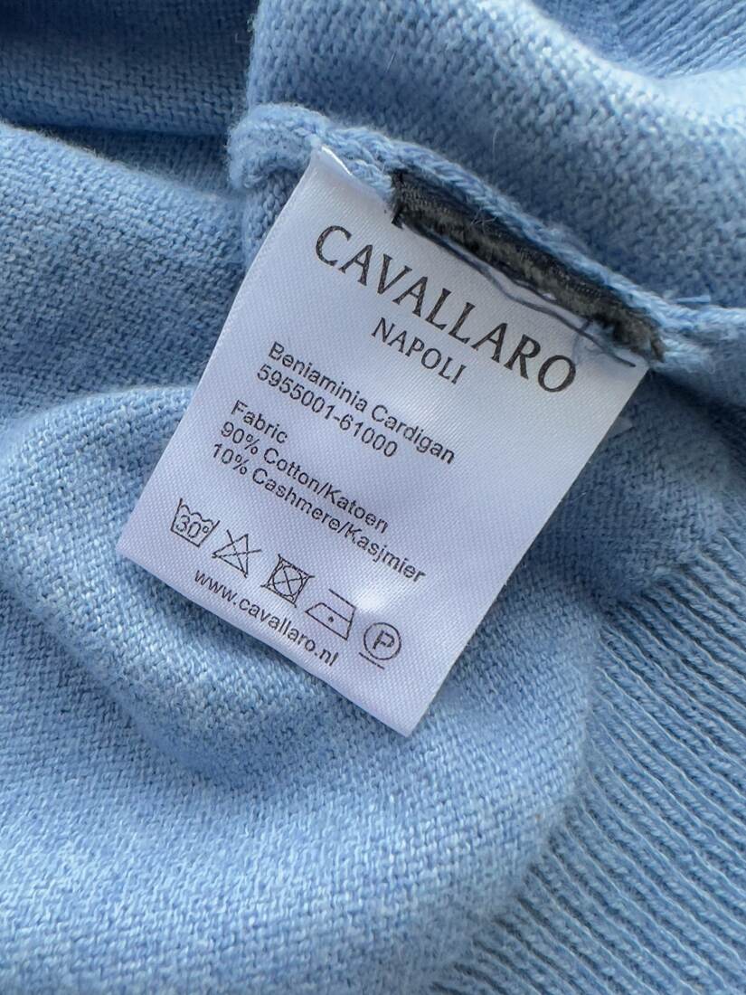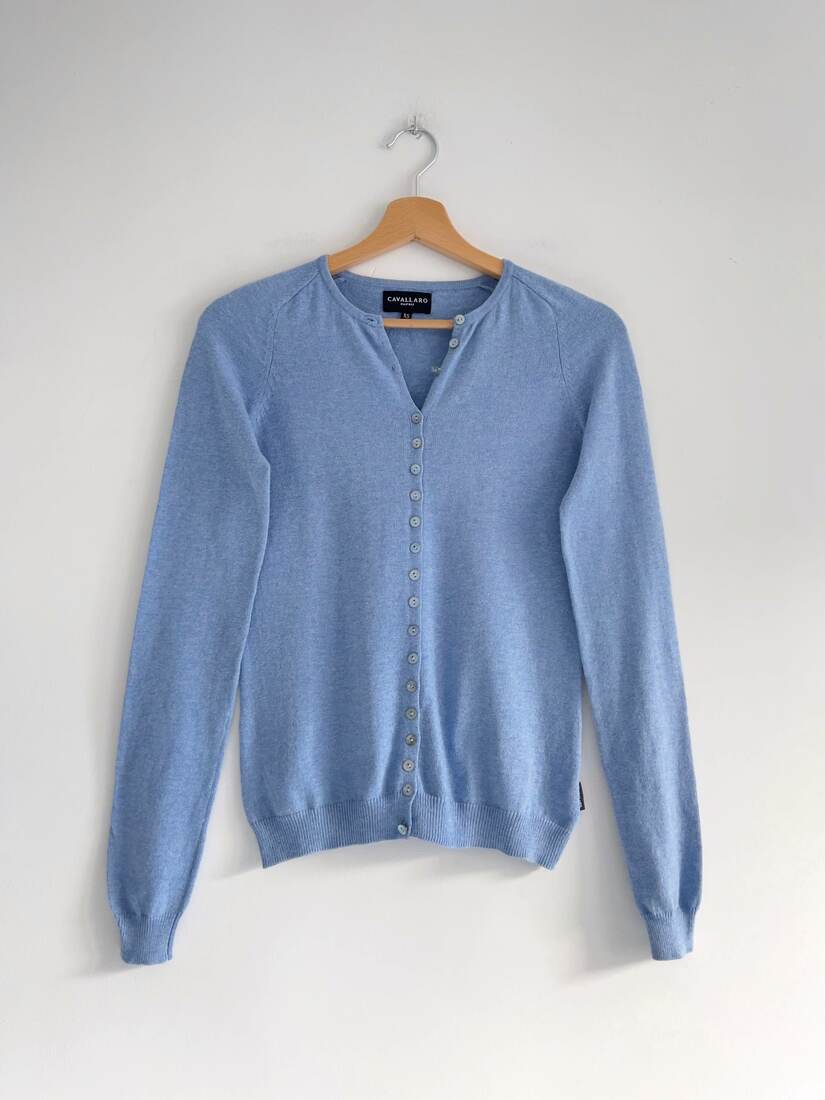 Cienki kardigan włoskiej marki Cavallaro Napoli. Wykonany z bawełny z dodatkiem kaszmiru. Rozmiar XS, dopasowany fason. Bardzo dobry stan.