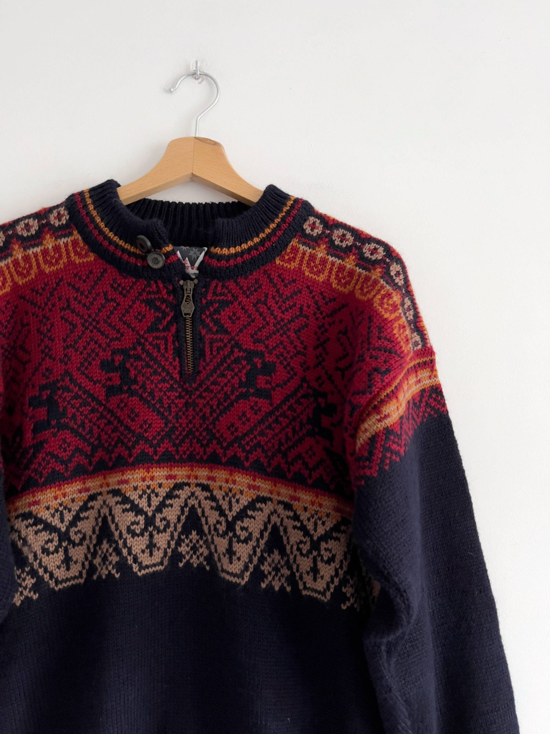 Sweter ekskluzywnej marki Dale of Norway, cena katalogowa to ok 300$. W 100% wykonany z wełny. Rozmiar z metki XS (męskie), bez wad.