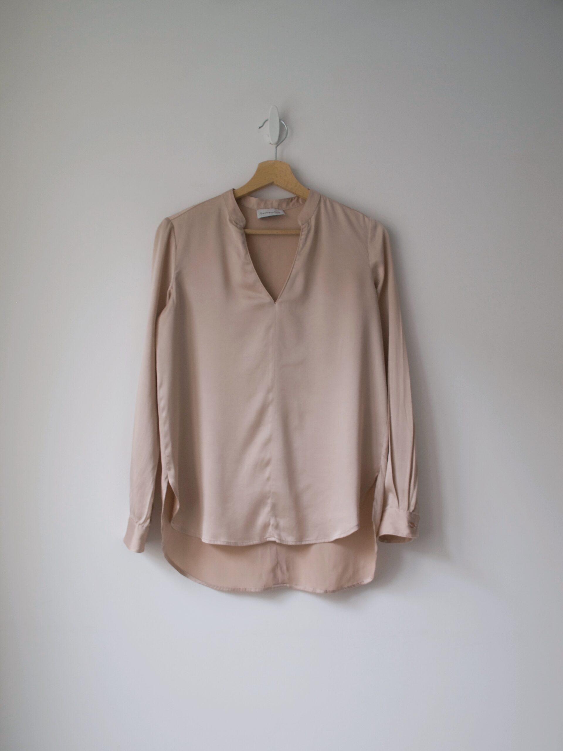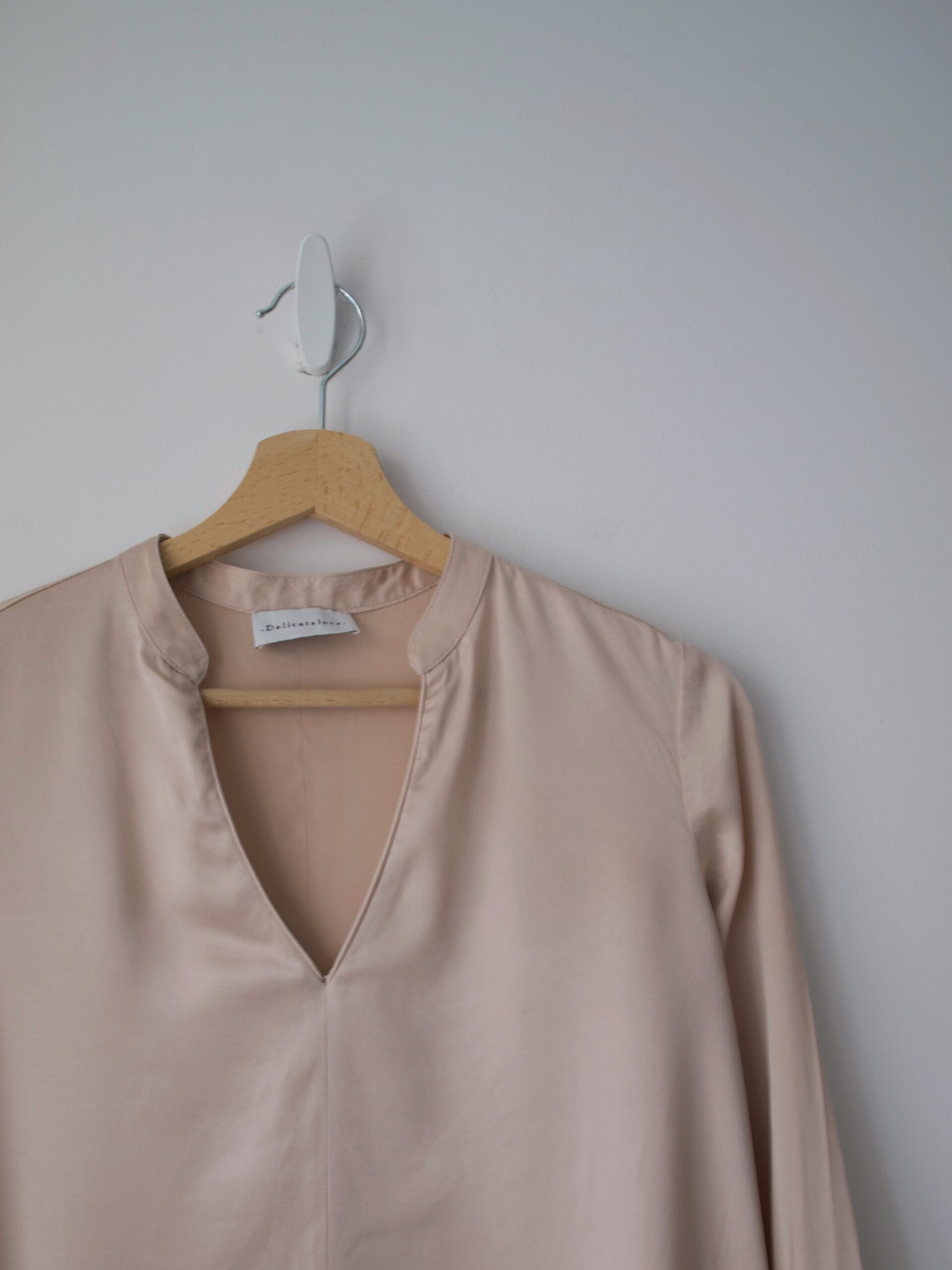 Koszula ekskluzywnej niemieckiej marki Delicatelove. Wykonana z miłej w dotyku jedwabnej tkaniny w kolorze ciepłego beżu.