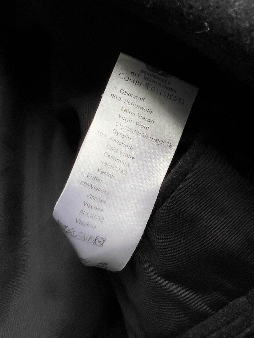 Skład: 90% wełna, 10% kaszmir, podszewka 100% wiskoza.