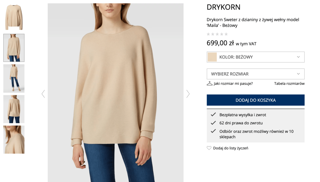 Sweter ekskluzywnej skandynawskiej marki Drykorn, cena katalogowa 699 zł. W 100% wykonany z wełny. Luźny fason z okrągłym dekoltem i bez zaznaczonej linii ramion. Rozmiar z metki M, bez wad.