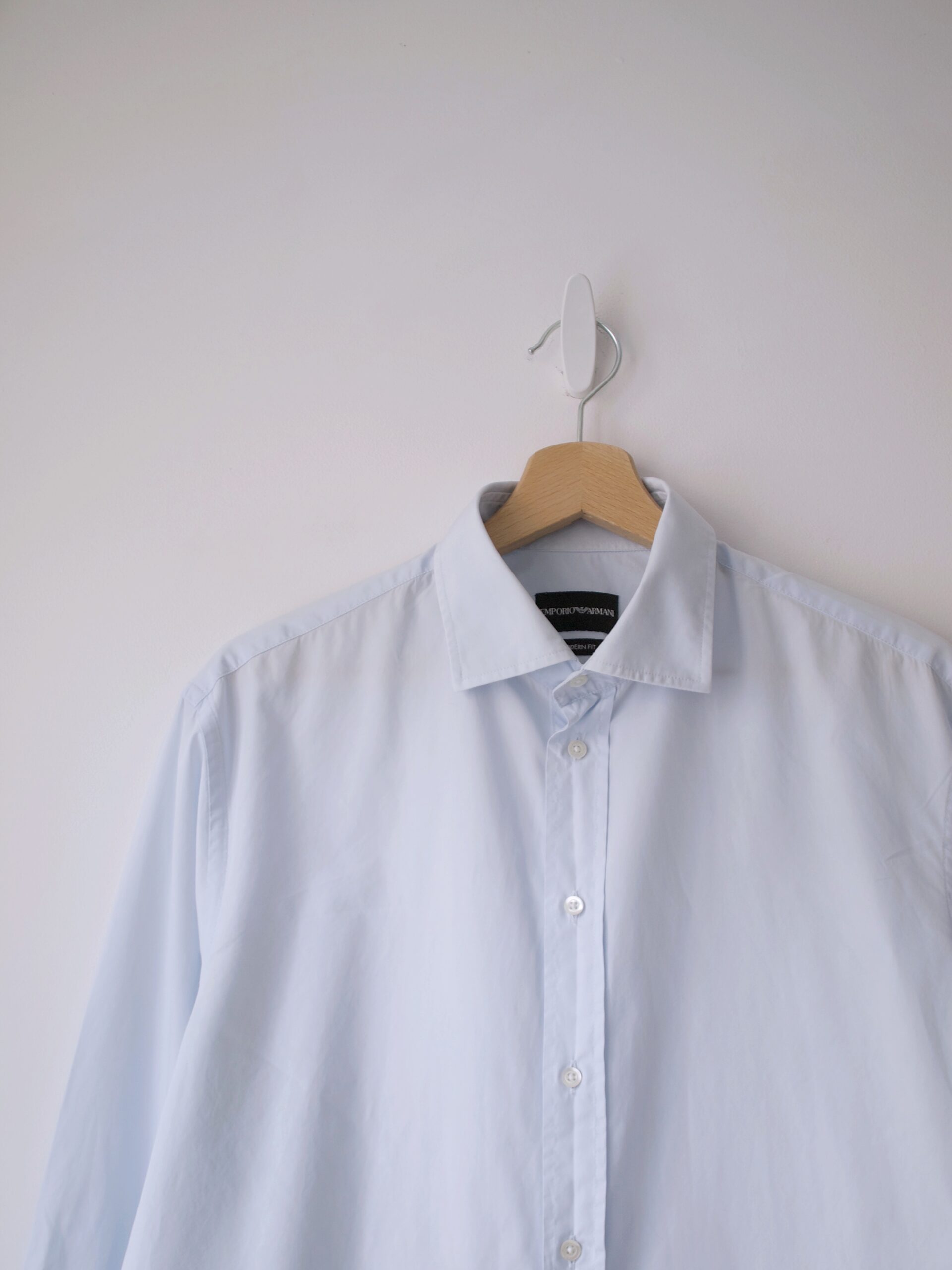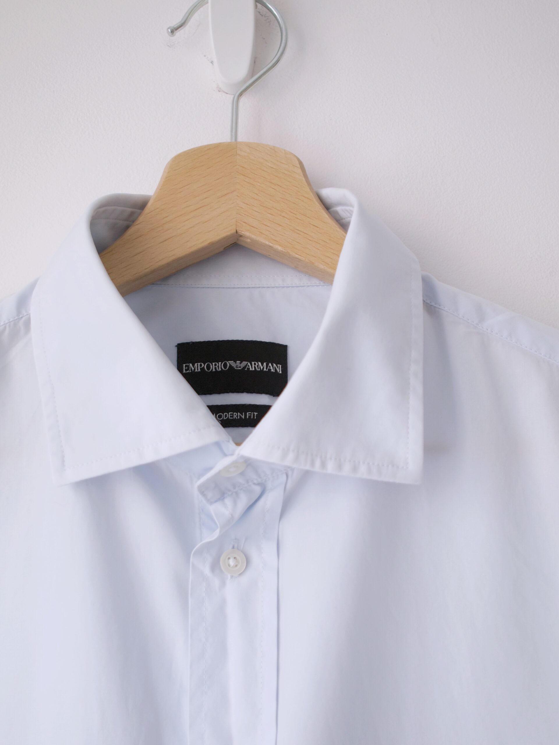 Koszula renomowanej marki Emporio Armani. Model Modern Fit, dostępny na stronie marki w cenie 165 euro.