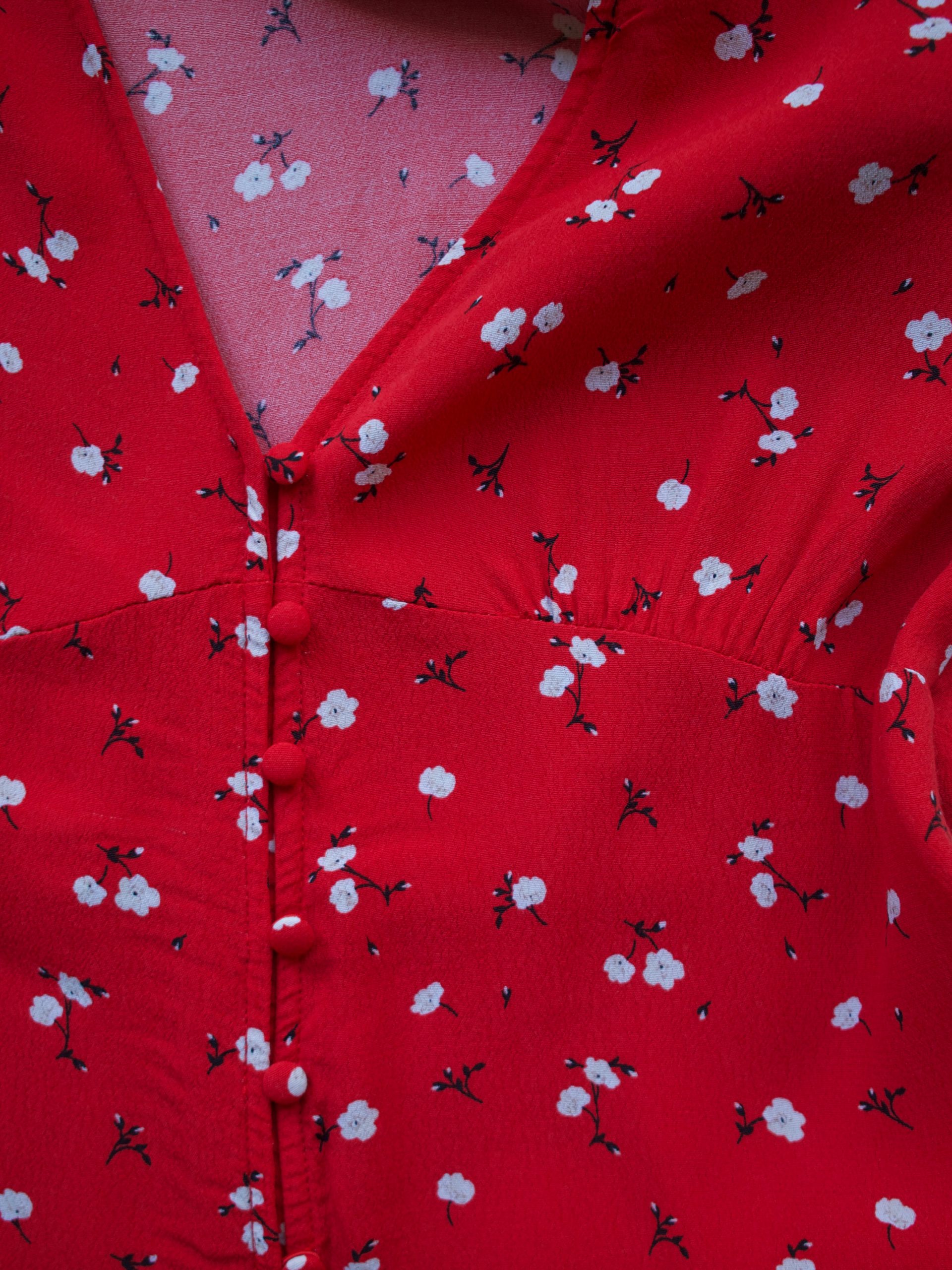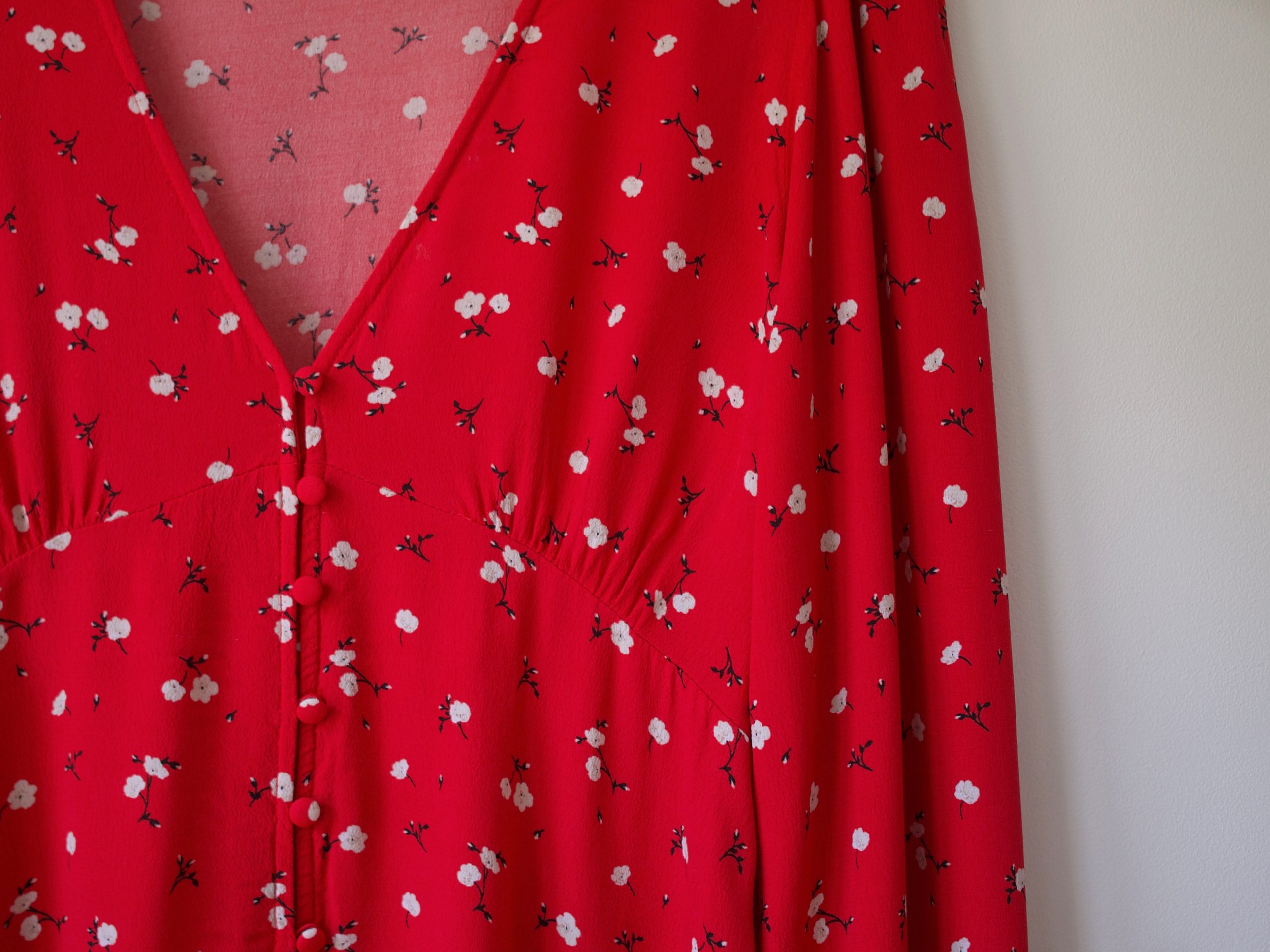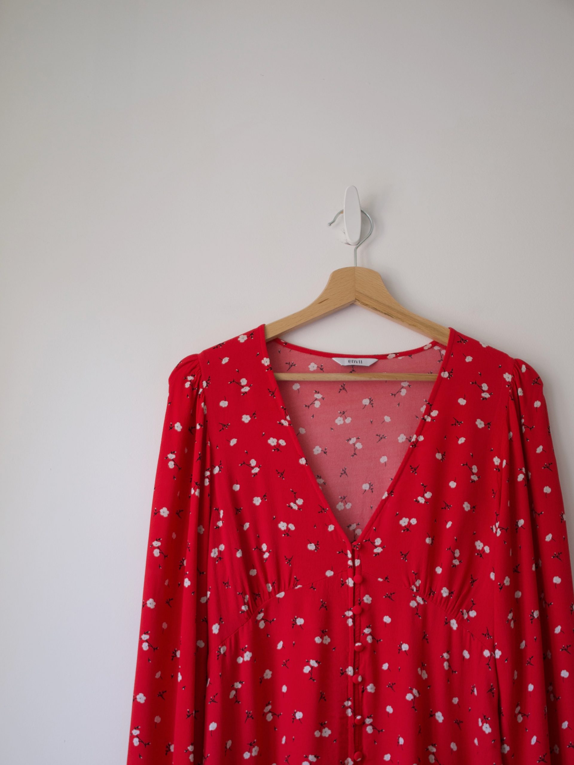 Sukienka skandynawskiej marki Envii w drobny kwiatowy wzór. Zapinana na ukryty boczny zamek