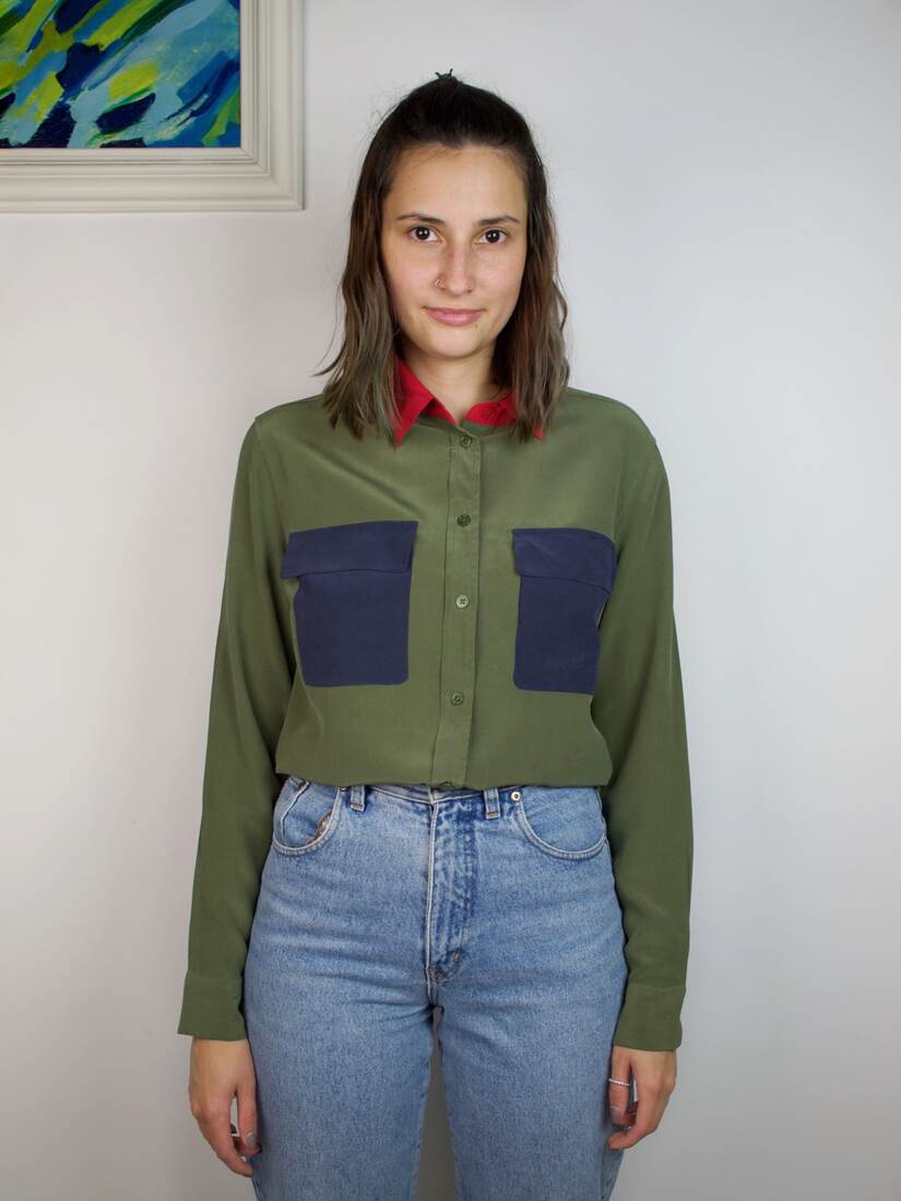 Marynarka w stanie idealnym. Wyprodukowana w RFN, materiał to mieszanka wełny (85%) i jedwabiu (15%). Ma szersze ramiona, będzie dobra na rozmiar M i na XS-S jako oversize. Modelka ma 175 cm wzrostu.