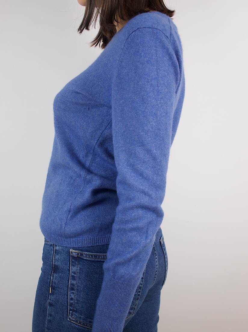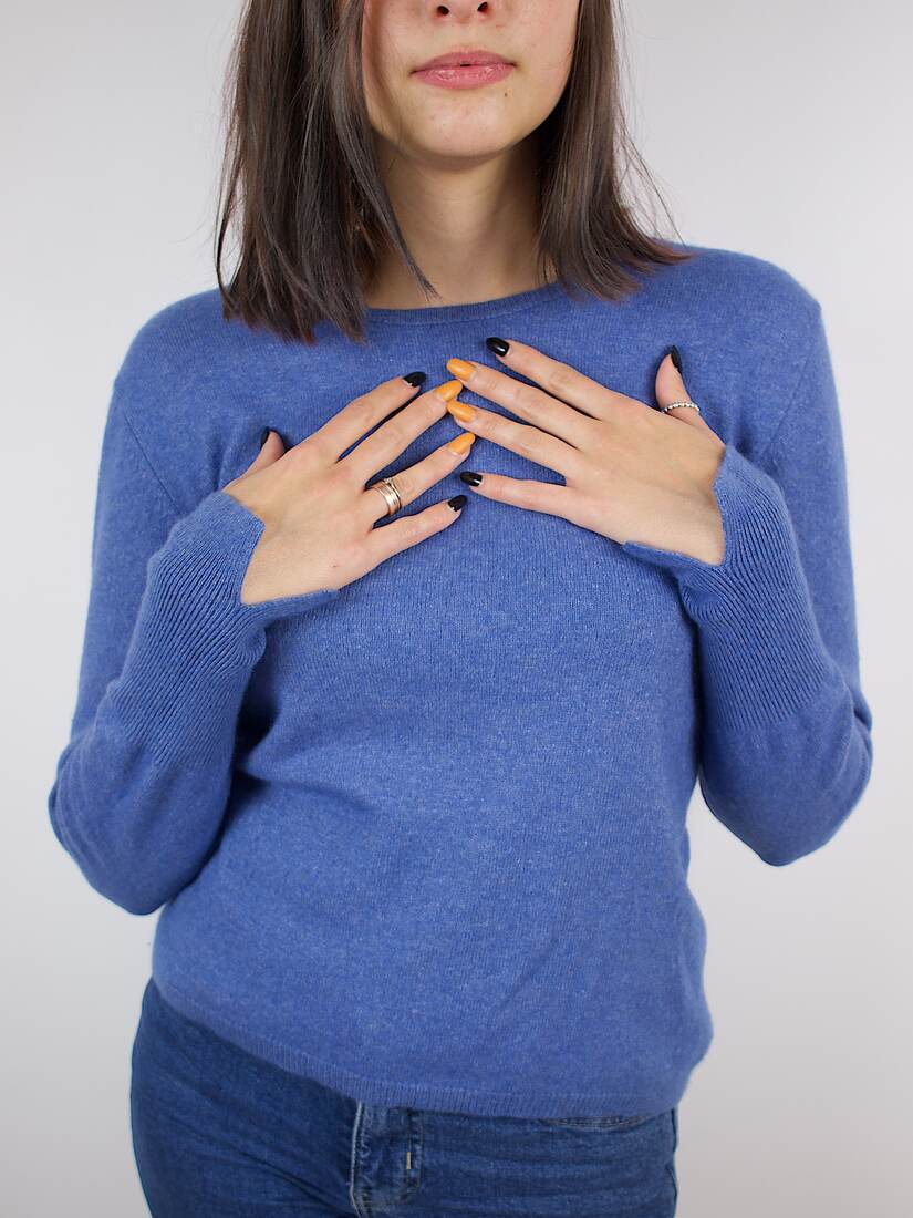 Skład: 70% kaszmir, 30% jedwab. Modelka ma 166 cm wzrostu i nosi rozmiar S.