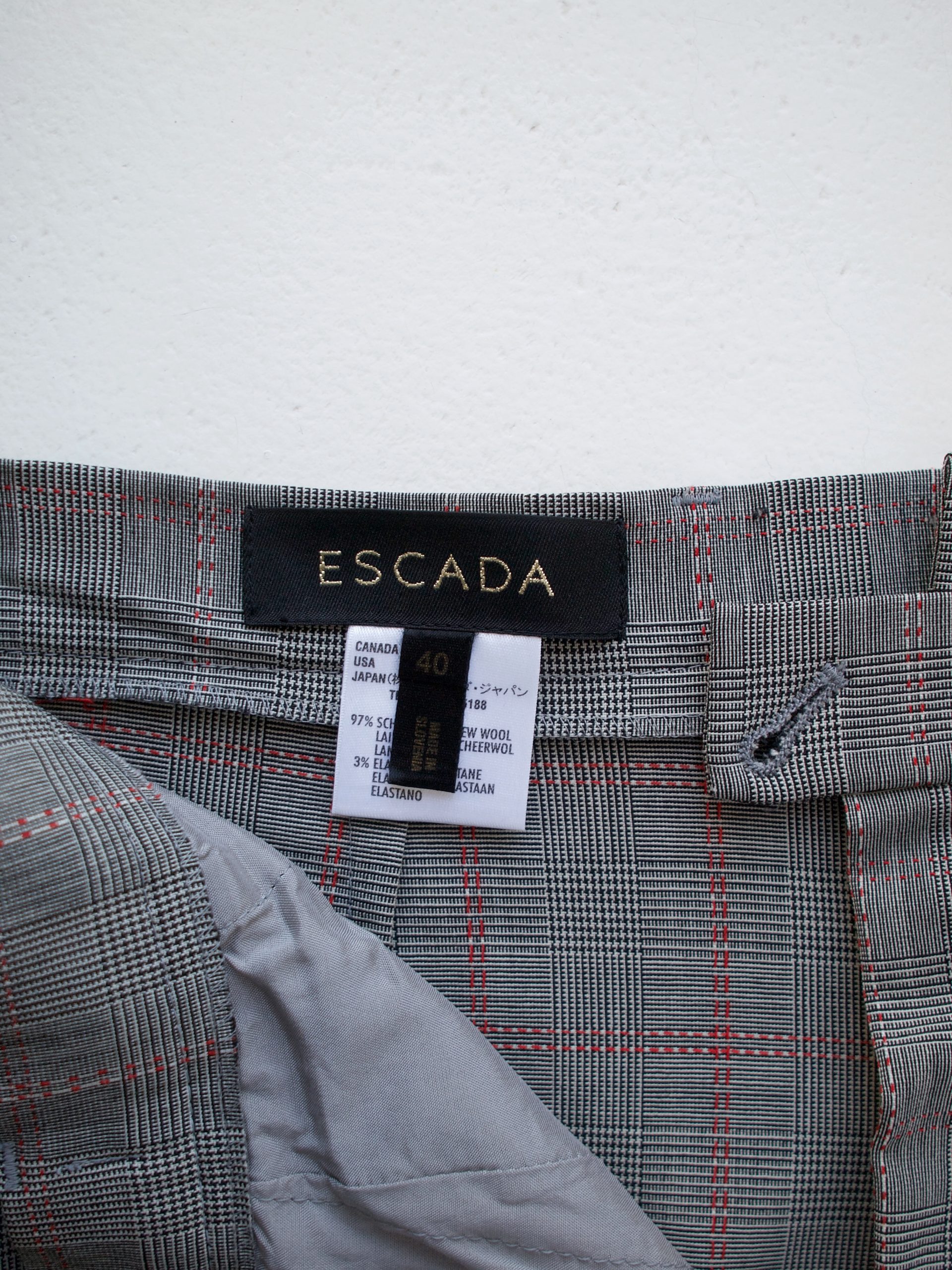 Spodnie domu mody Escada w klasycznym fasonie. Wykonane z cienkiej wełny, mogą być noszone przez cały rok.