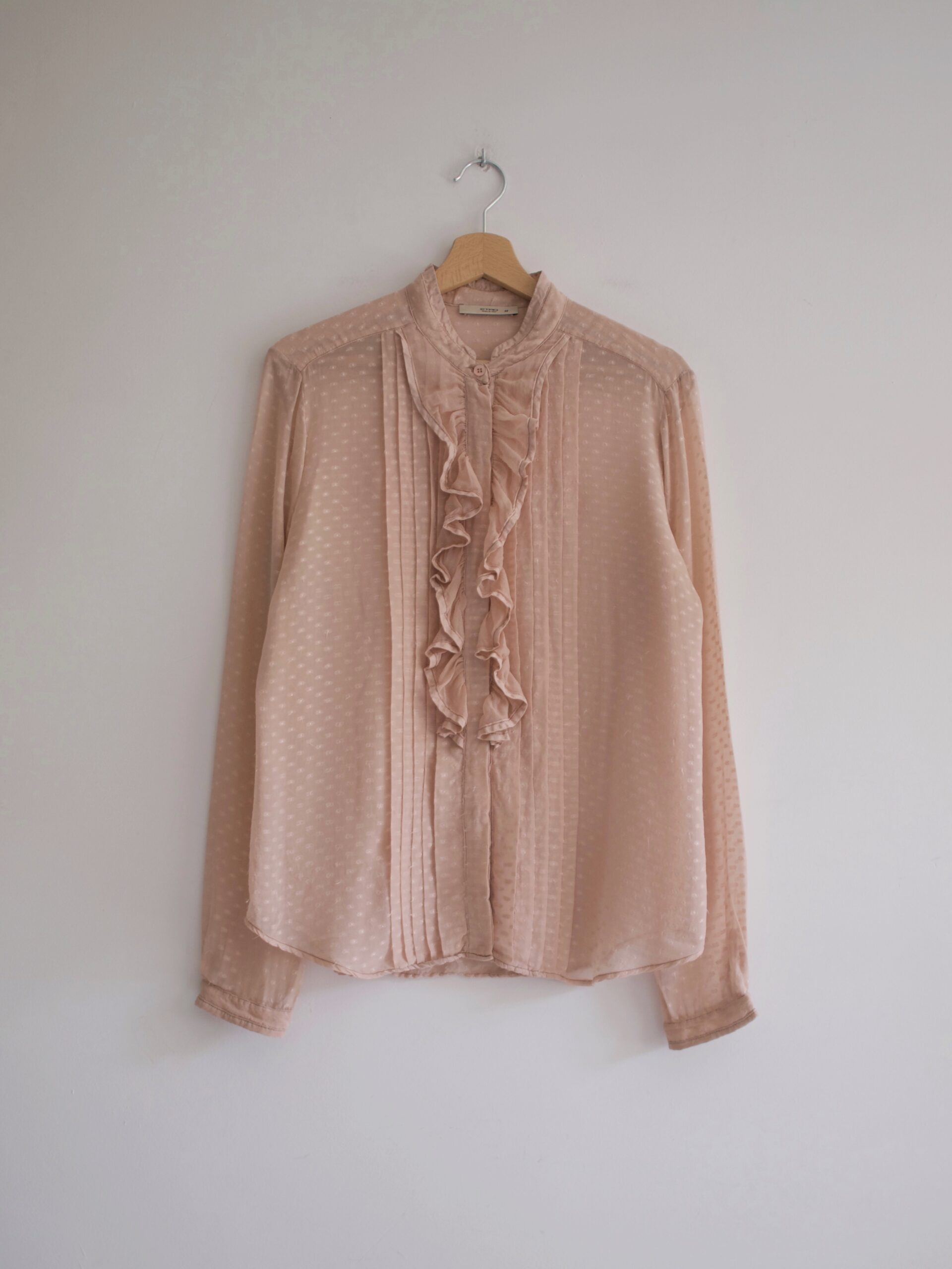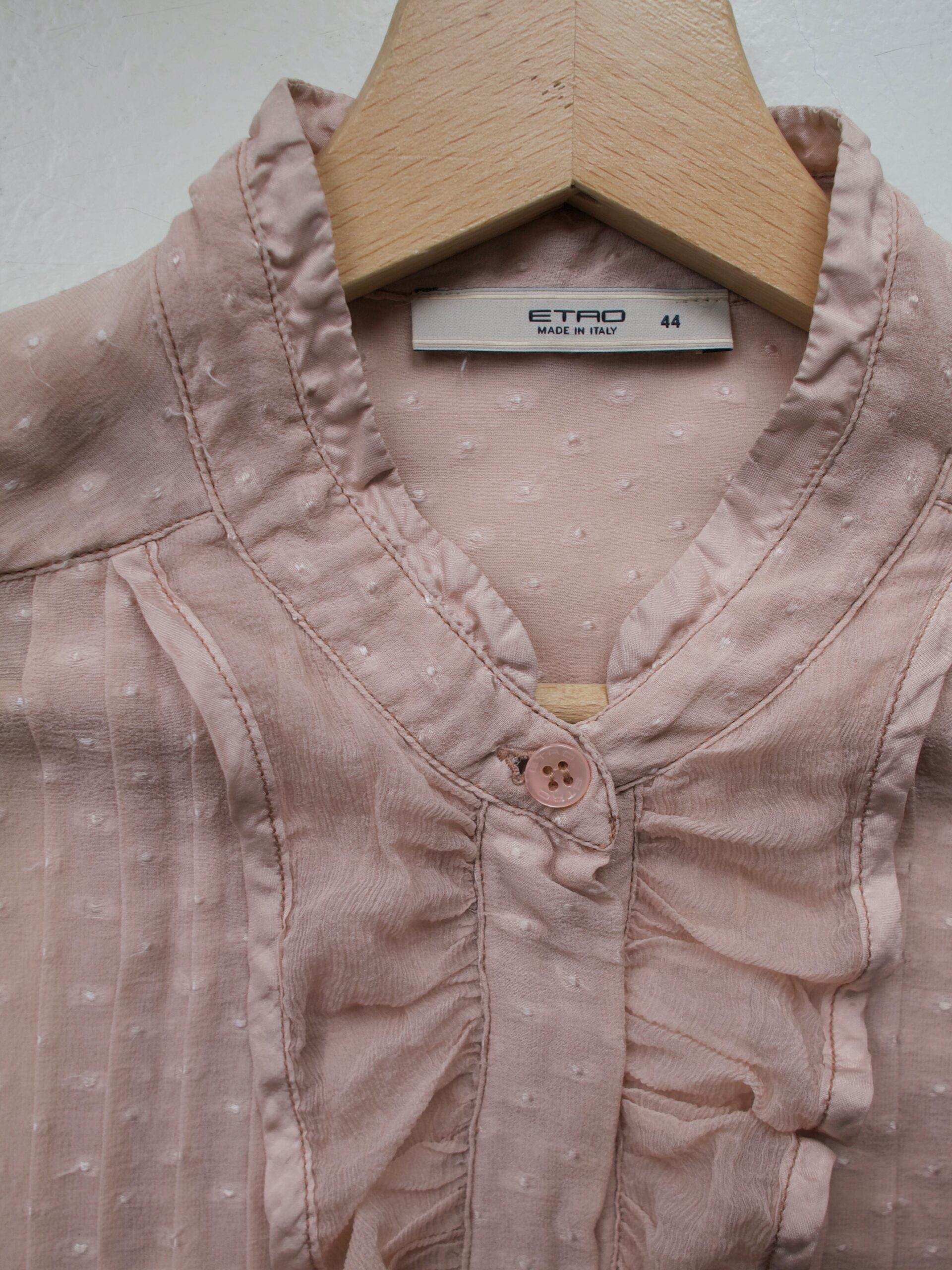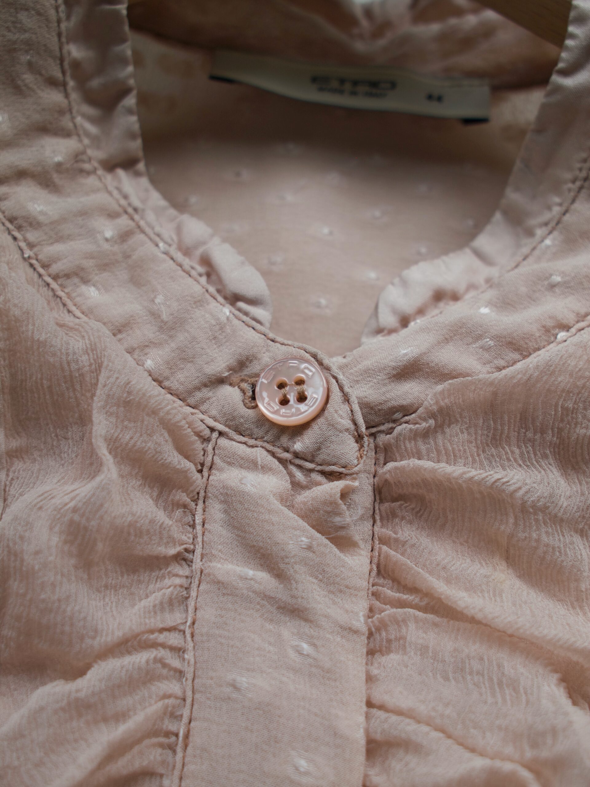 Bluzka luksusowej marki Etro, ceny bluzek tej marki sięgają nawet parę tysięcy złotych. Zapinana na sygnowane guziki.
