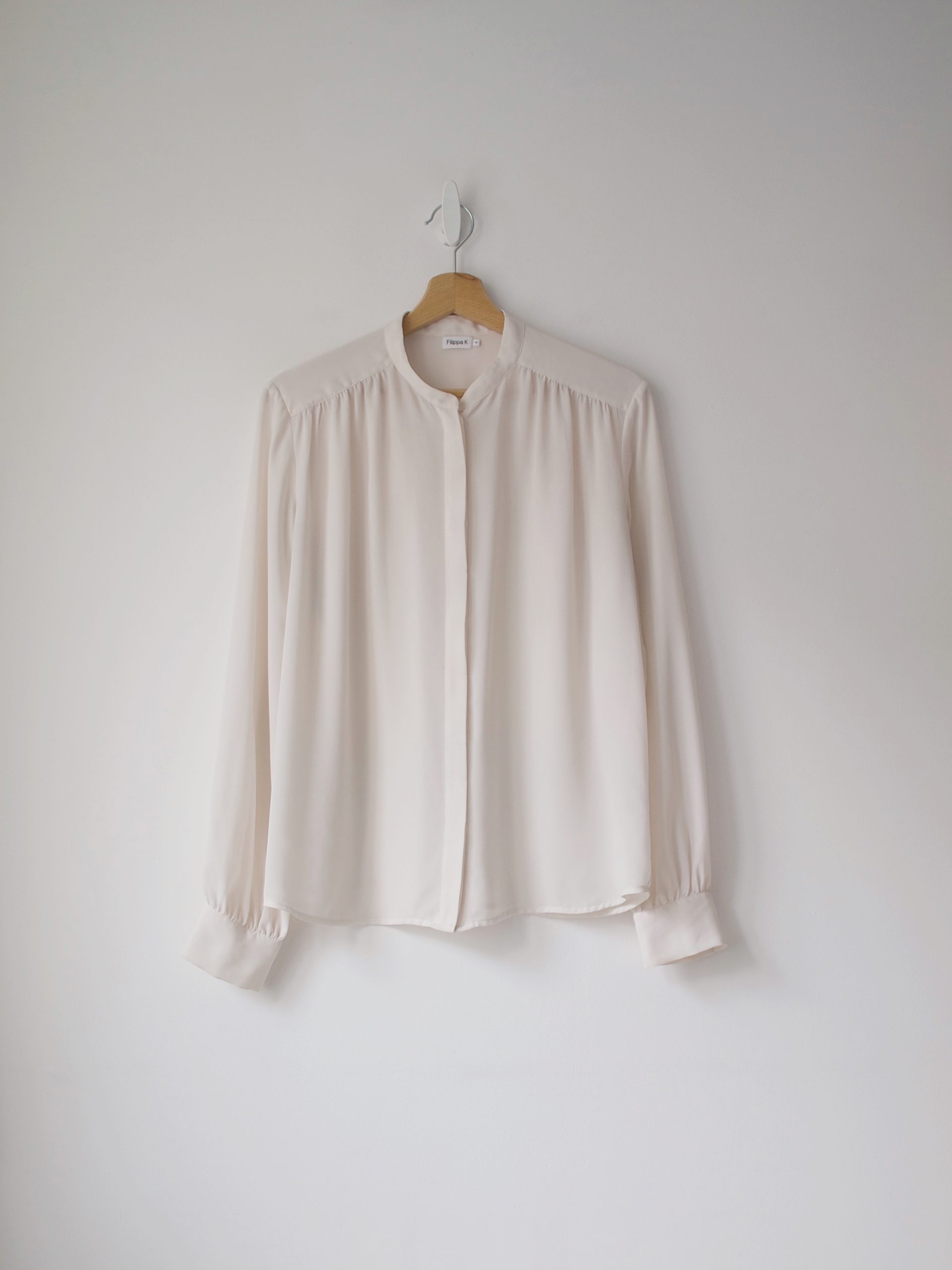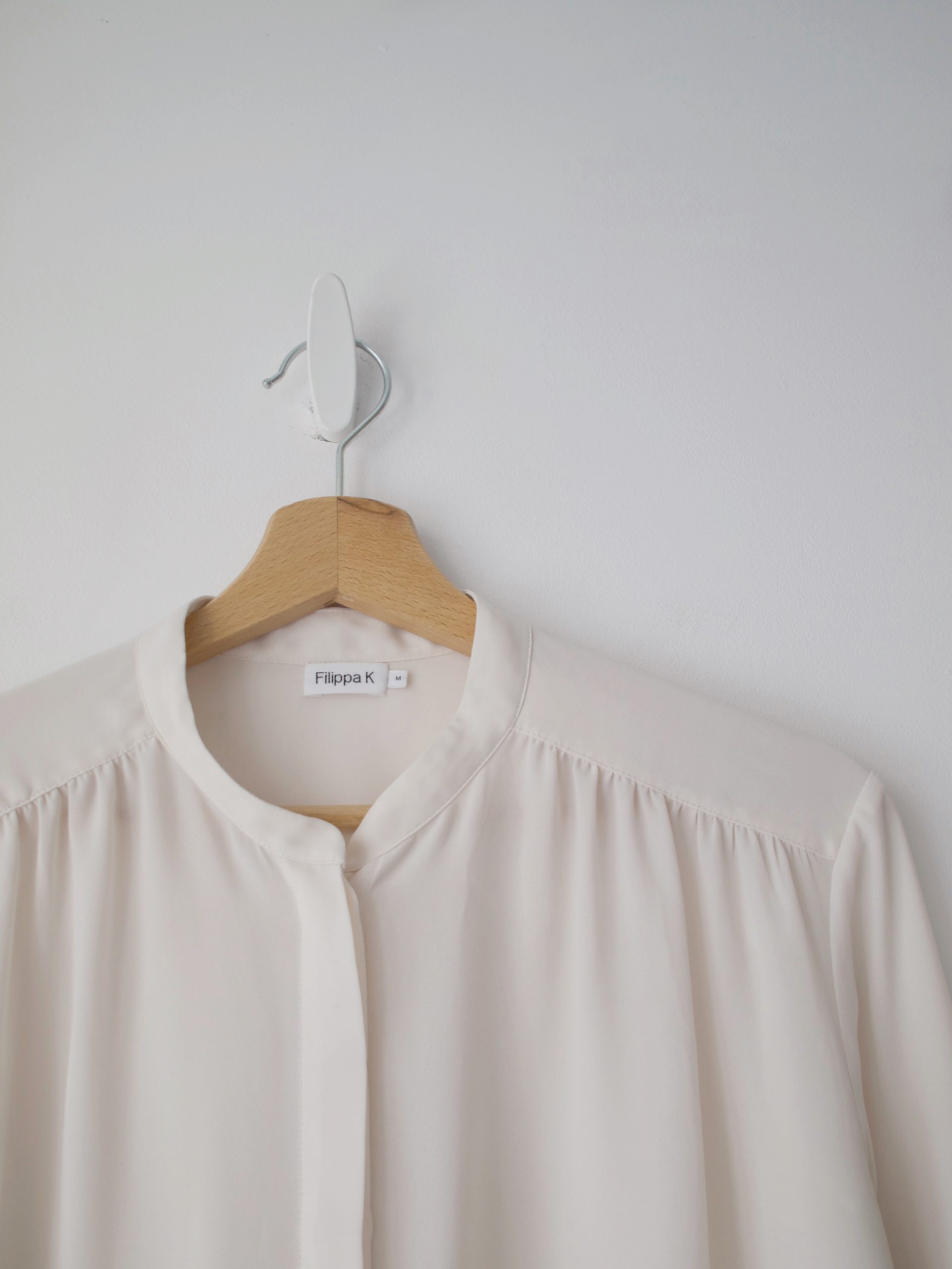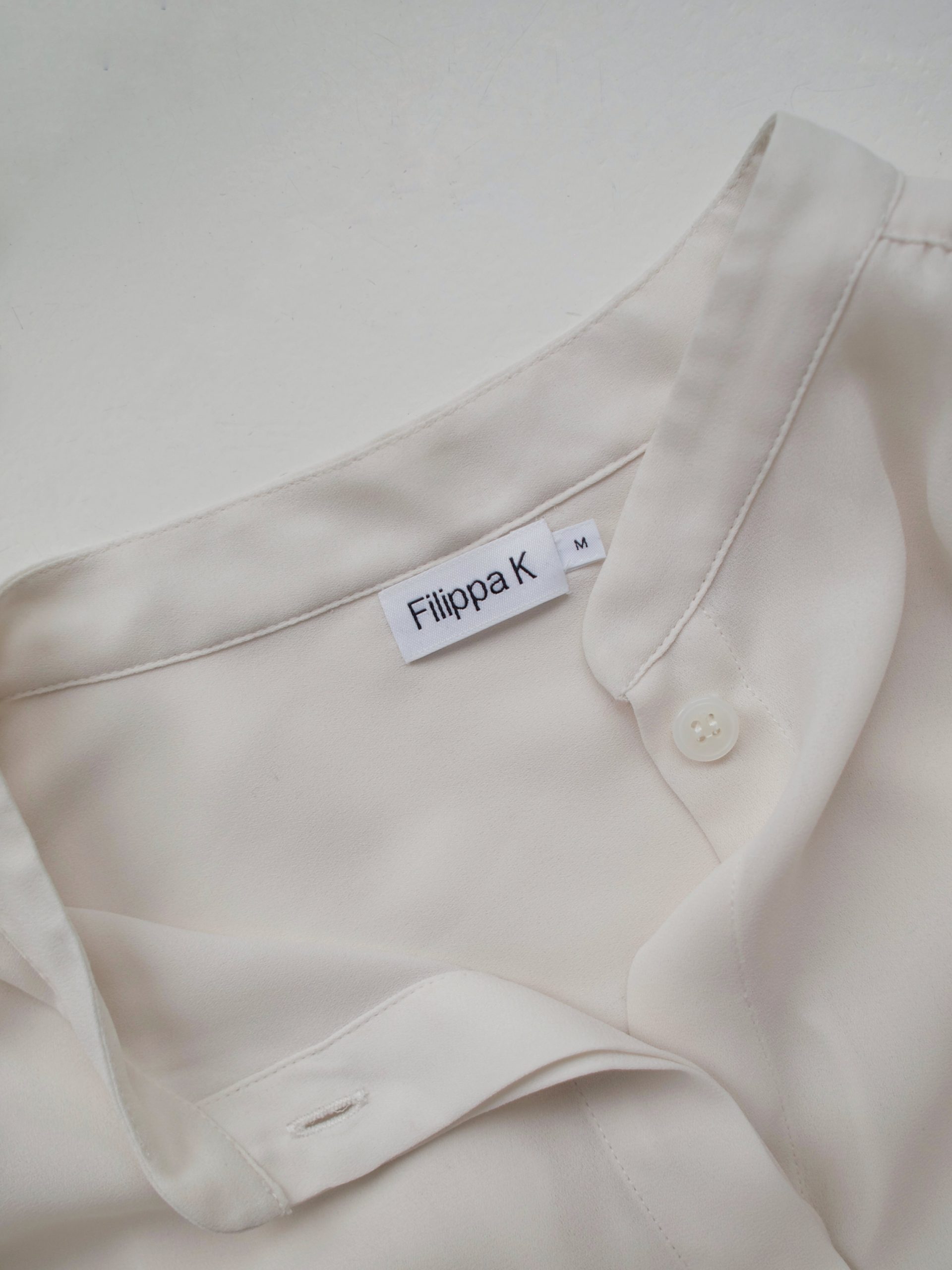 Bluzka ekskluzywnej skandynawskiej marki Filippa K. Rozmiar z metki: M, luźna Skład: brak metki, syntetyk Stan: bez wad Szerokość w klatce 55 cm Długośćcałkowita 63 cm