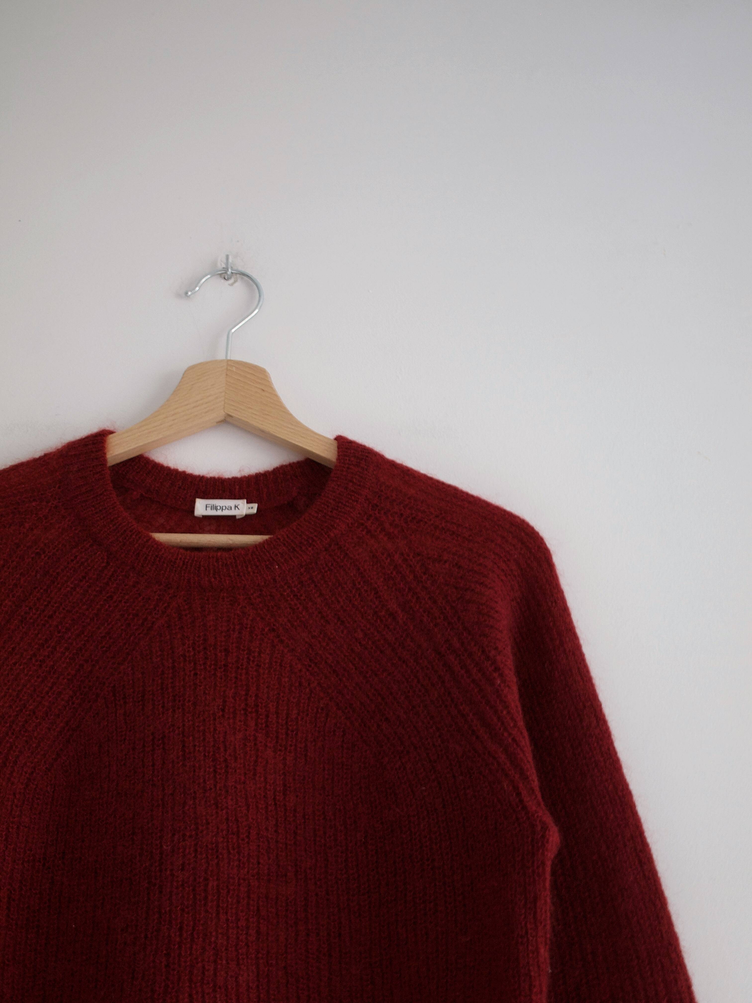 Puszysty sweter skandynawskiej marki Filippa K. Model r-neck mohair sweater, cena katalogowa 174 euro.