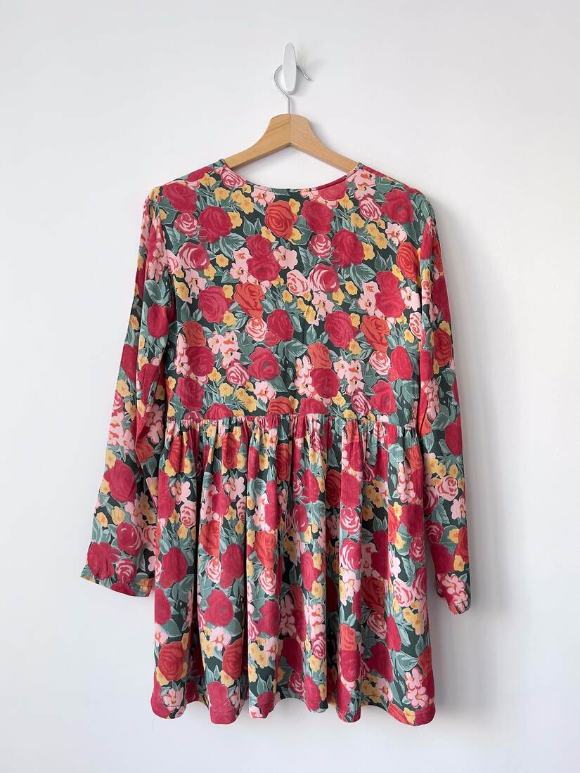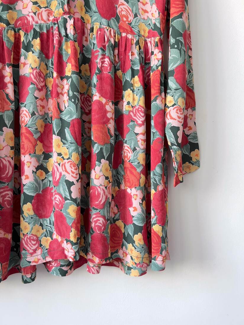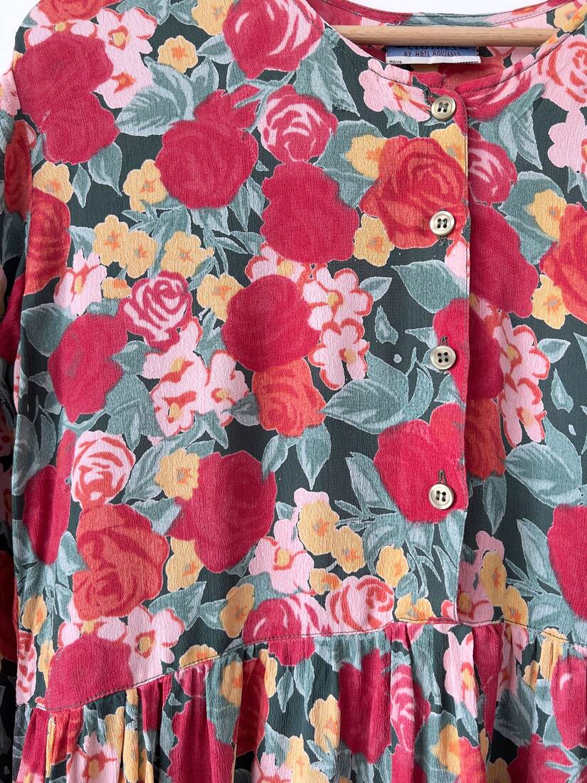 Jedwabna sukienka w orientalnym stylu. Prosty krój, z tyłu zapinana na zamek. Będzie pasować na S-M, polecam dla osoby wysokiej. Wymiary poniżej, bez wad.