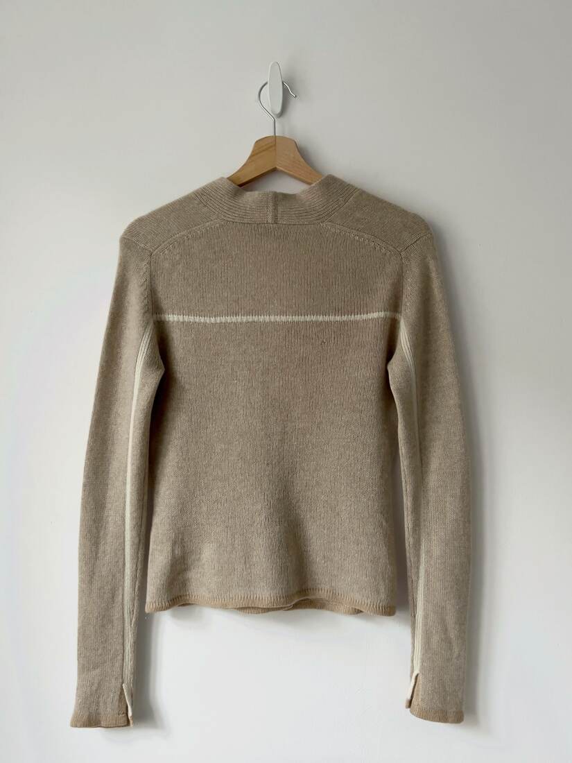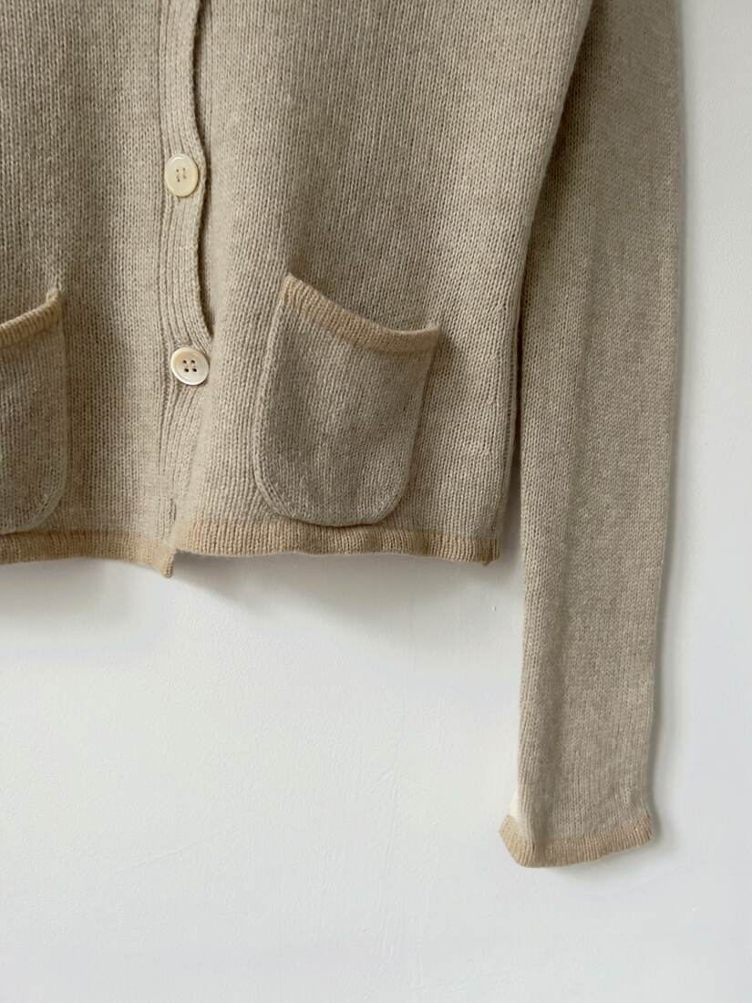 Kardigan luksusowej marki FTC, specjalizującej się w produkcji ubrań z kaszmiru. Brak dolnego guzika, poza tym bez wad.