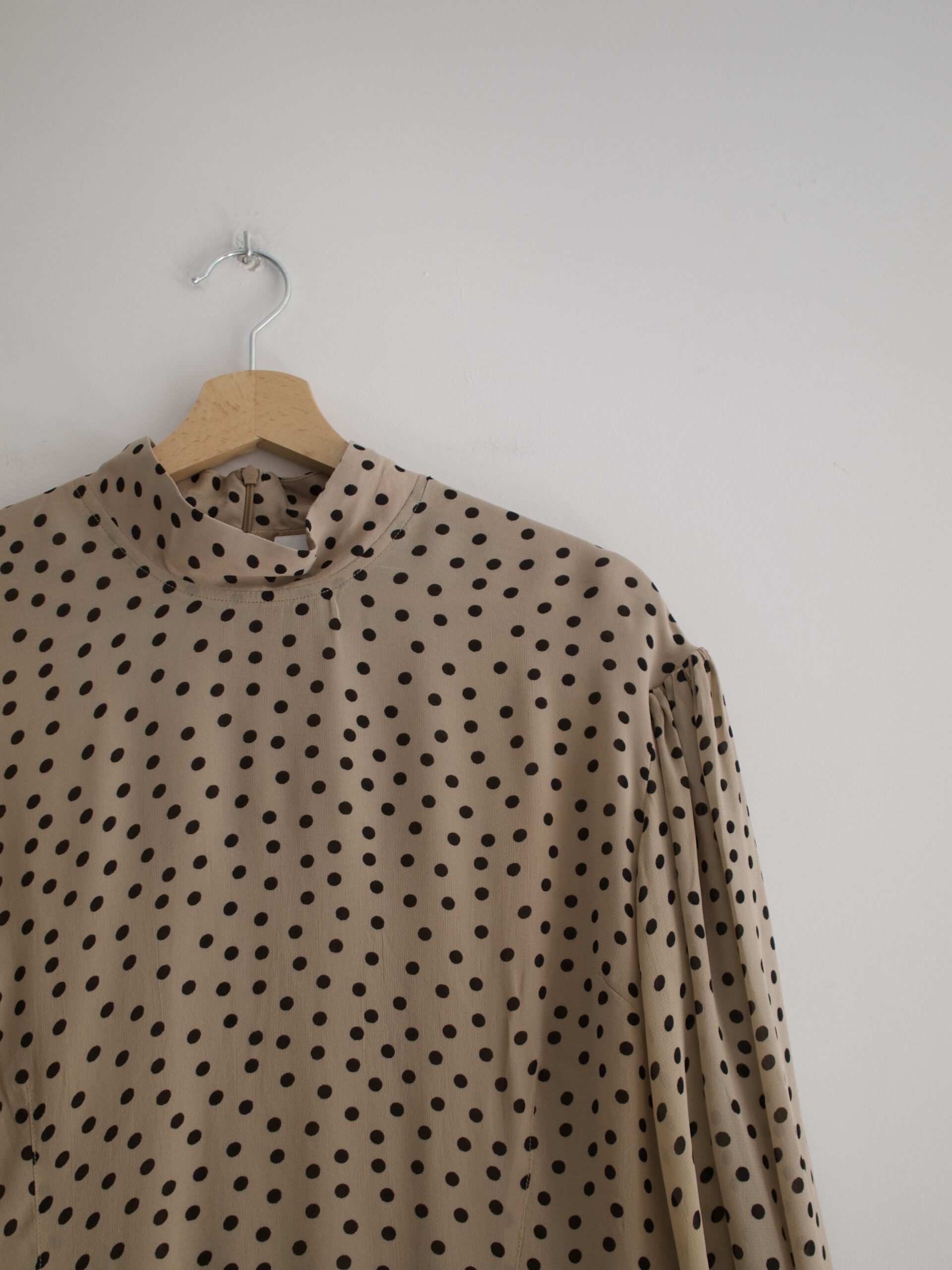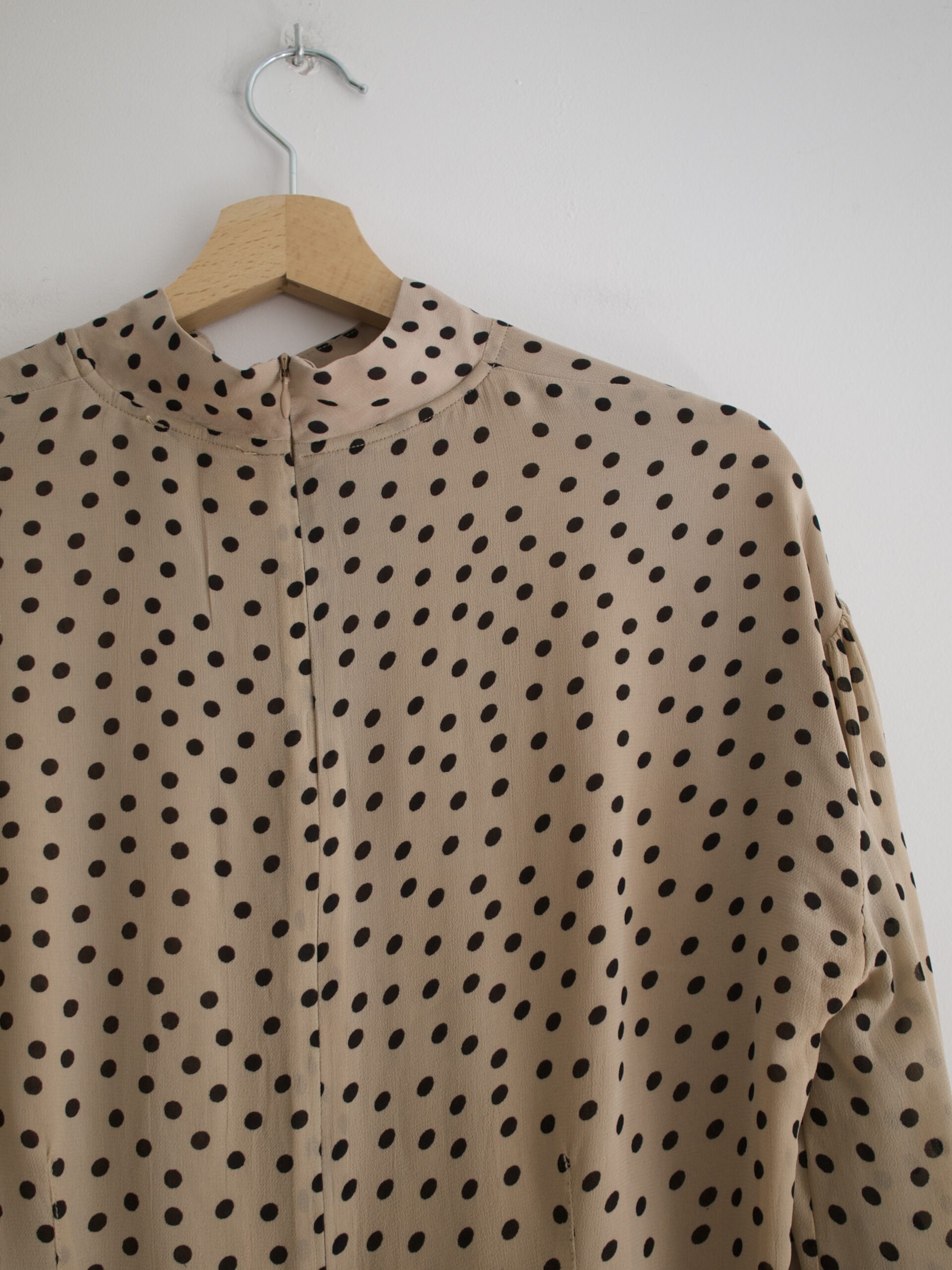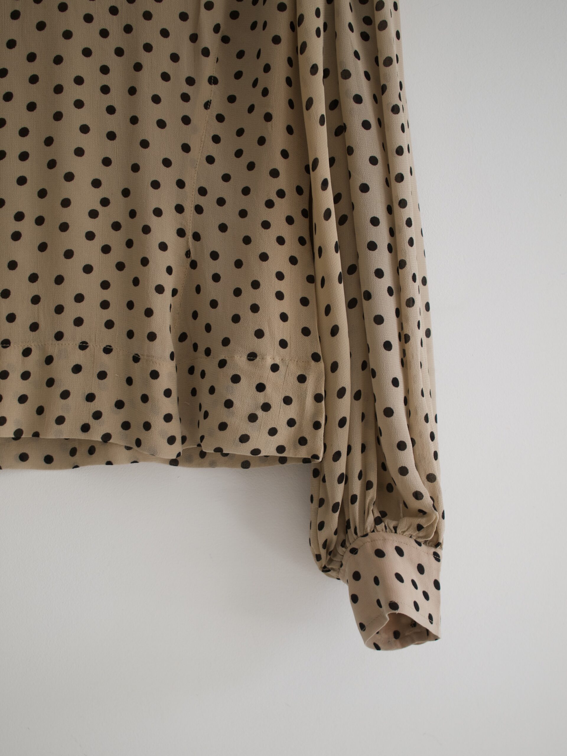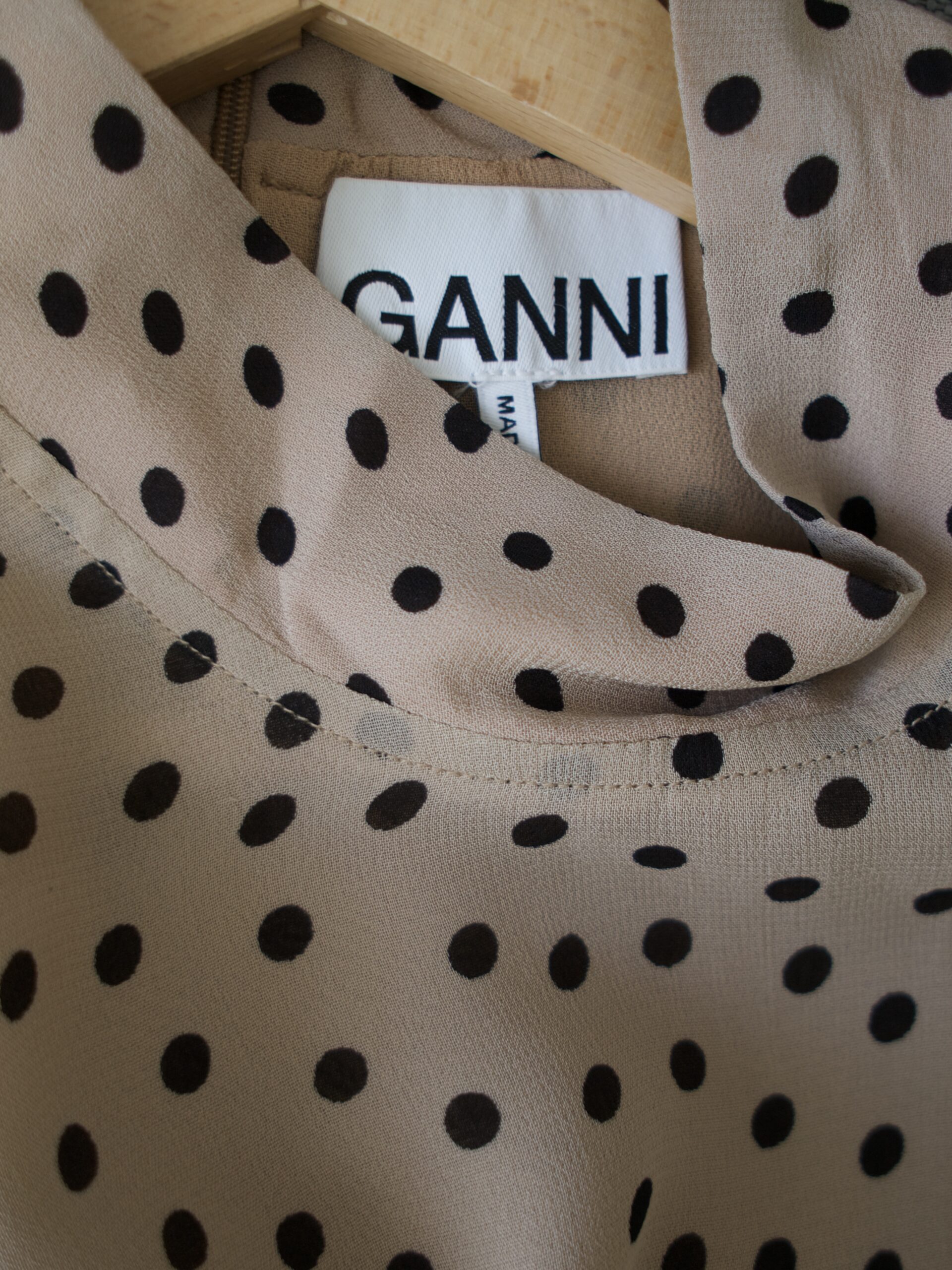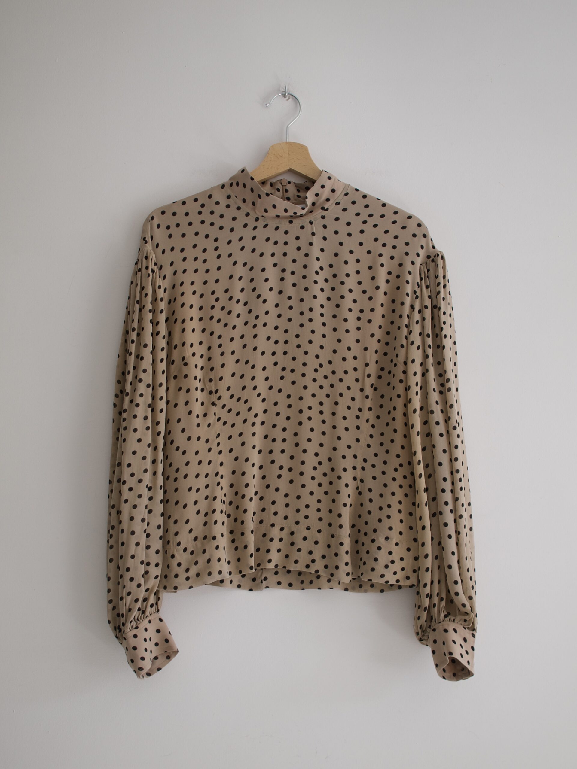 Bluzka skandynawskiej marki Ganni, model Polka Dot Bishop-Sleeves Blouse, cena katalogowa 148 usd, czyli 600 zł. Z tyłu zapinana na ukryty zamek.