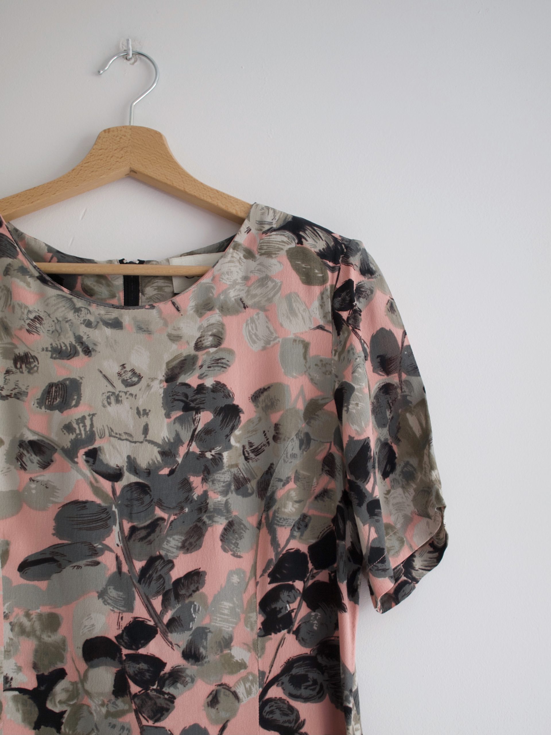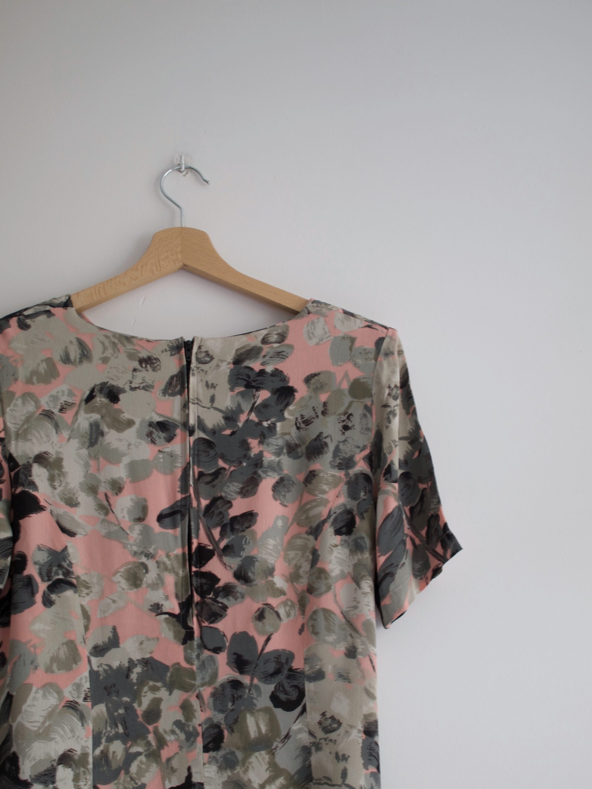 Sukienka ekskluzywnej skandynawskiej marki Ganni. Z tyłu zapinana na zamek. Rozmiar z metki: S Skład: 100% wiskoza Stan: bez wad Szerokość w klatce 46 cm Długośćcałkowita 91 cm