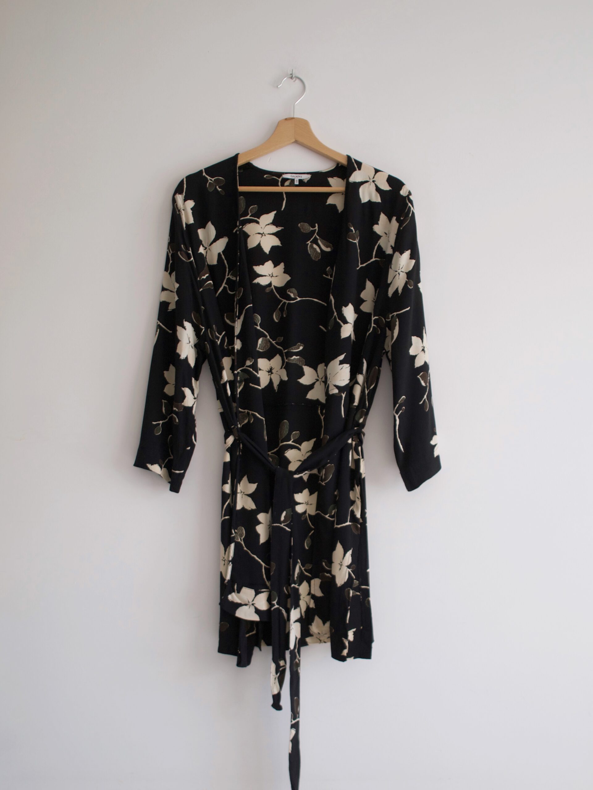 Rozmiar: brak metki, uniwersalny Skład: 100% wiskoza Stan: bez wad Szerokość w klatce 55 cm Długość całkowita 95 cm