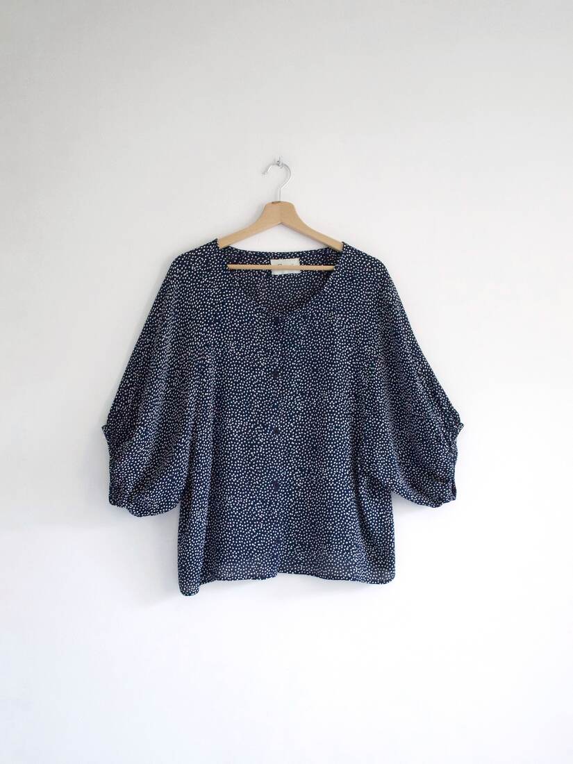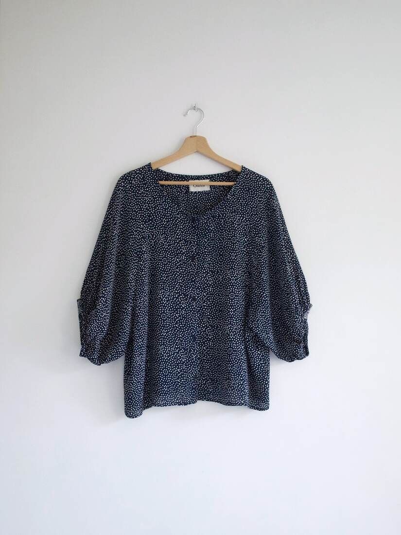 Kremowa koszula vintage z ozdobnymi guzikami i plisami na rękawach. Brak metki ze składem (prawdopodobnie poliester), materiał prawie nie gniecie się. Brak metki z rozmiarem, proszę sprawdzać wymiary. Bez wad.