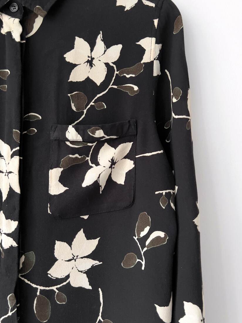 Bluzka skandynawskiej marki Ganni, model Rosemont Crepe, cena katalogowa 120 usd. Zapinana na ukryte guziki. Rozmiar z metki 40, będzie pasować na M, lub na S jako delikatnie luźna. Bez wad.