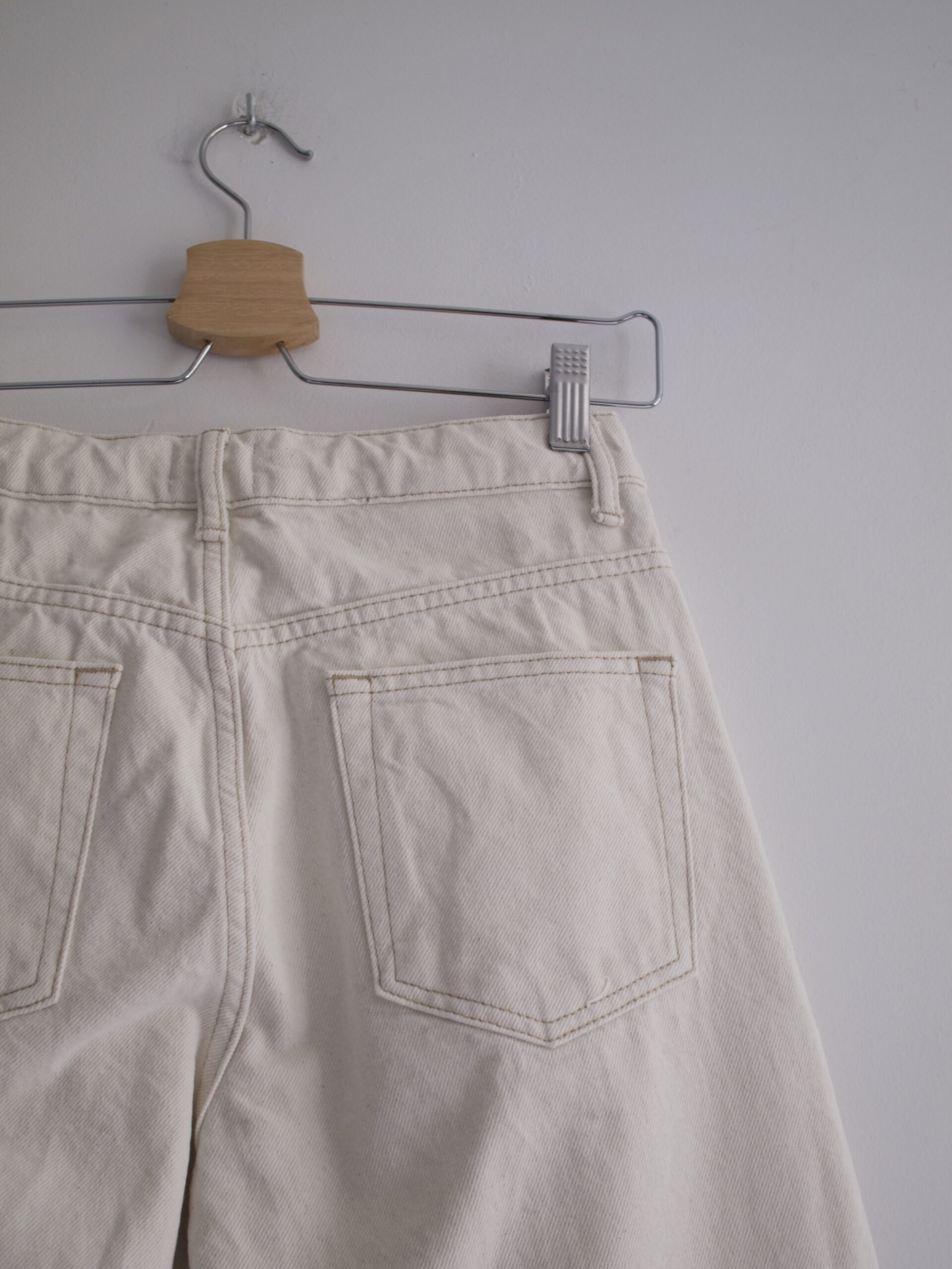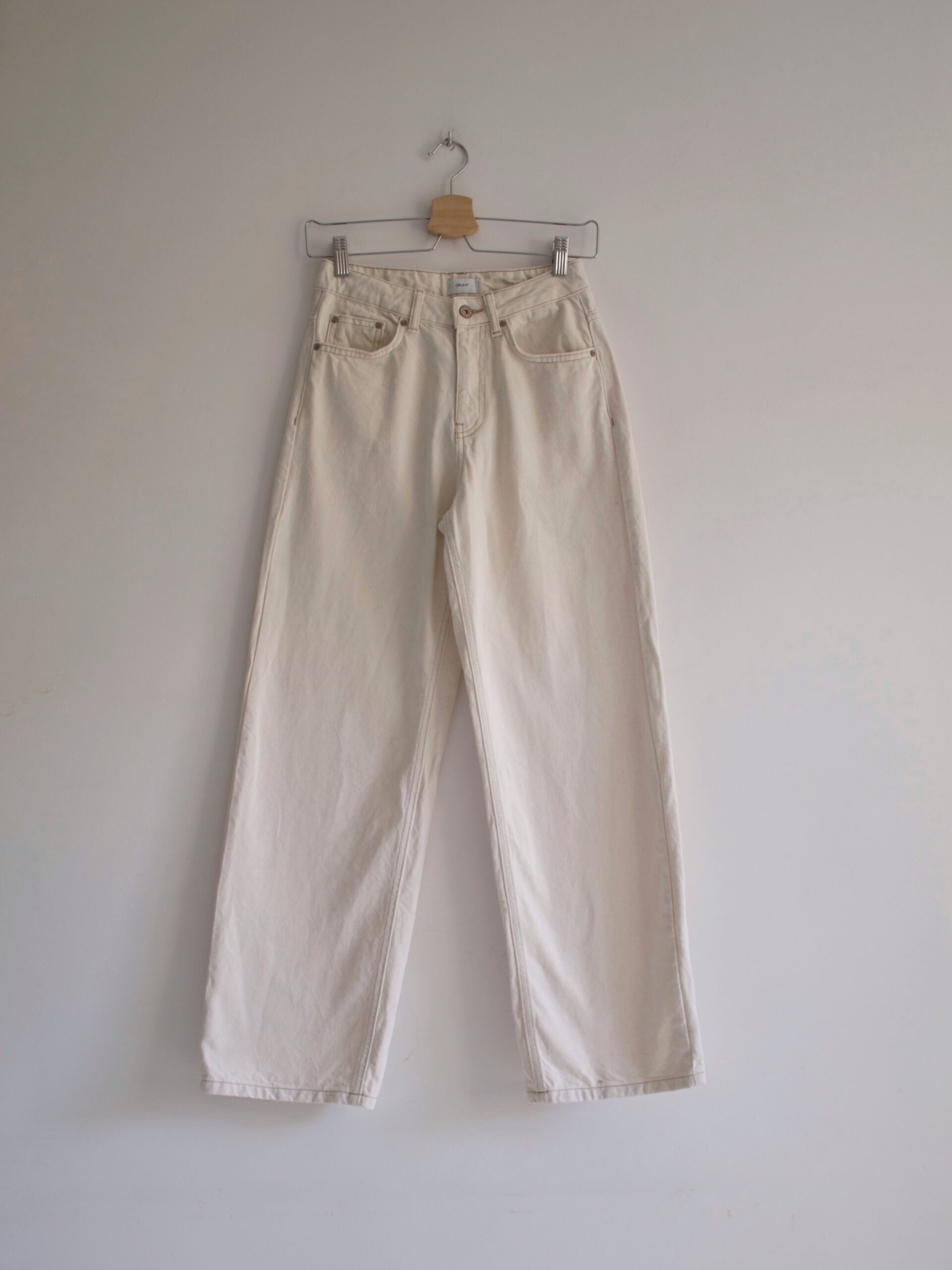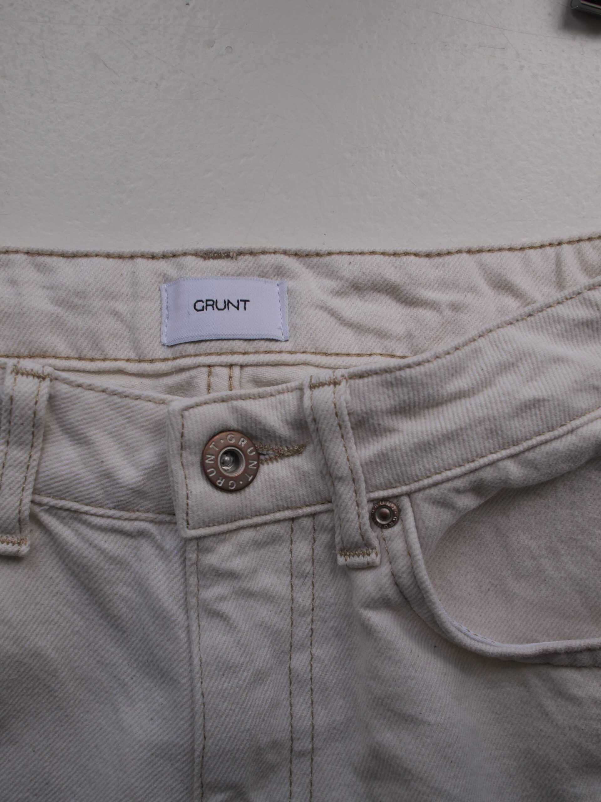 Jeansy skandynawskiej marki Grunt w kremowym kolorze. Wysoki stan.