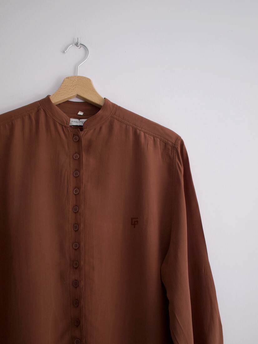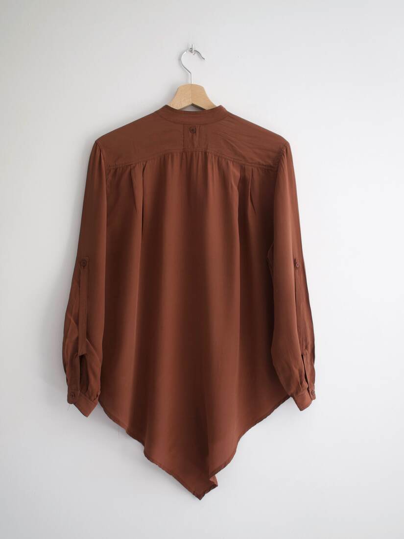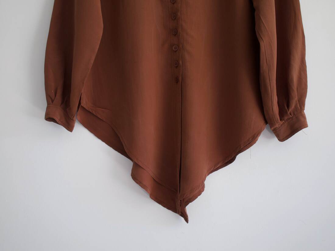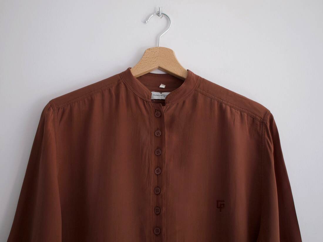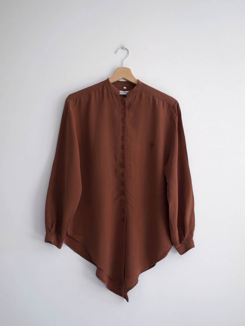 Unikatowa koszula vintage, szwedzka projektantka Gunilla Ponten. Wykonana z chińskiego jedwabiu. Rozmiar z metki S, fason jest dość luźny, więc będzie pasować również na większe. Delikatne spranie koloru w dolnej części, poza tym bardzo dobry stan.