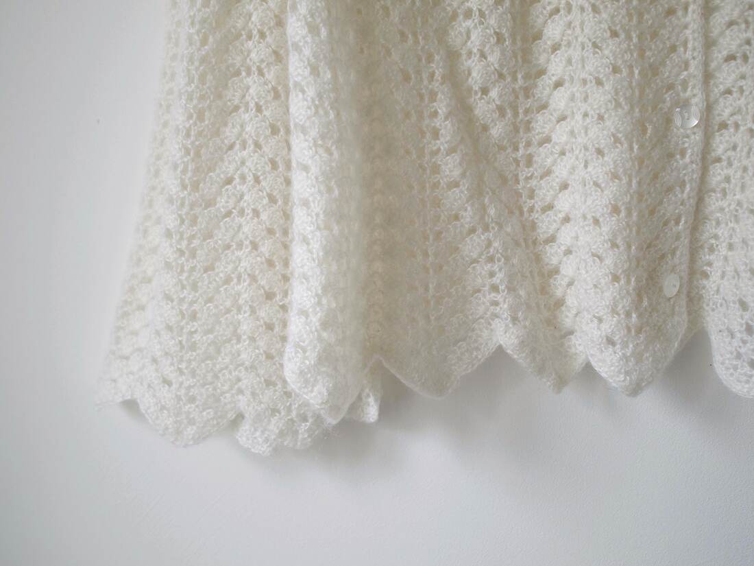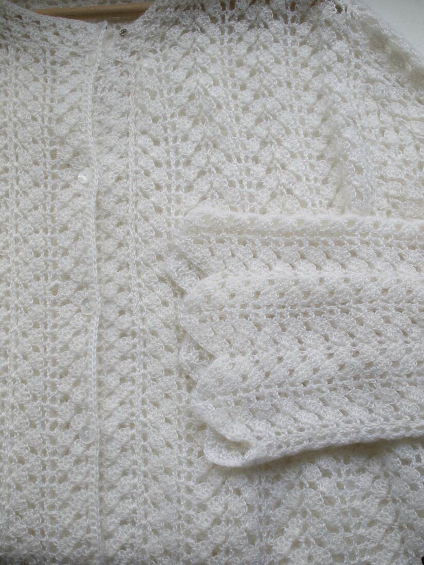 Kardigan o krótszym kroju, idealny do wysokich spodni. Rozmiar z metki M. Sweterek mimo zawartości moheru w składzie nie gryzie, jest mięciutki i miły w dotyku.