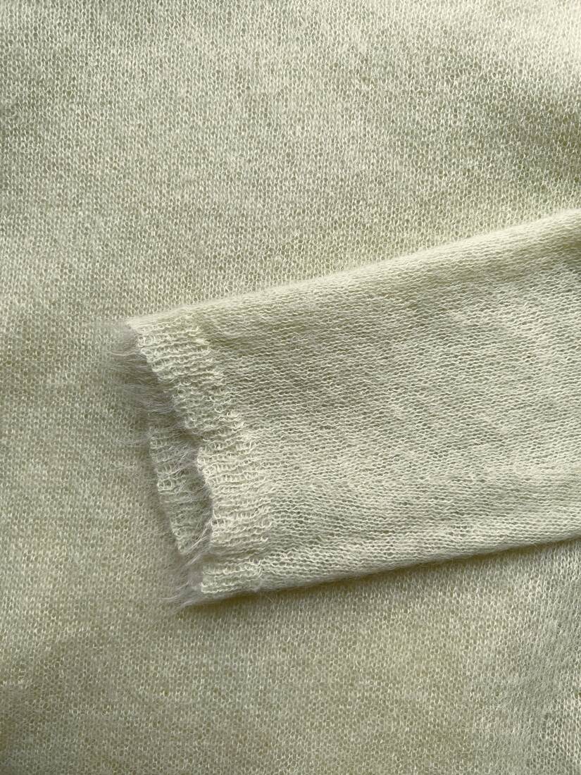 Ręcznie robiony sweterek. Brak metki ze składem, jest to moher lub mieszanka wełny i moheru. Polecam na S, bardzo dobry stan. Szerokość w klatce 44 cm Długośćcałkowita 58 cm