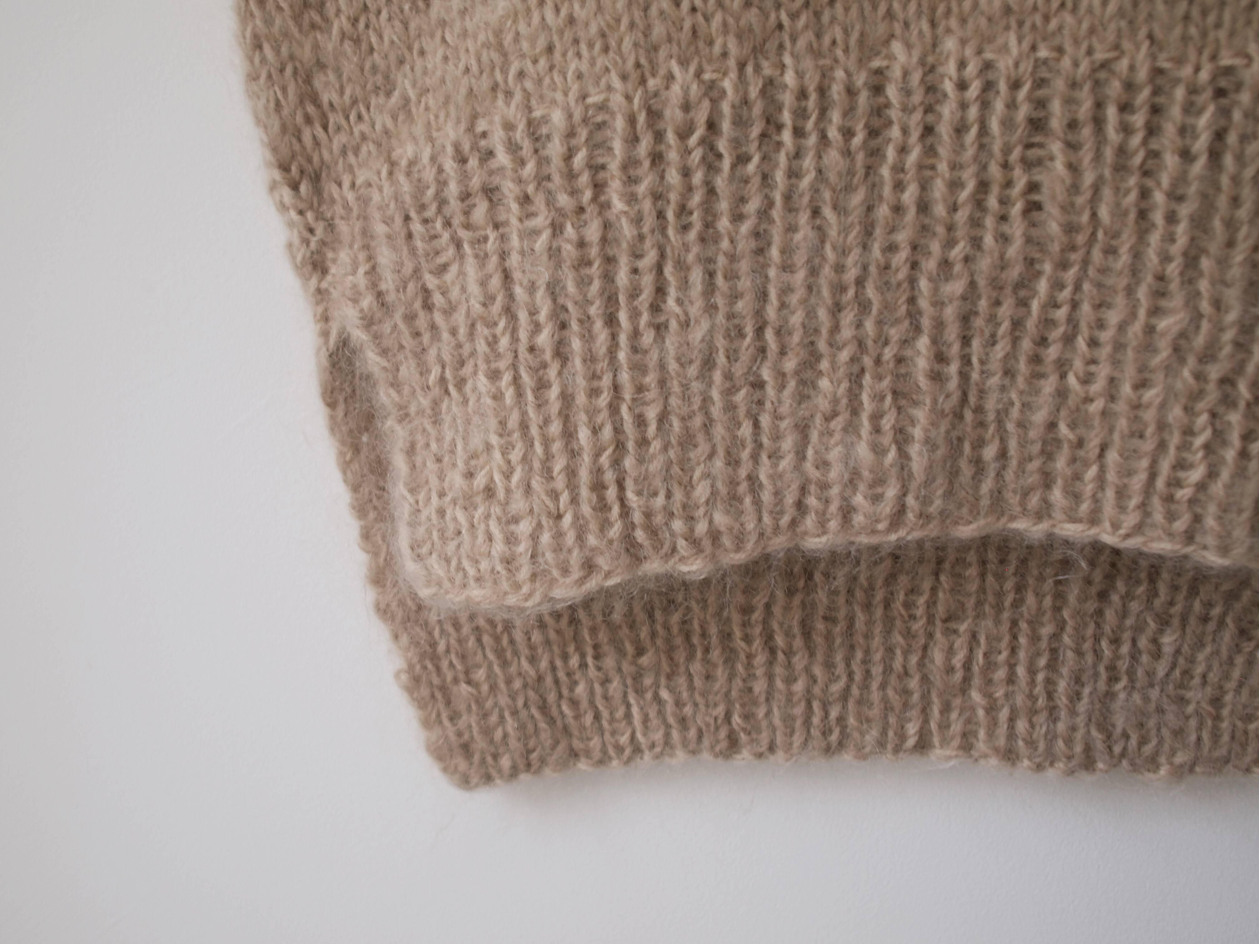 Sweter vintage ze zdobieniem. Brak metki z dokładnym składem, ale jest to angora, może nawet w 100 %. Sweter bardzo miękki i nie gryzie. Ma obszerniejsze ramiona, zdjęcie na xs-ce.